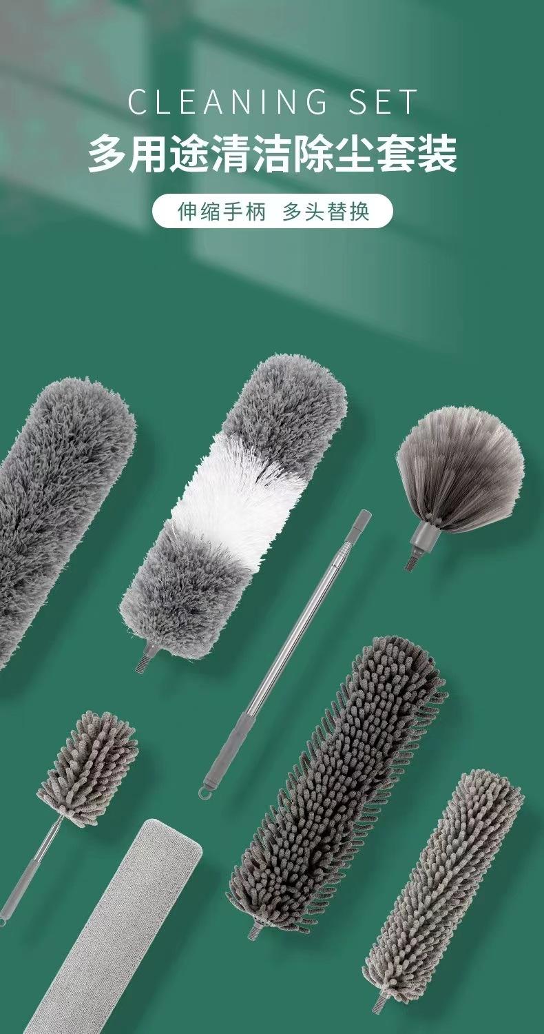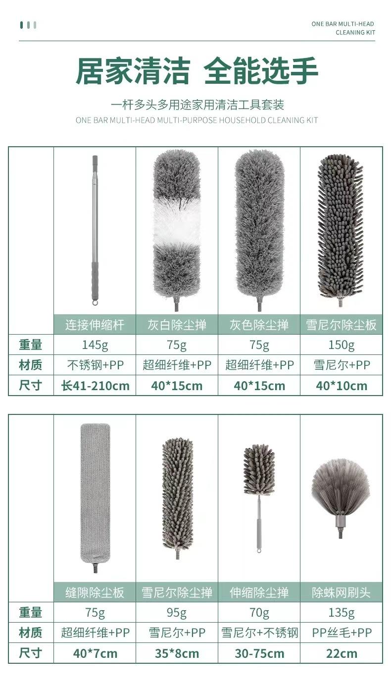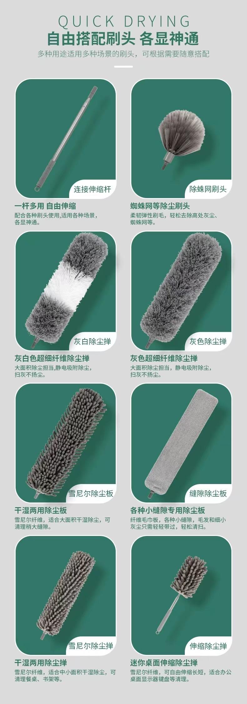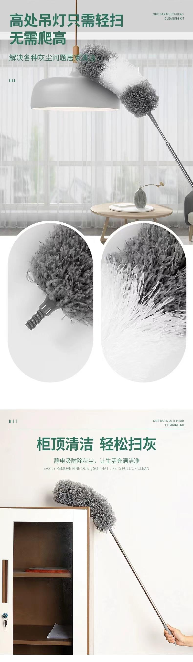 2.1m section rod gray handle gray duster, 2.1m section pole, gray handle, gray and white dust duster, 3.3m sec...