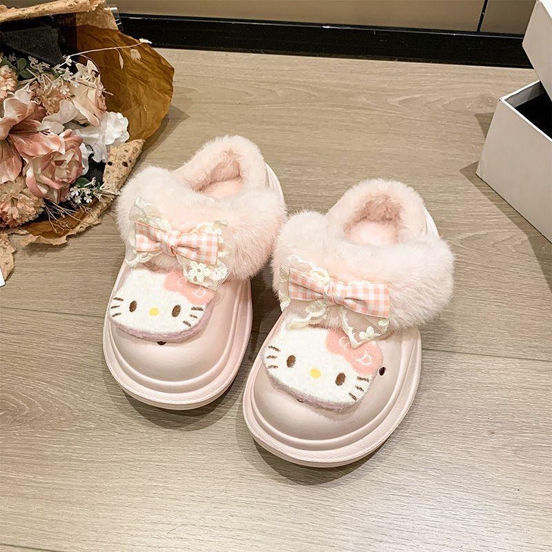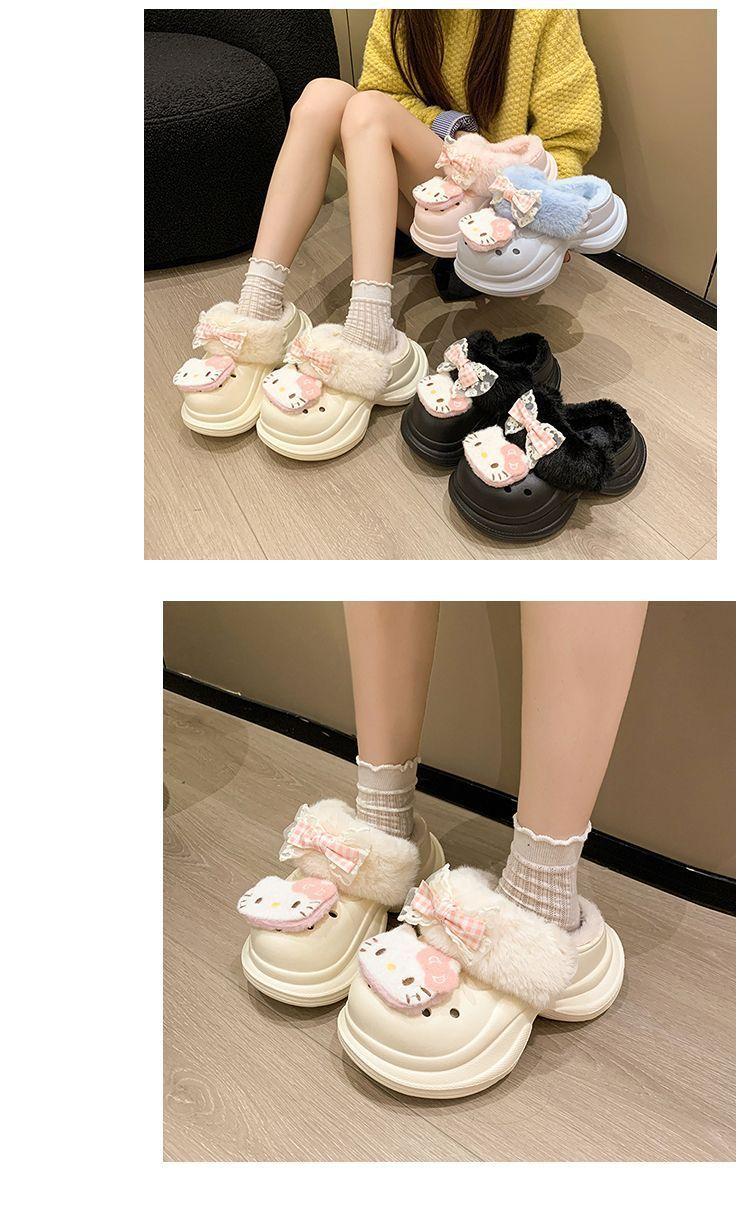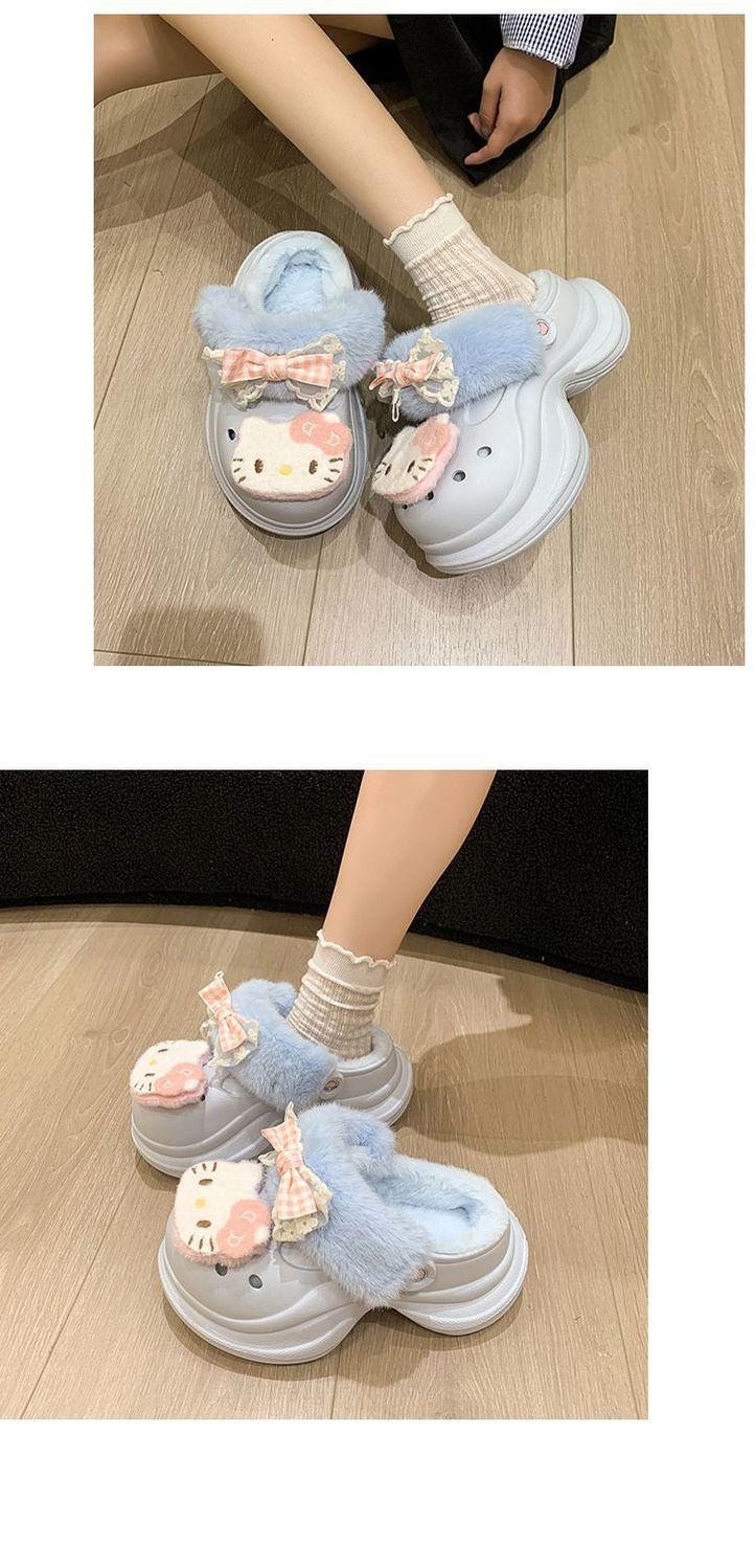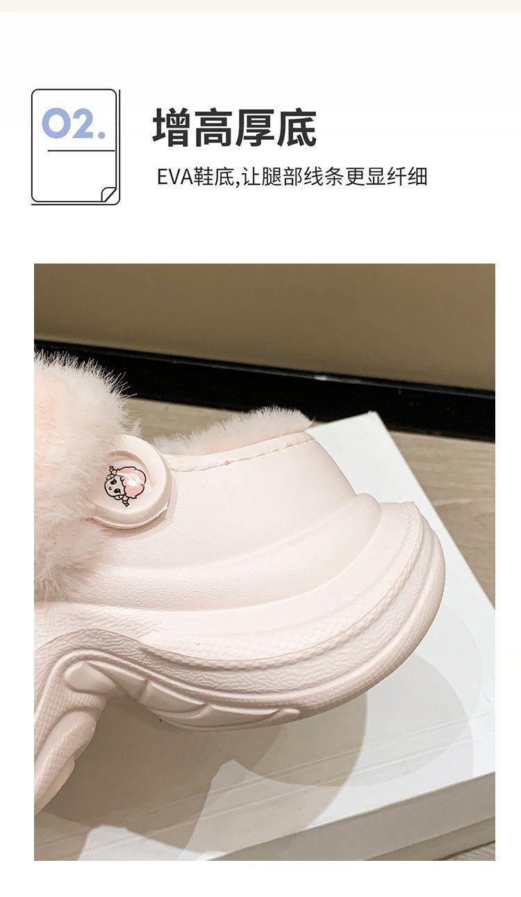 Pantufas de Gatinho de Desenho Animado Femininas Forradas com Lã Quentes para Exterior com Sola Plataforma Antiderrapante Pantufas Preguiçosas de Bico Fechado 2025 Outono/Inverno Novas