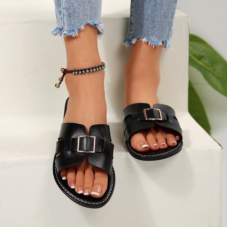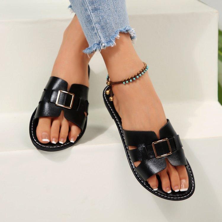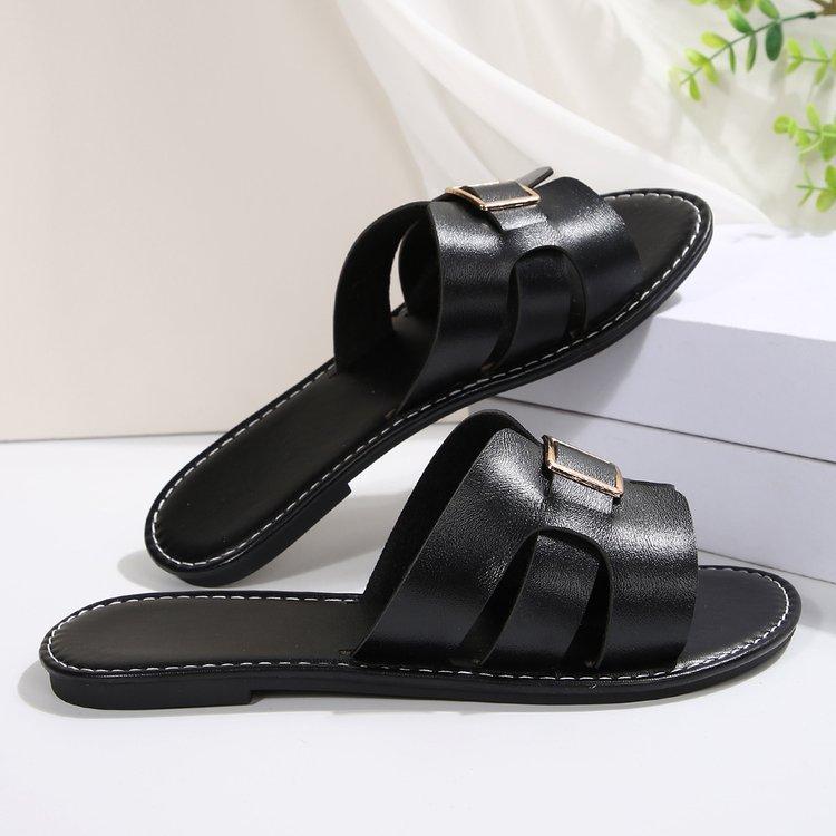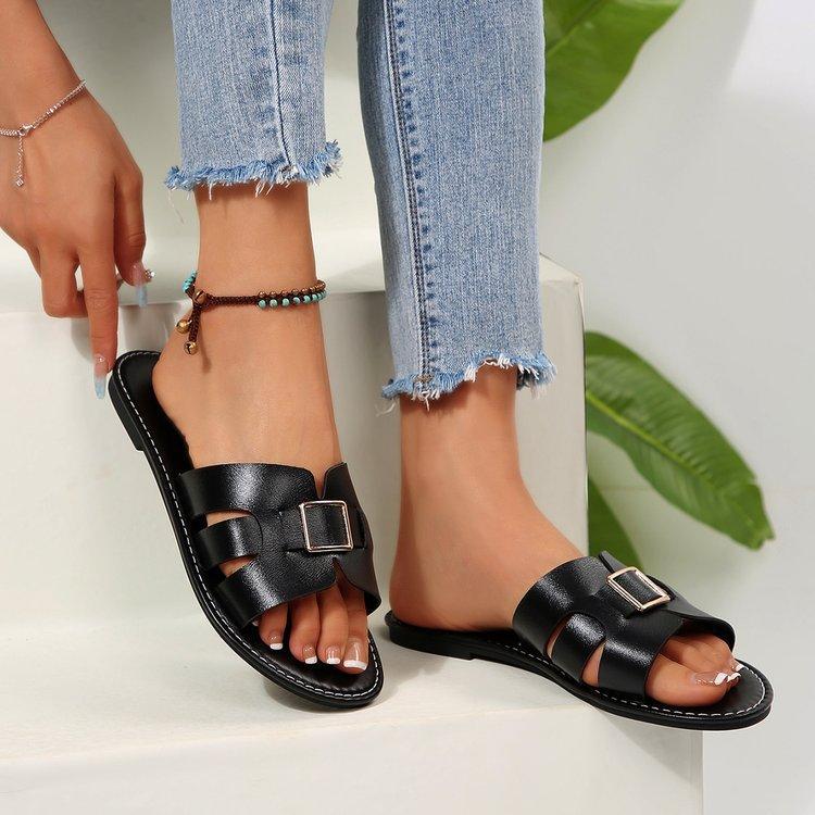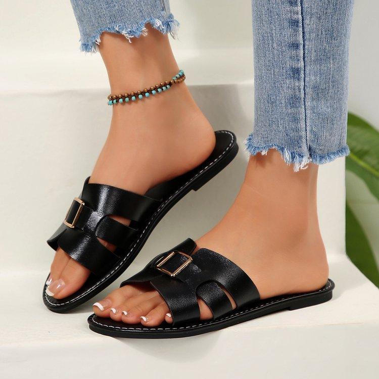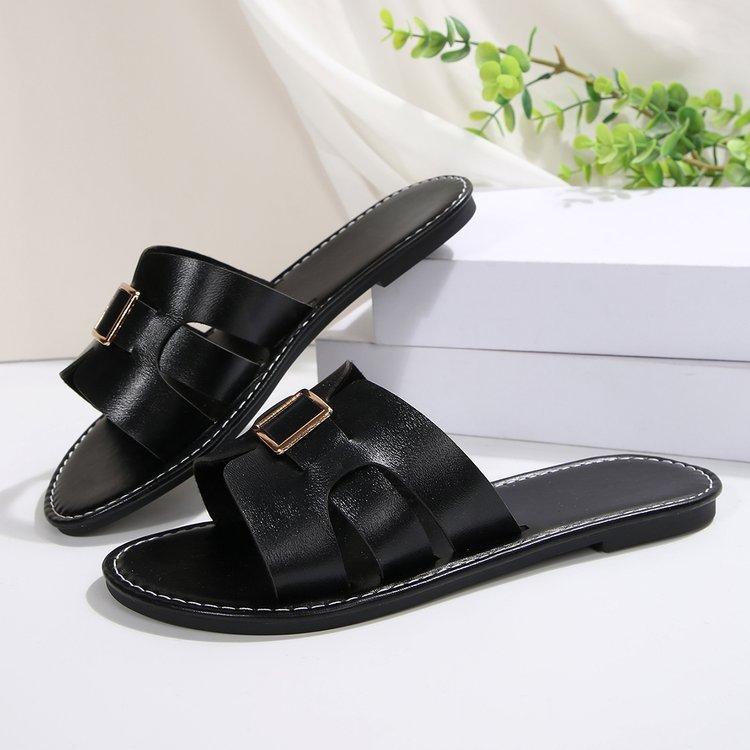 Amazon dropshipping fábrica atacado 2025 novo comércio exterior transfronteiriço tamanho grande chinelos de praia planos femininos botões