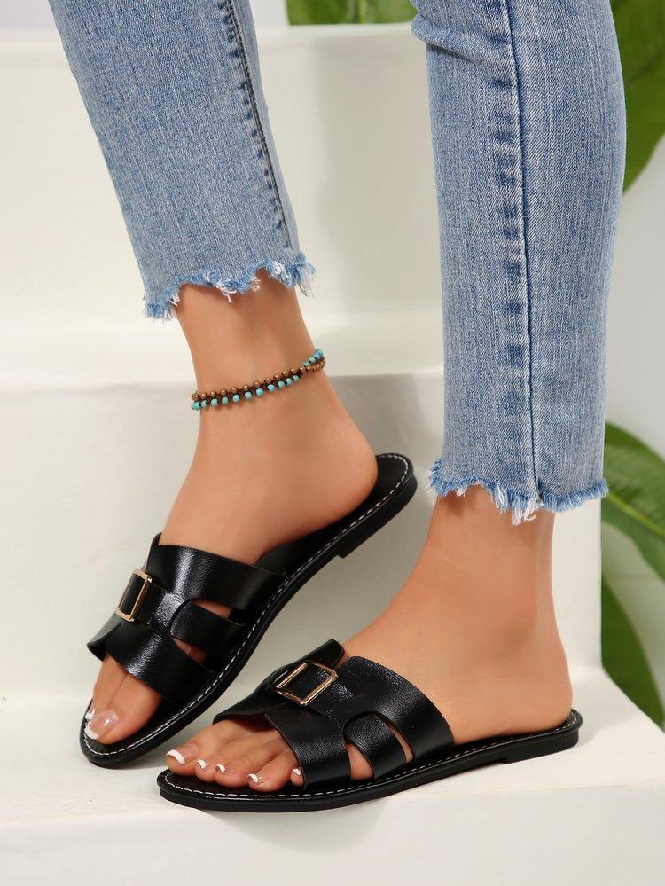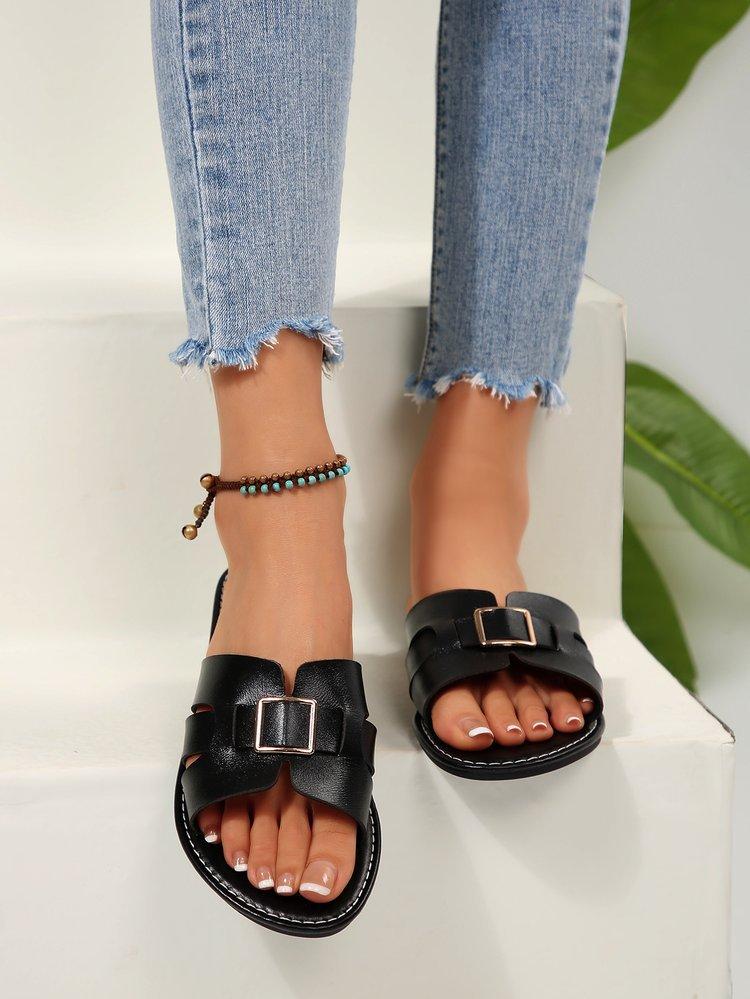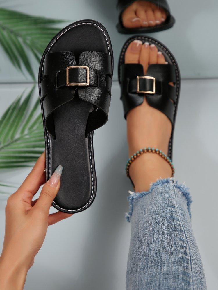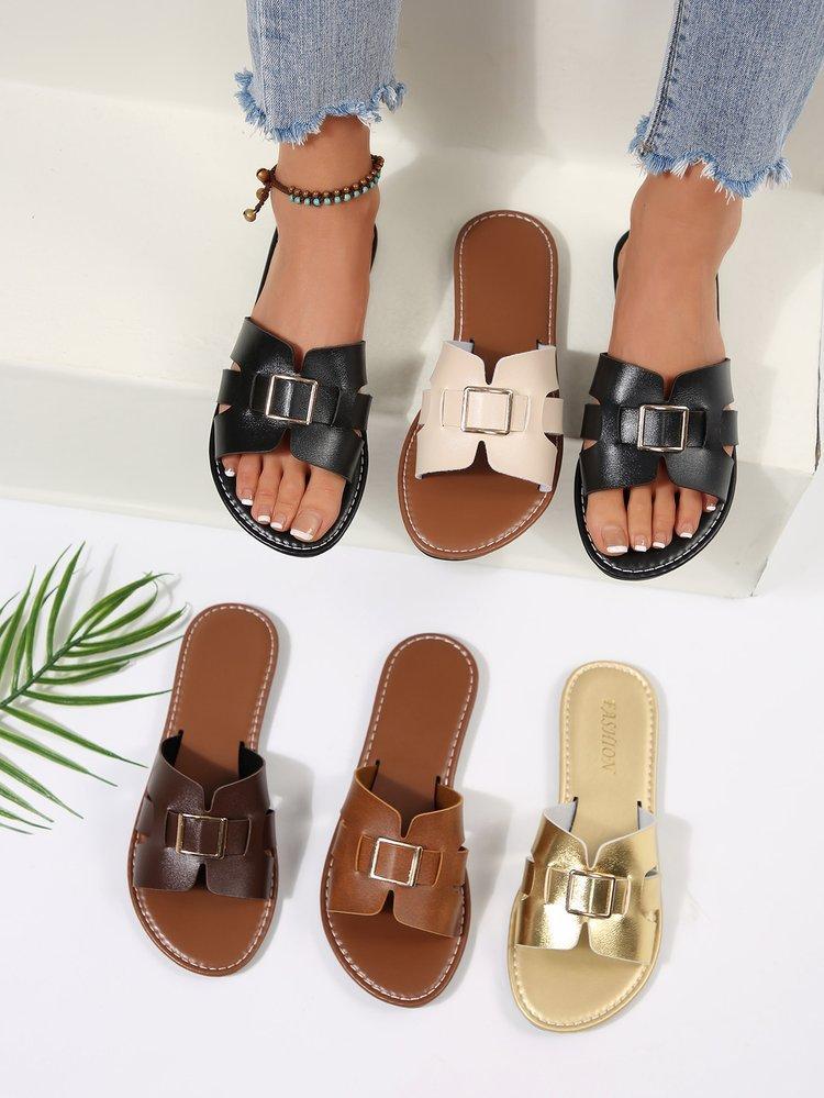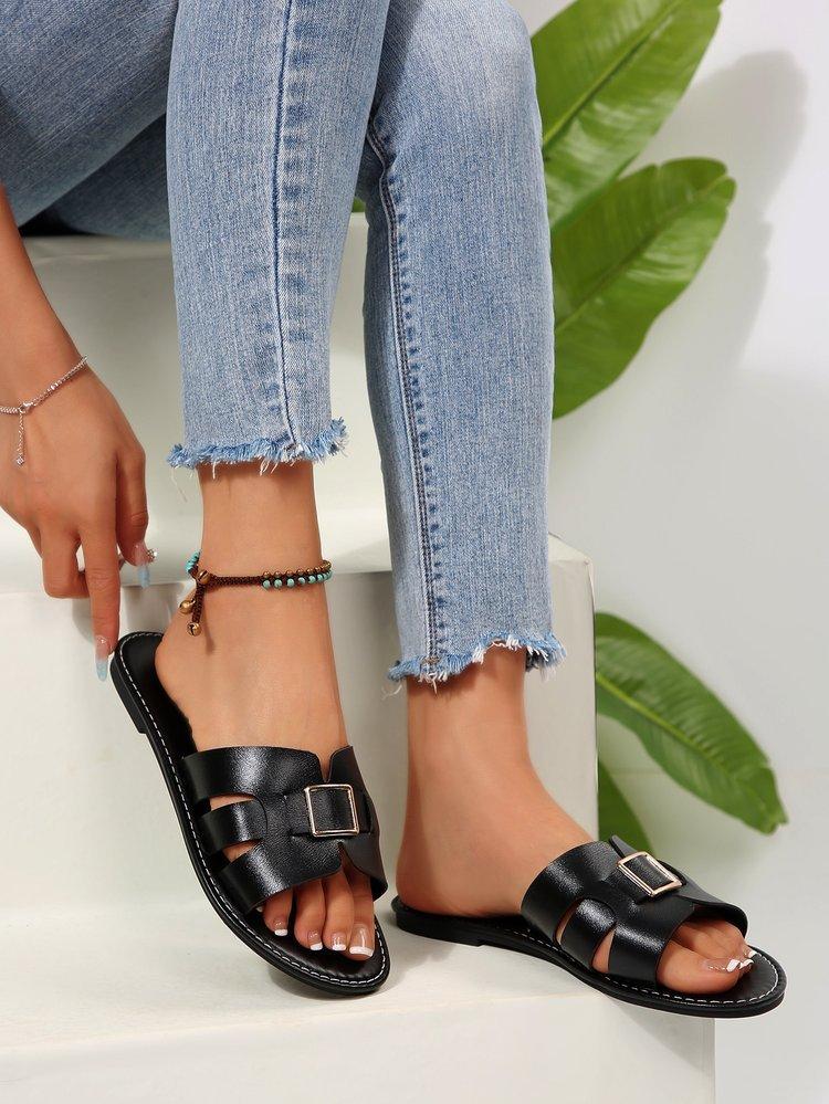 Amazon dropshipping fábrica atacado 2025 novo comércio exterior transfronteiriço tamanho grande chinelos de praia planos femininos botões