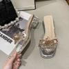Decoração de Flor de Cristal Chinelos Versáteis de Tira Única Verão 2025 Novo Estilo Fada Sandálias Chinelos Femininos para Exterior