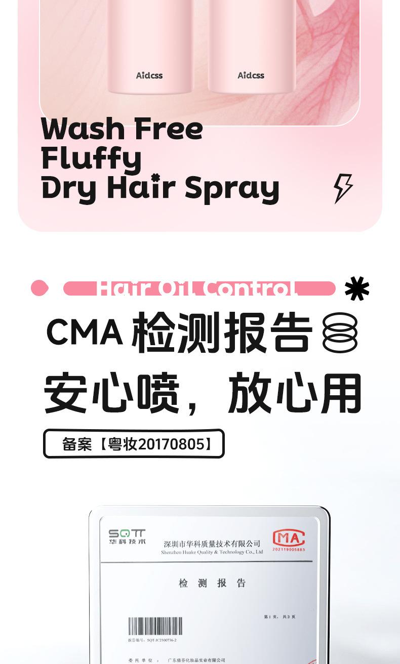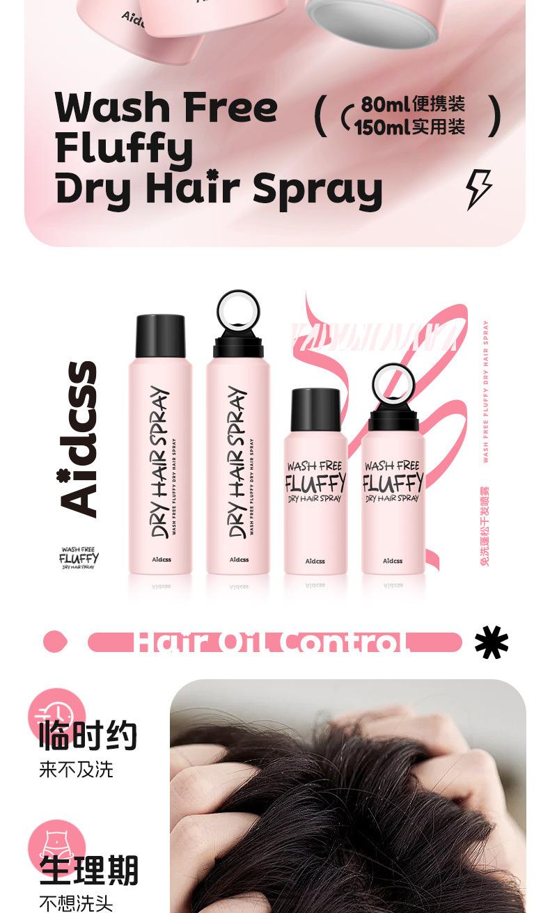 Atacado Popular Aidcss Spray Capilar Seco Fluffy Sem Lavagem Artefato Desengordurante Capilar Pó Fluffy Controle de Oleosidade e Refrescante