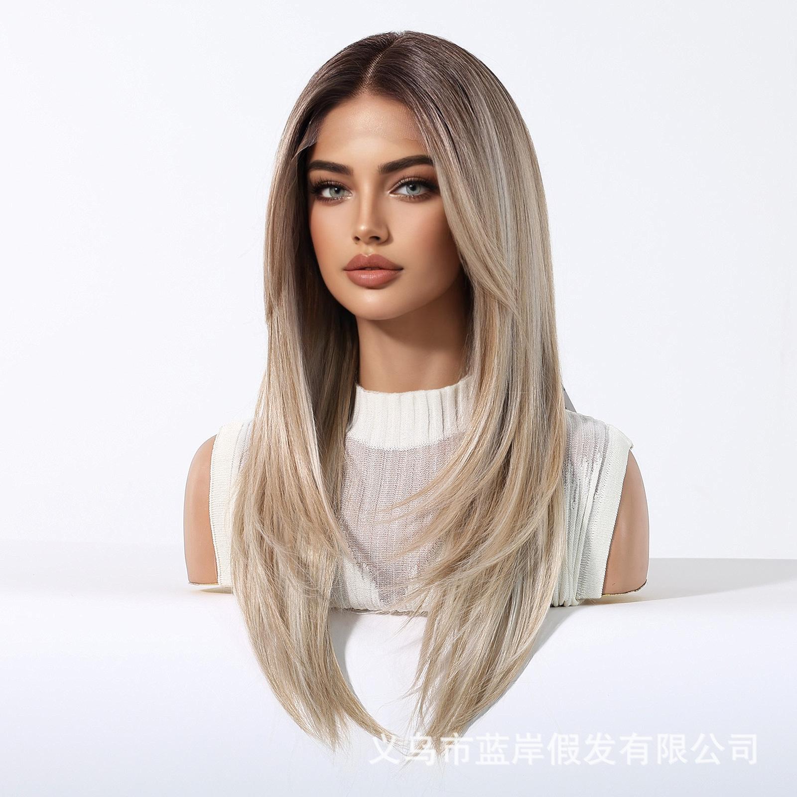 Peruca de renda dourada com gradiente de área grande 13*6 cabelo de costura livre feminino macio liso perucas de renda de fibra química