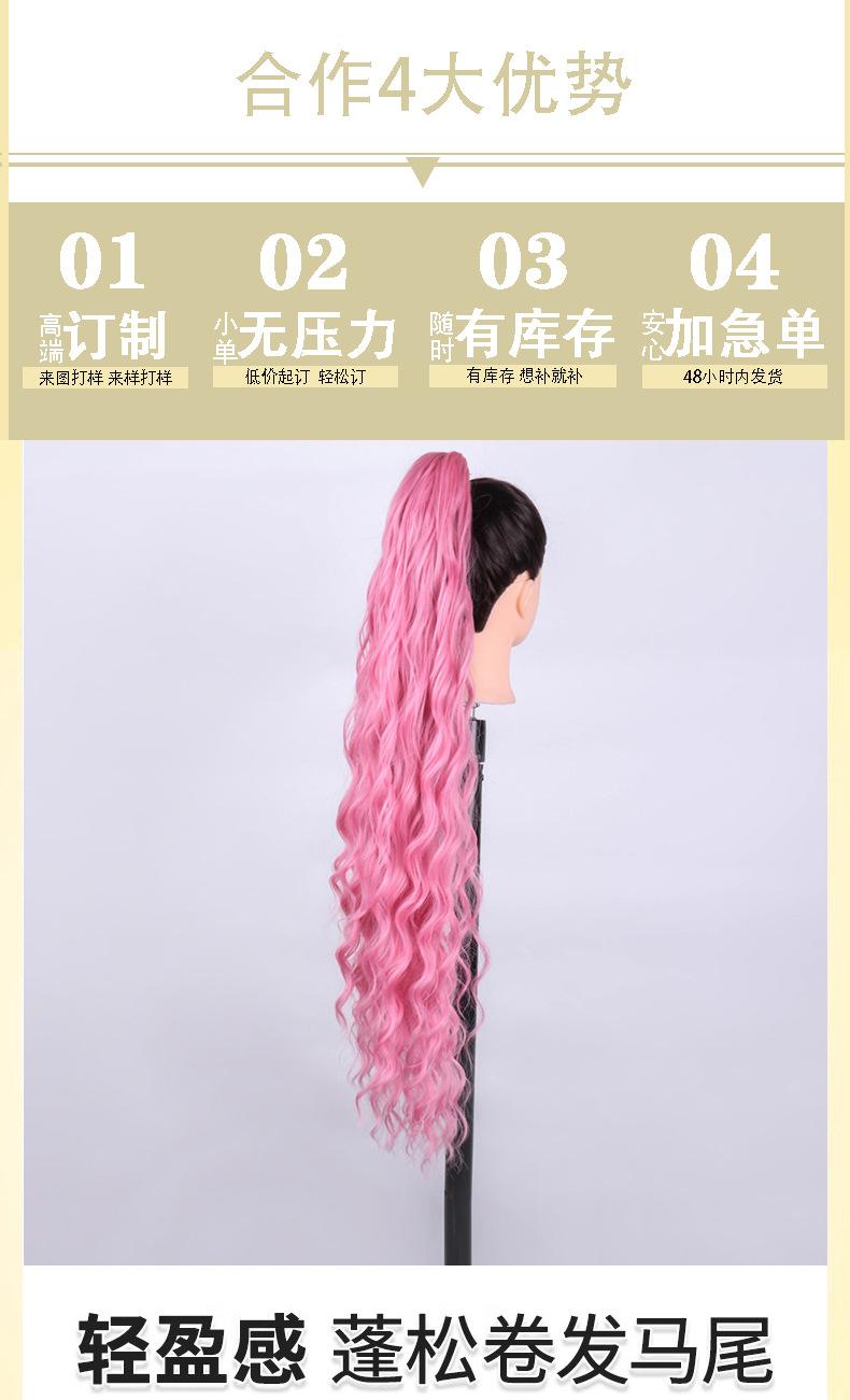 Peruca transfronteiriça feminina cabelo longo rabo de cavalo europeu e americano cabelo longo cacheado com clipe peruca de fibra química rabo de cavalo alto atacado direto da fábrica