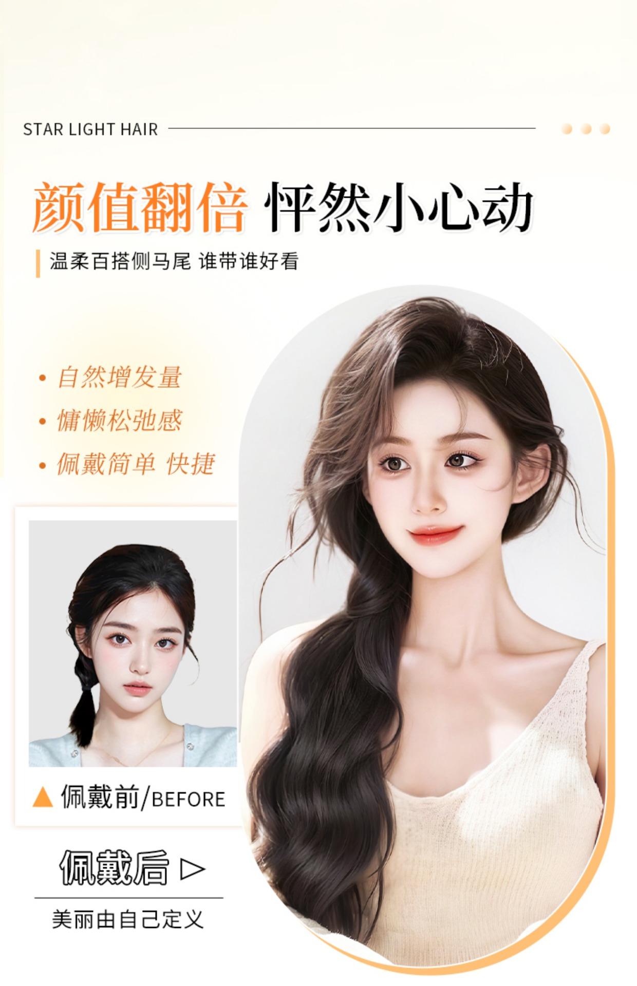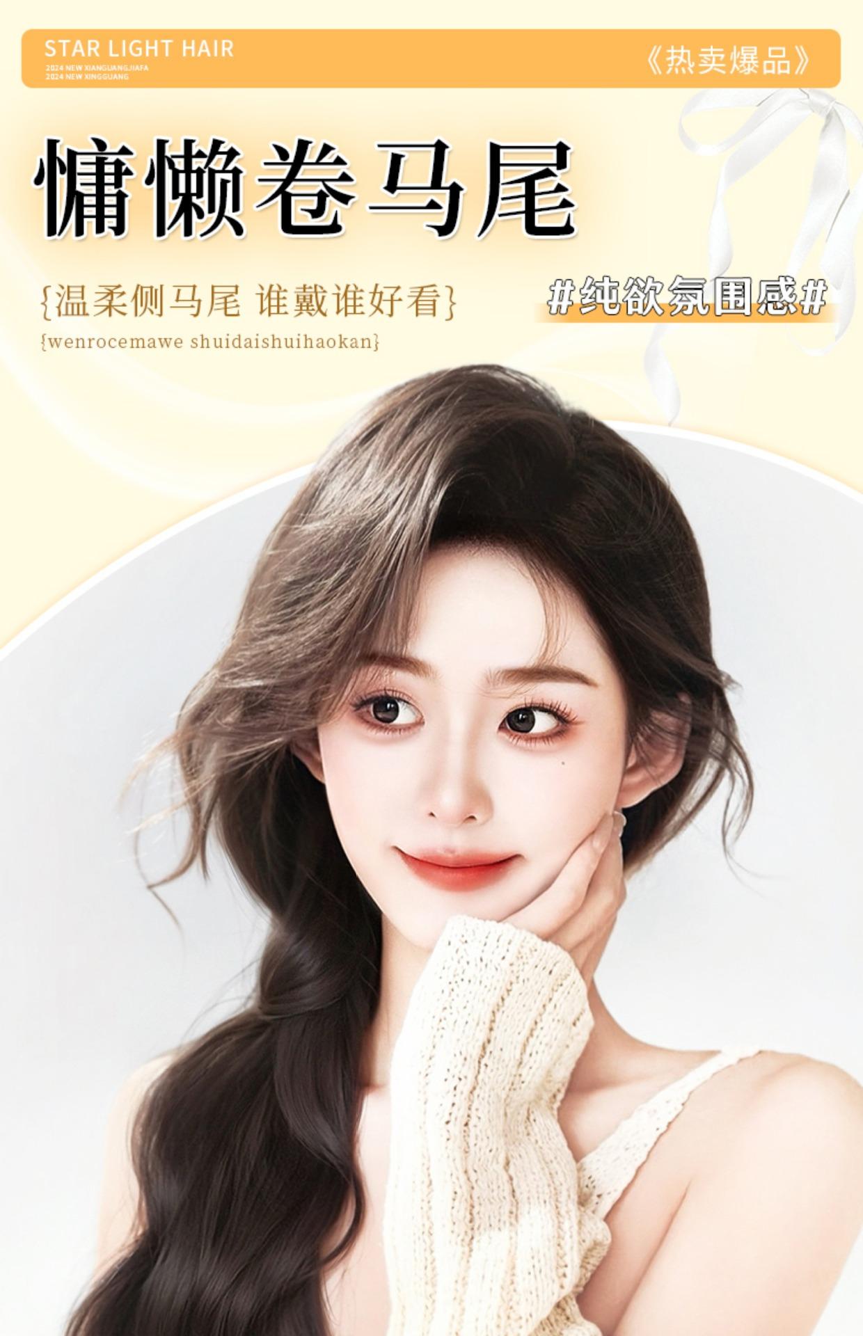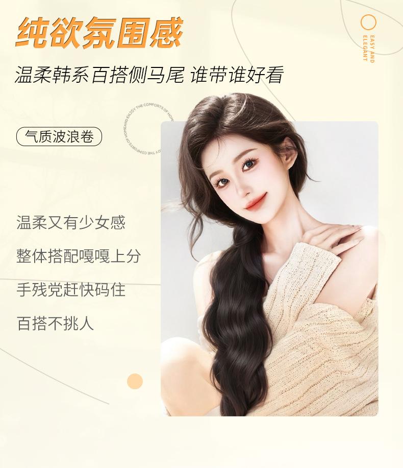Peruca Rabo de Cavalo Mulheres Cabelo Longo Preguiçoso Doce Legal Simulação Elástico Amarrar Cabelo Amarrado Baixo Rabo de Cavalo Ondulado Natural