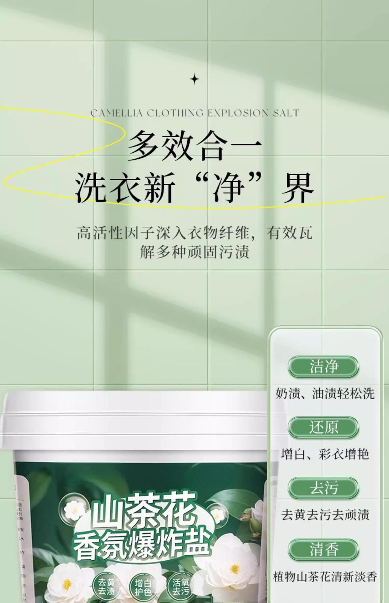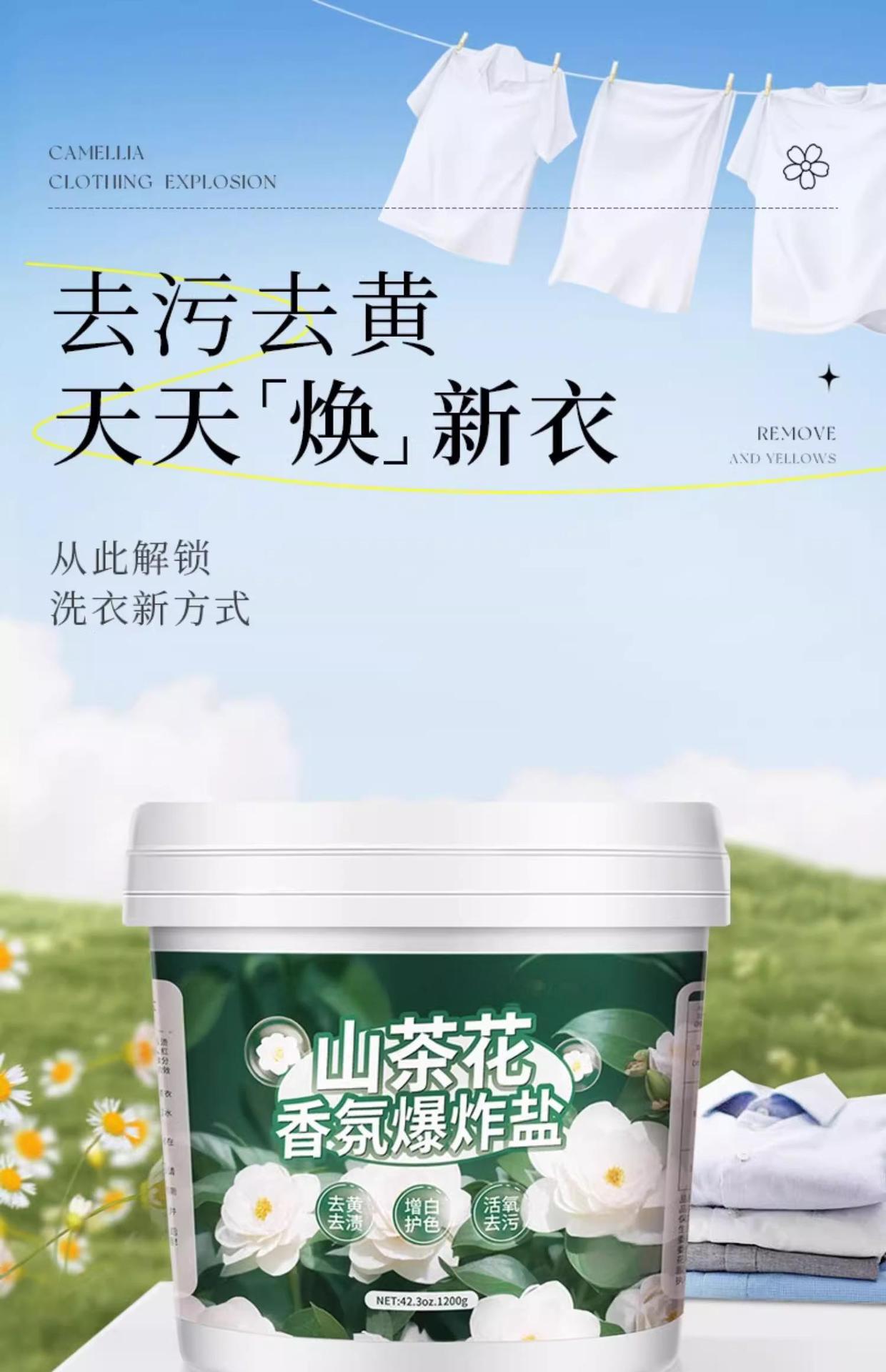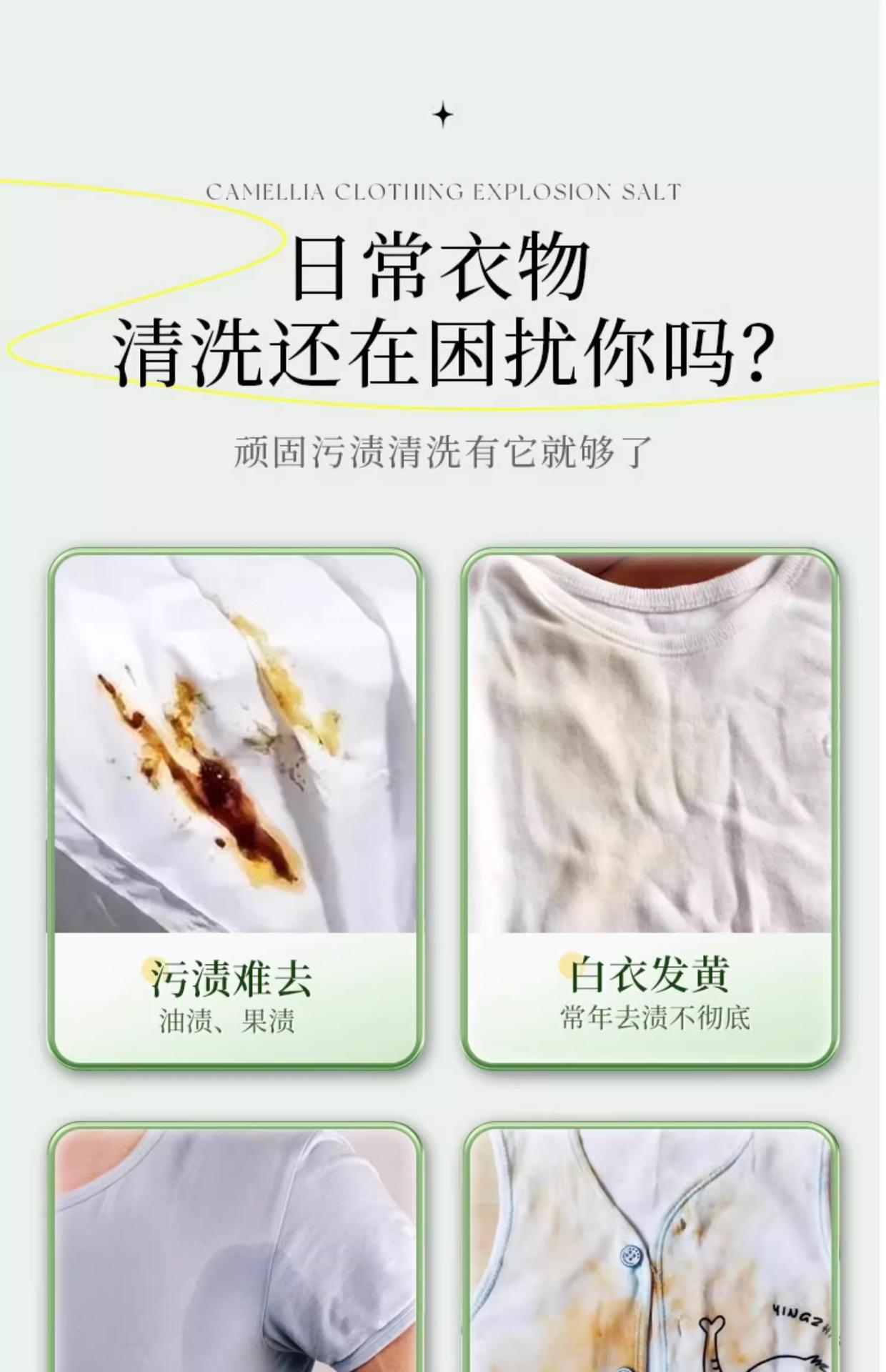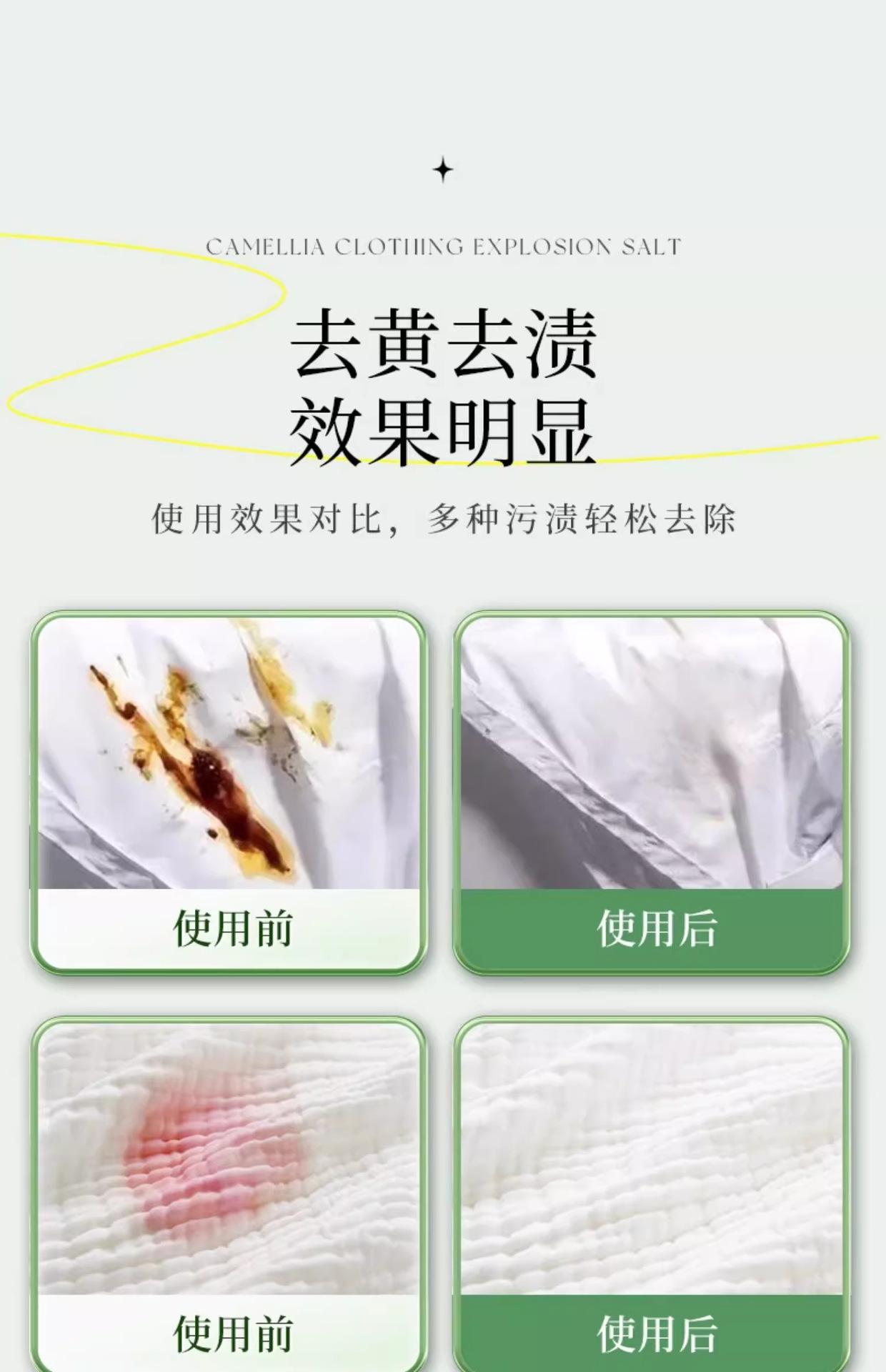 Poderoso Removedor de Manchas Sal Explosivo Detergente para Roupa Camélia Removedor de Manchas Doméstico Poderoso para Manchas Amareladas, Remoção de Mofo, Clareamento e Pó Alvejante para Cores