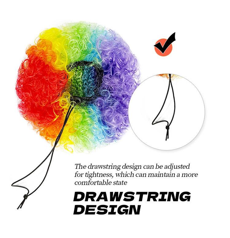 Peruca Cabelo Afro Palhaço Cos Fantasia Halloween Festa Mascarada Colorida Arco-Íris