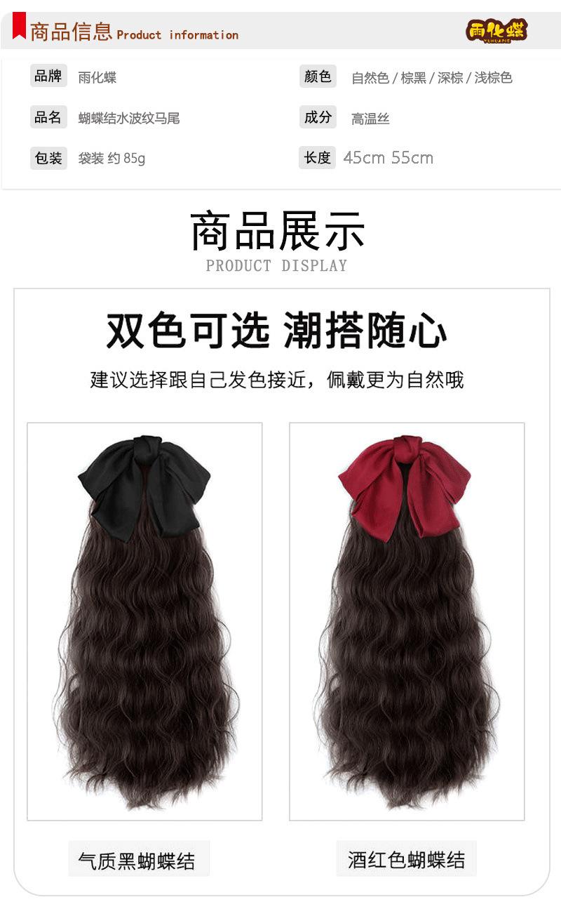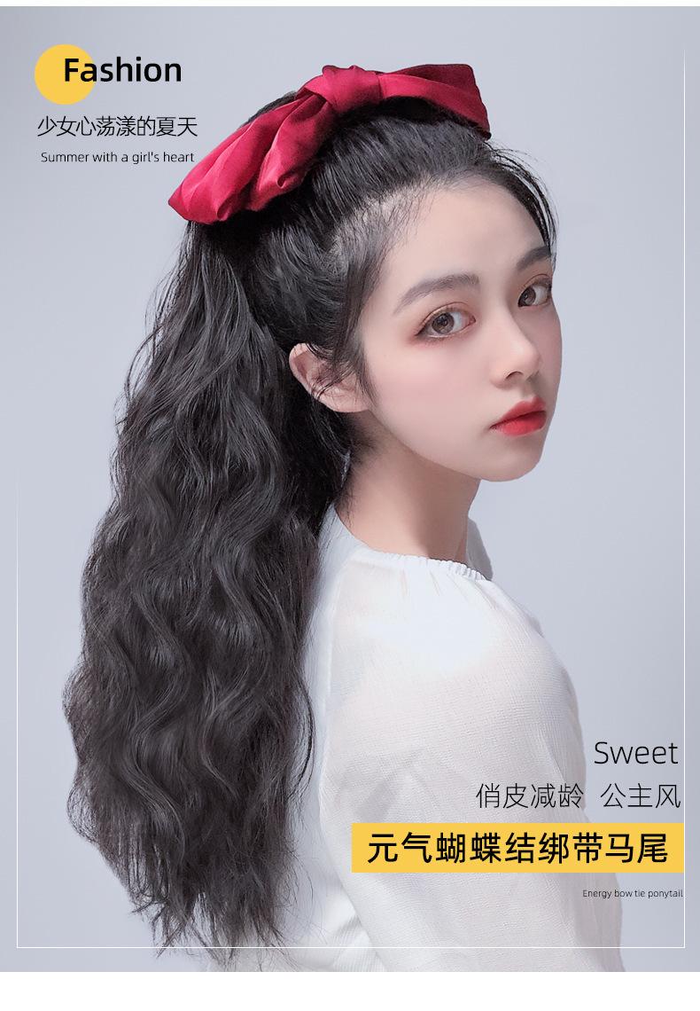 Atacado de fábrica peruca rabo de cavalo cabelo longo cacheado preto laço clipe de fixação natural doce peruca rabo de cavalo ondulação de água