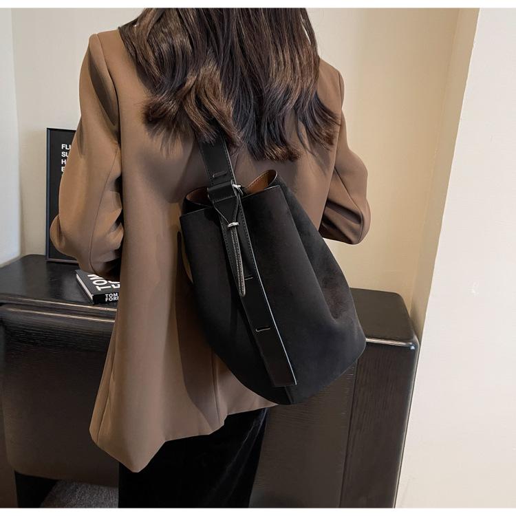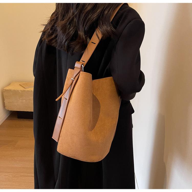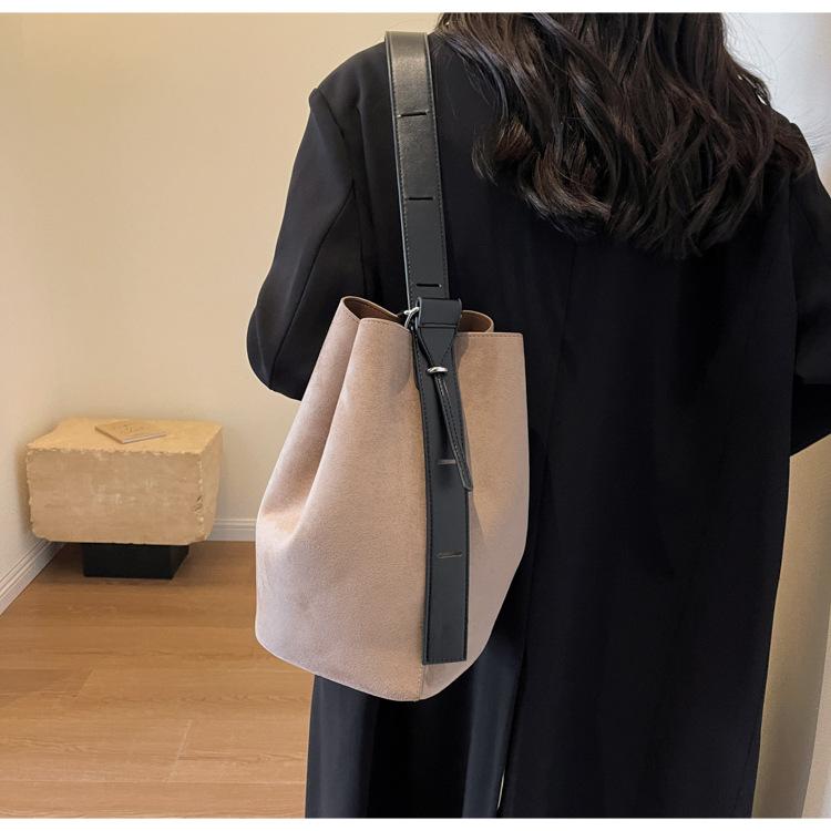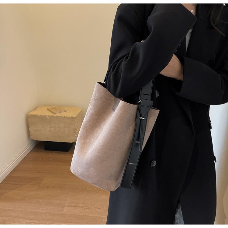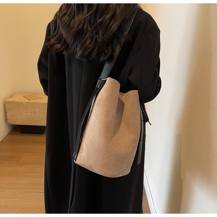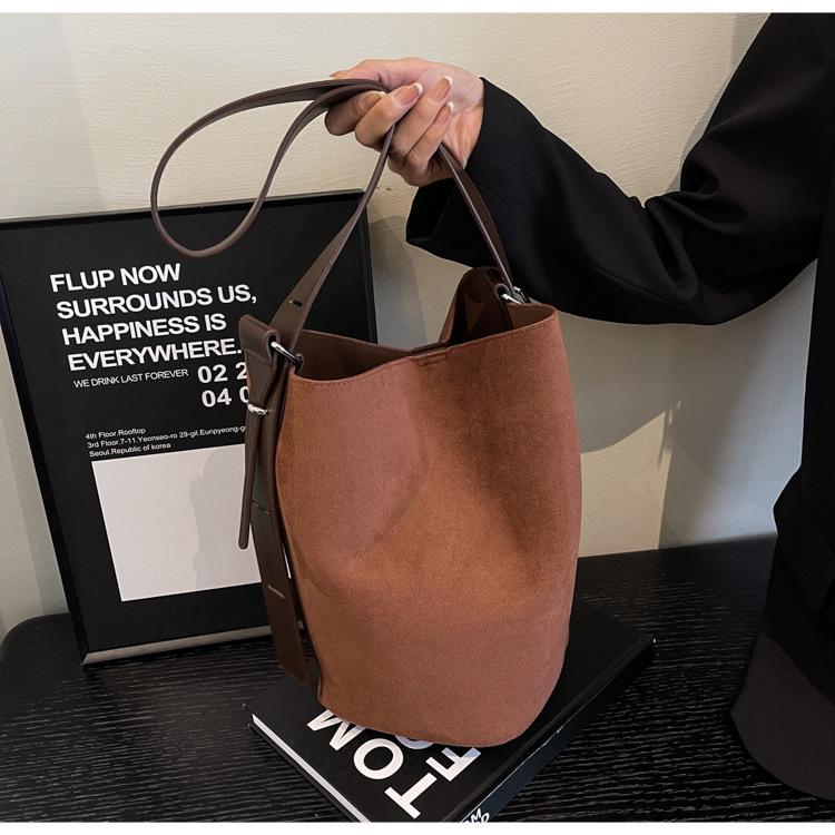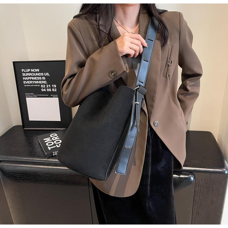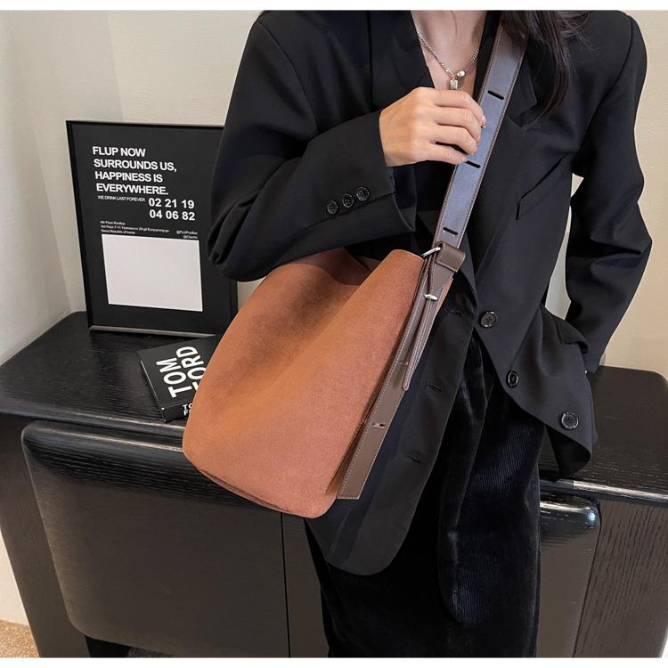 Bolsas Bolsa Transversal Feminina Bolsa de Ombro de Grande Capacidade Nova Textura Retrô Estilo Ocidental Moda Bolsa Balde