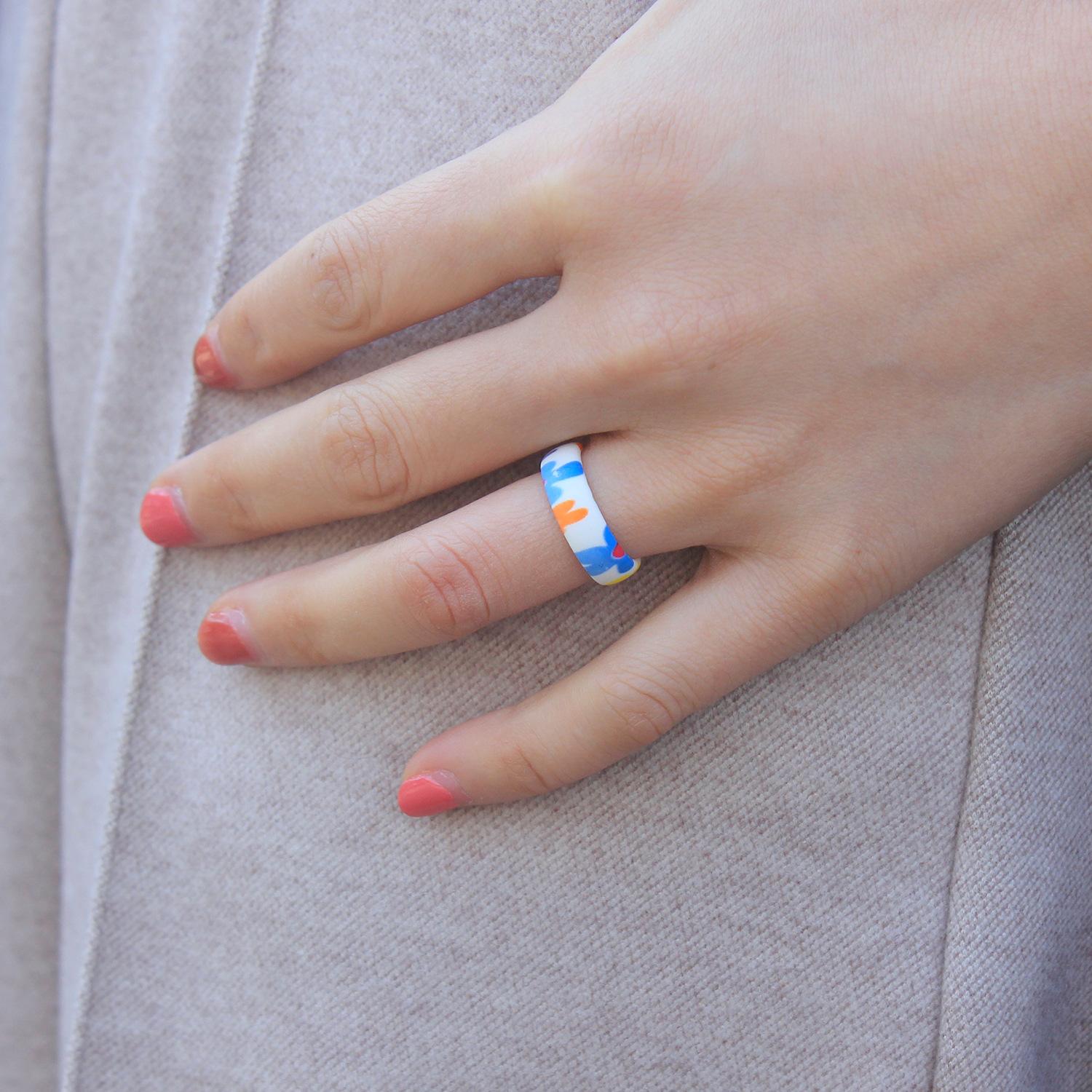 Compre Novo Anel de Silicone 5,7mm de Largura Flor Longevidade Anel de Silicone Feminino Moda Trendy Anel de Casal de Silicone no atacado no Joom.pro