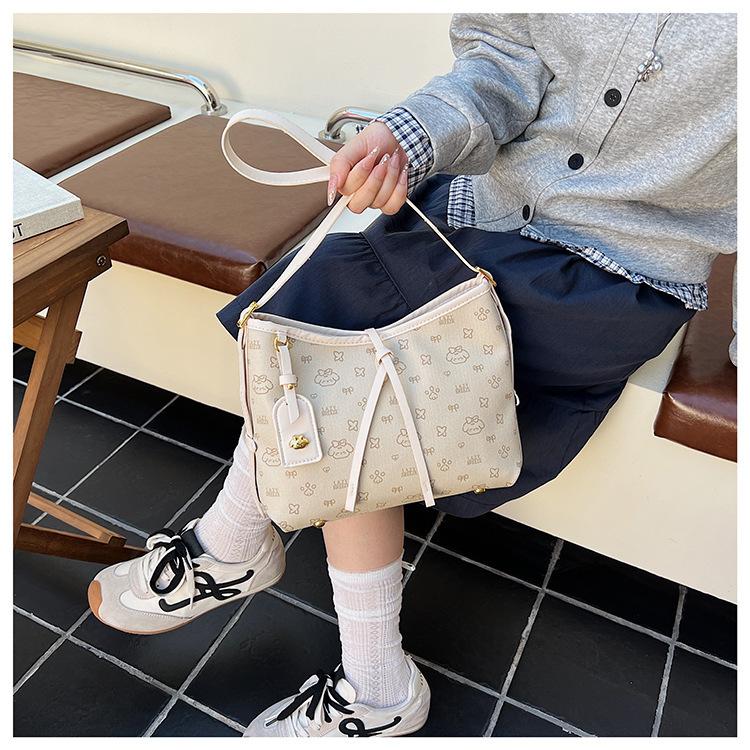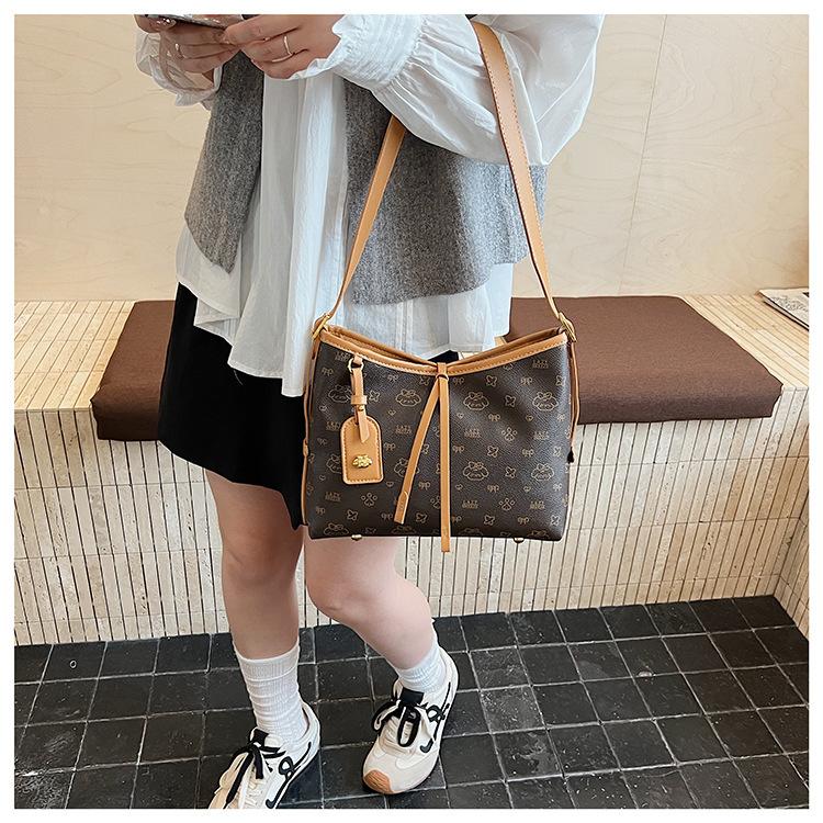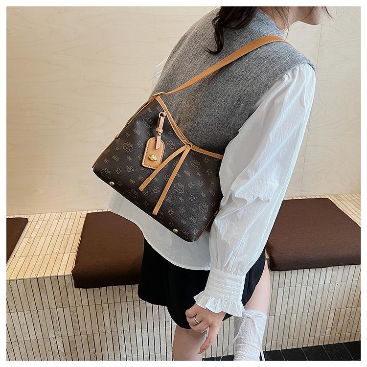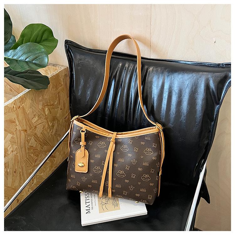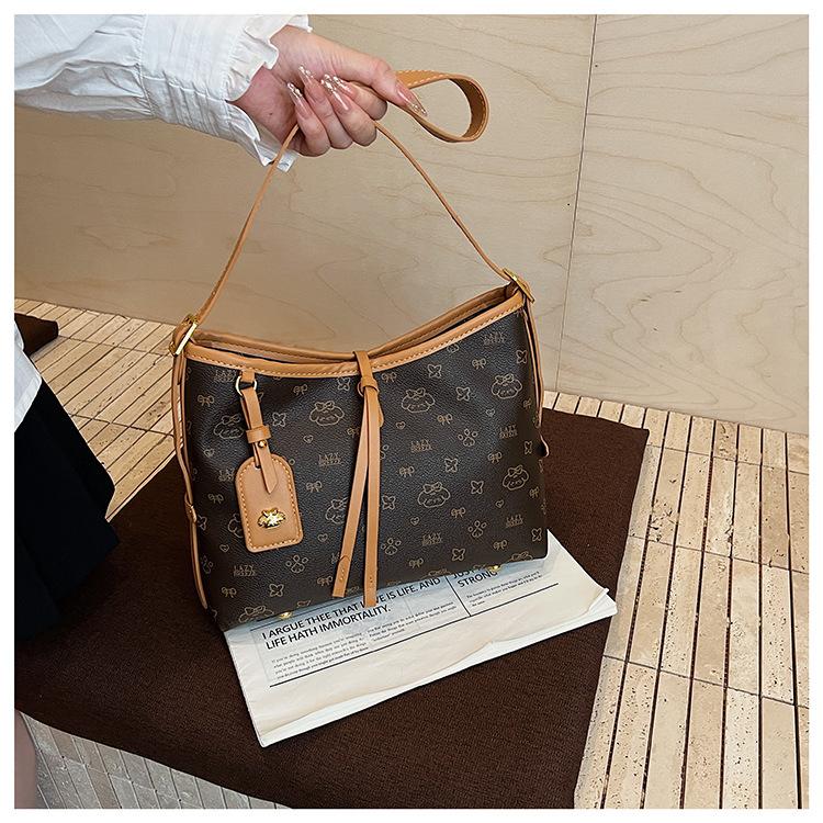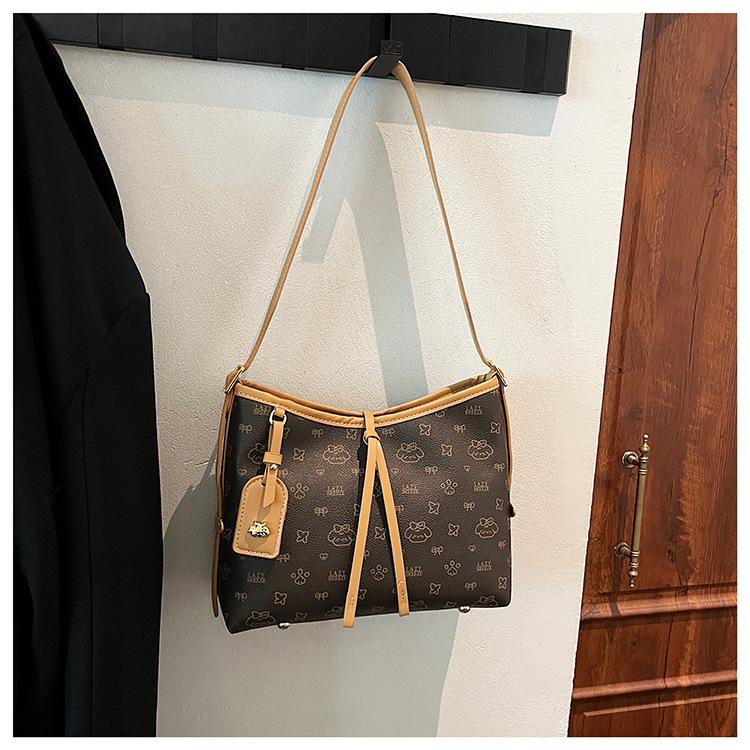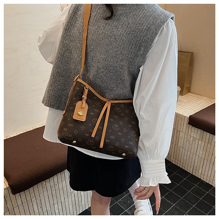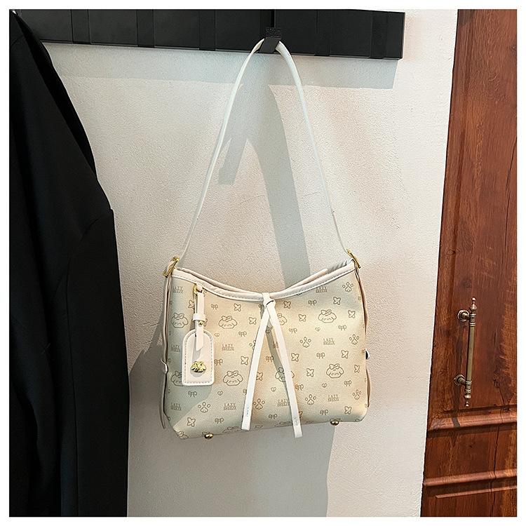 Bolsa Transversal Retrô de Axila Feminina Estilo Coreano Novo Grande Capacidade Commute Bolsa Balde Versátil Moda Ombro Único Transversal