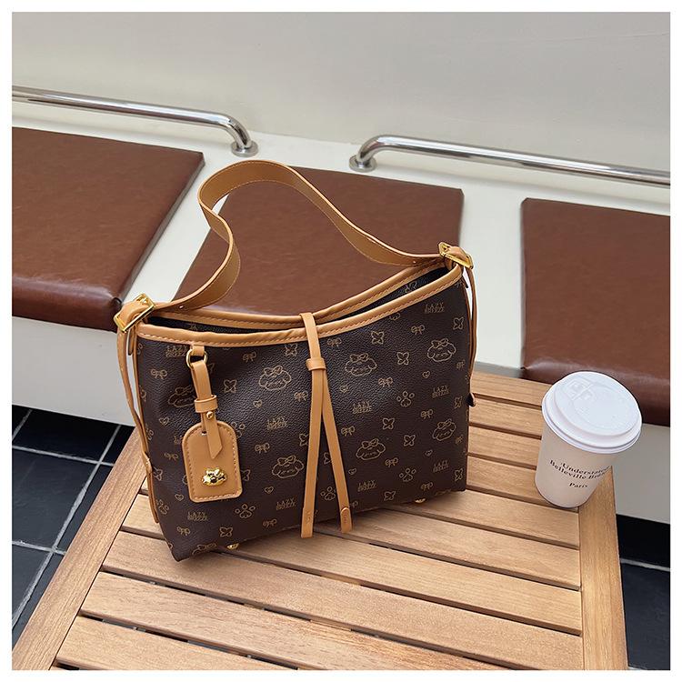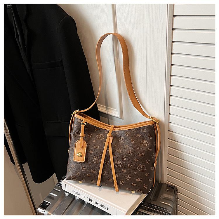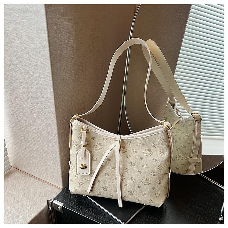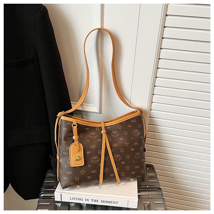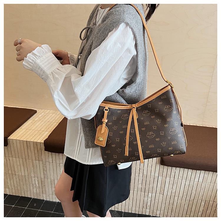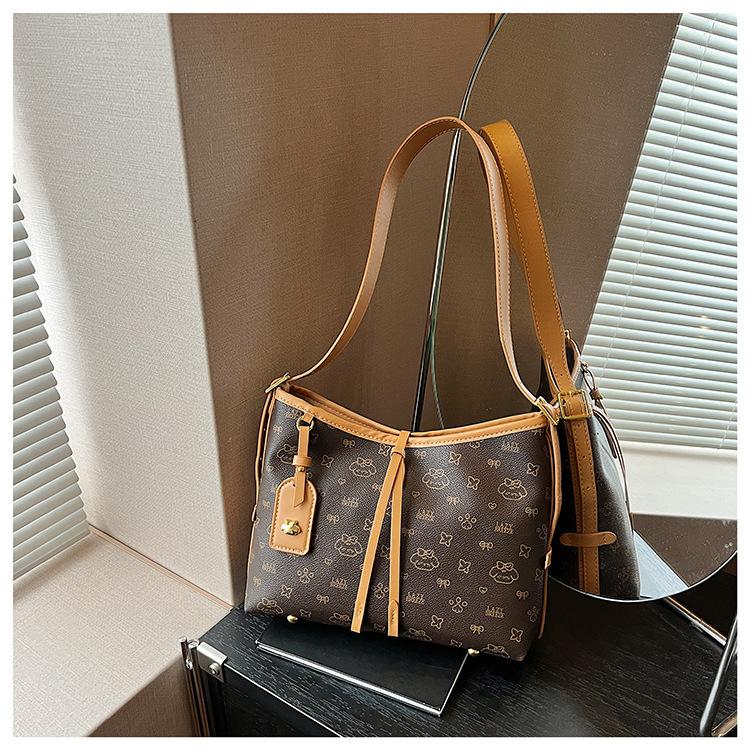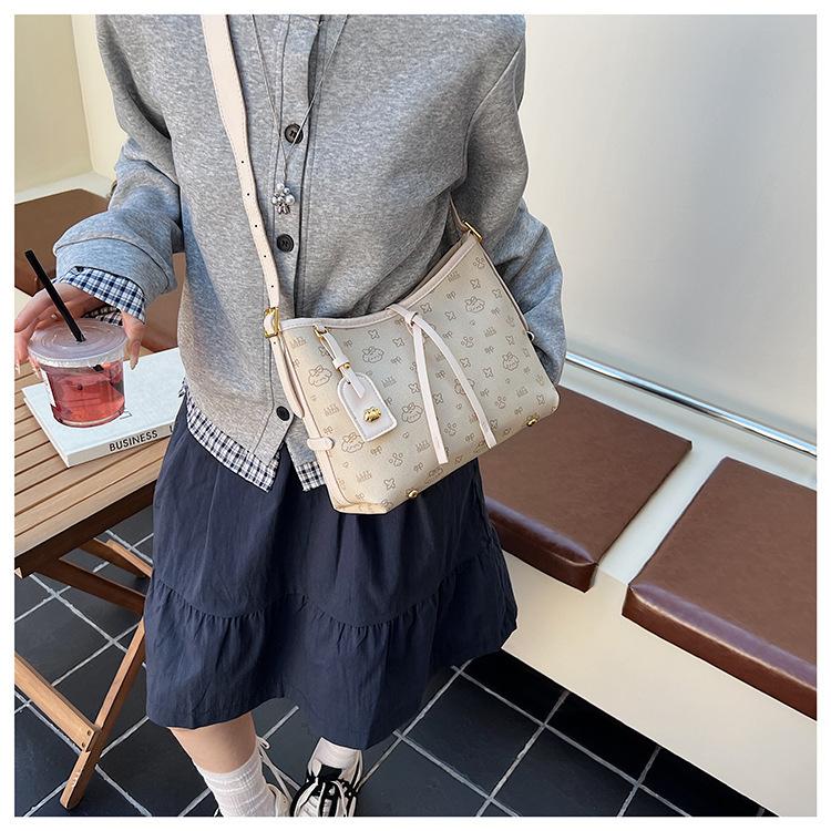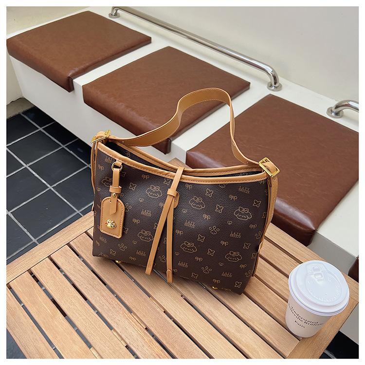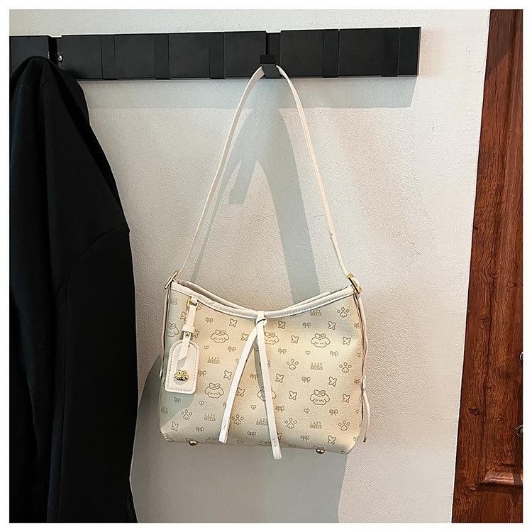 Bolsa Transversal Retrô de Axila Feminina Estilo Coreano Novo Grande Capacidade Commute Bolsa Balde Versátil Moda Ombro Único Transversal