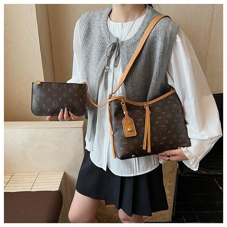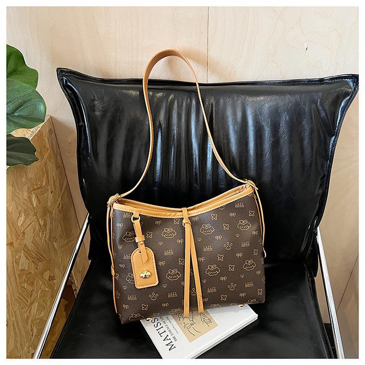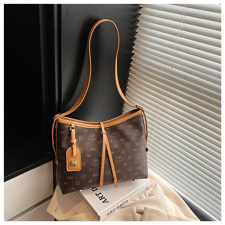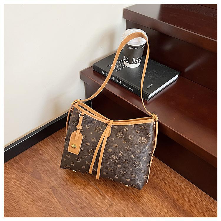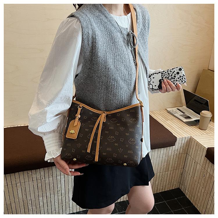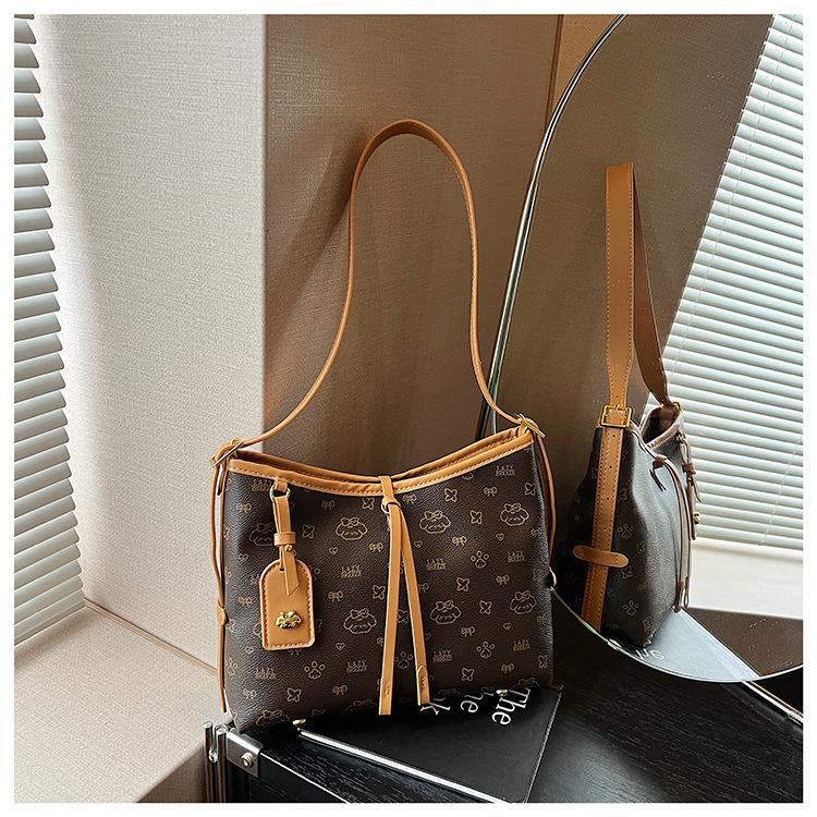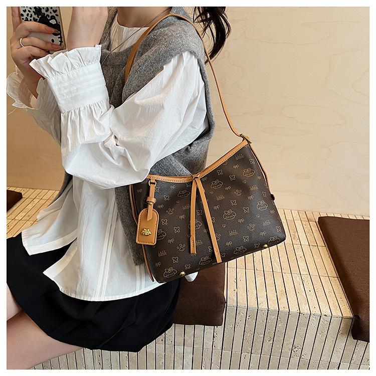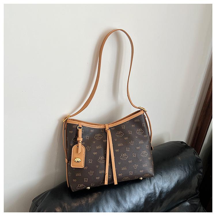 Bolsa Transversal Retrô de Axila Feminina Estilo Coreano Novo Grande Capacidade Commute Bolsa Balde Versátil Moda Ombro Único Transversal