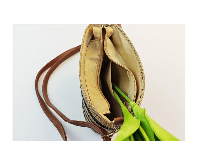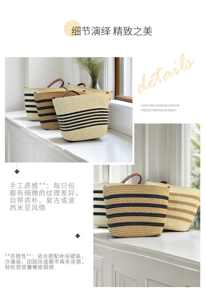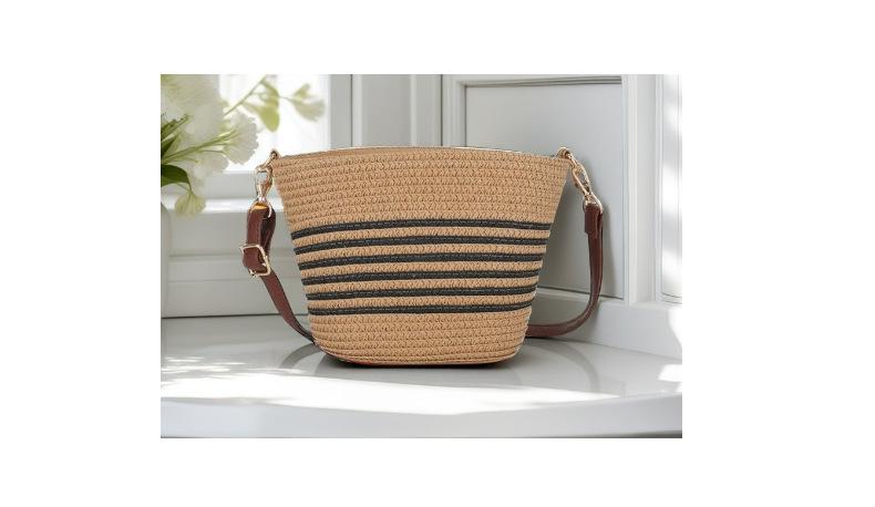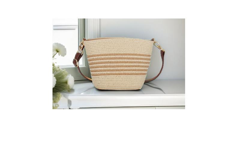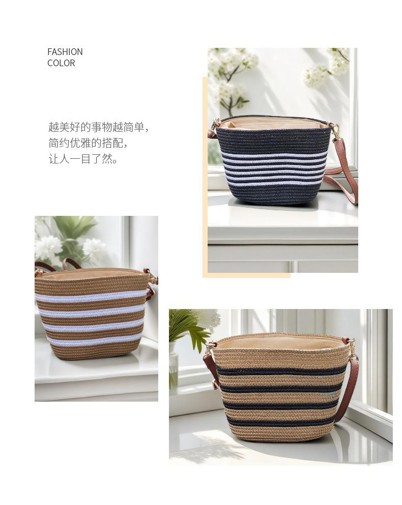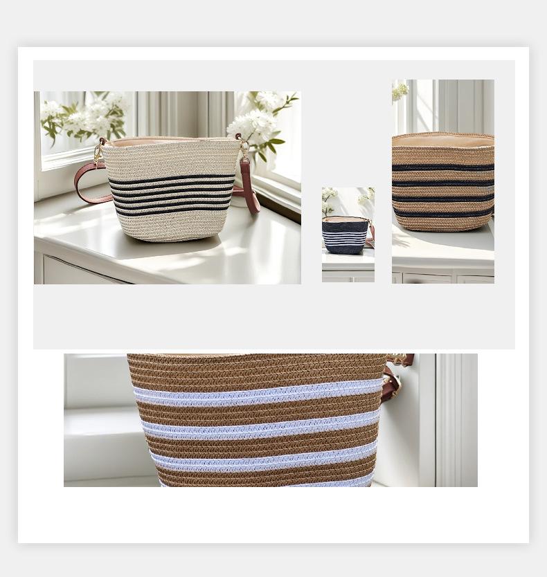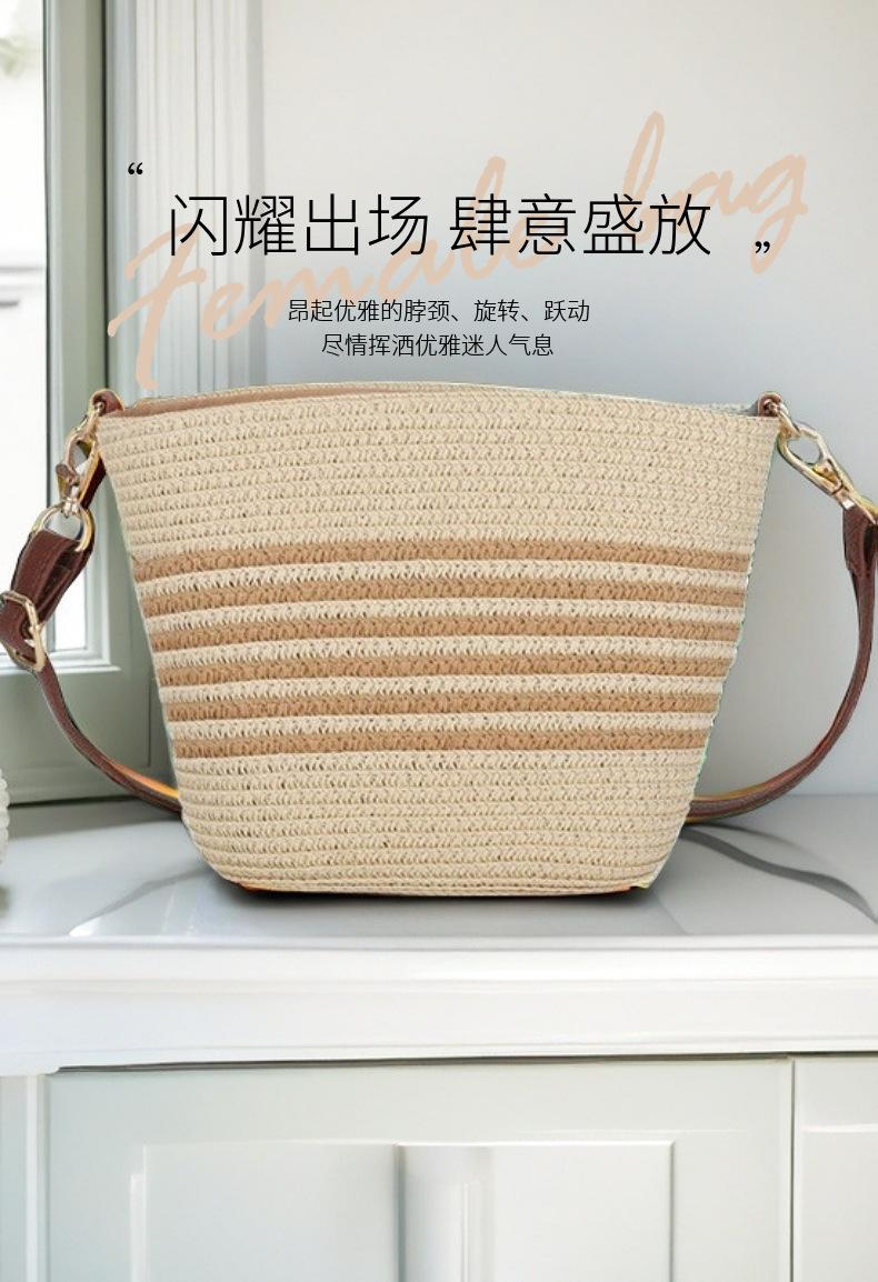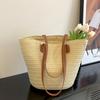 Bolsa Feminina de Palha Bolsa de Praia de Verão Bolsa de Mão para Viagem ao Ar Livre à Beira-Mar Bolsa Balde Transversal Bolsa Tecida à Mão Atacado