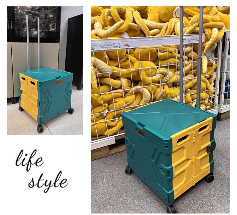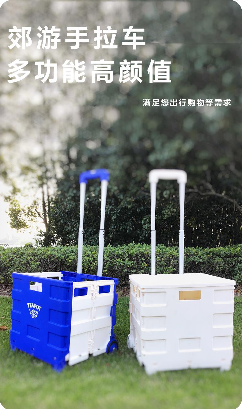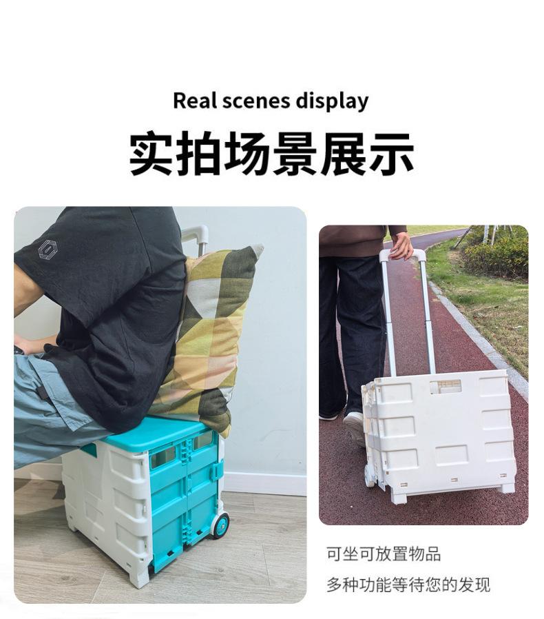 Carrinho Pequeno Dobrável Carrinho de Camping de Plástico para Pegar Itens Pesados Carrinho de Compras Dobrável Portátil