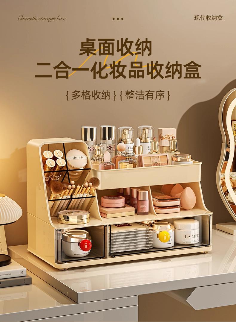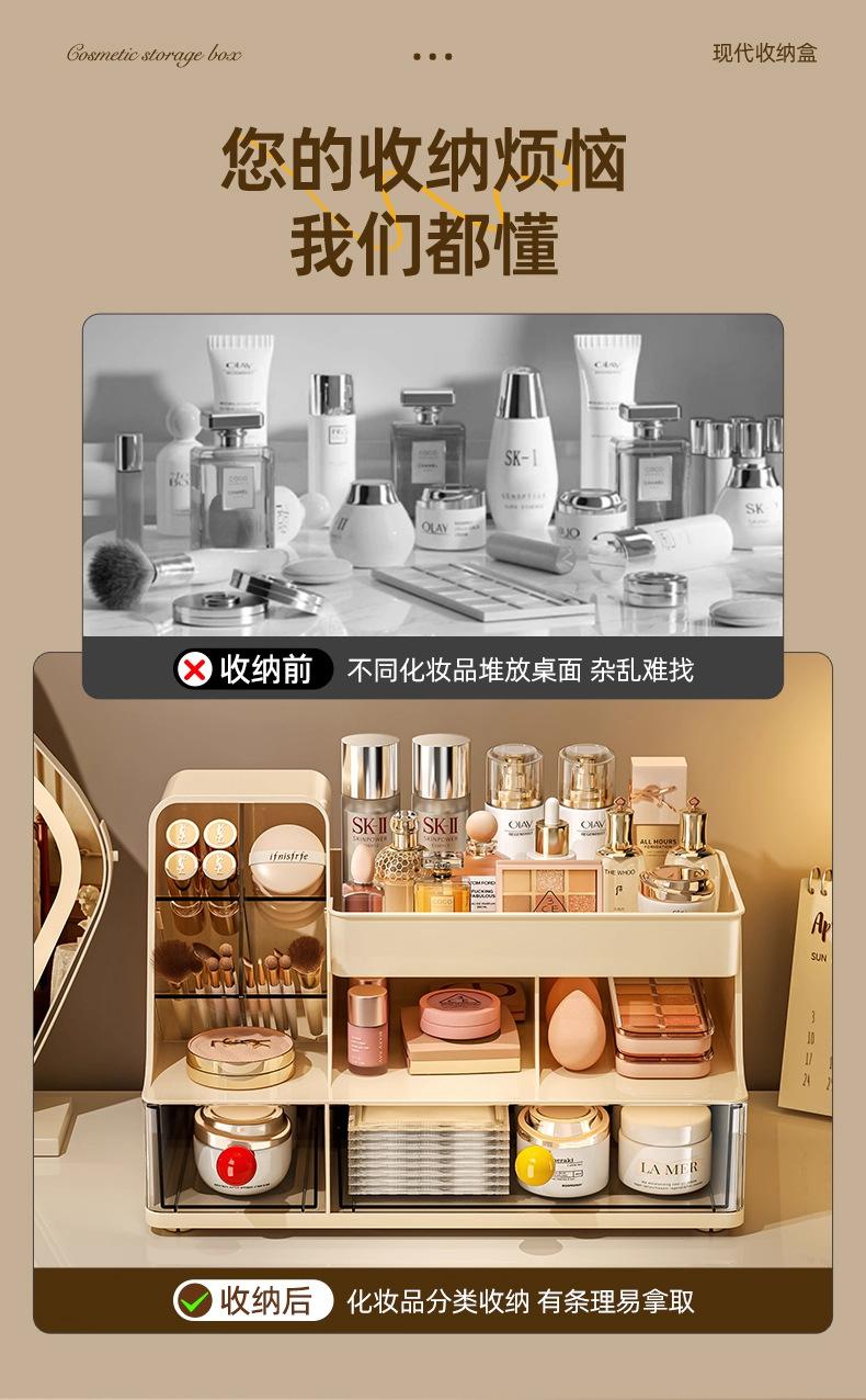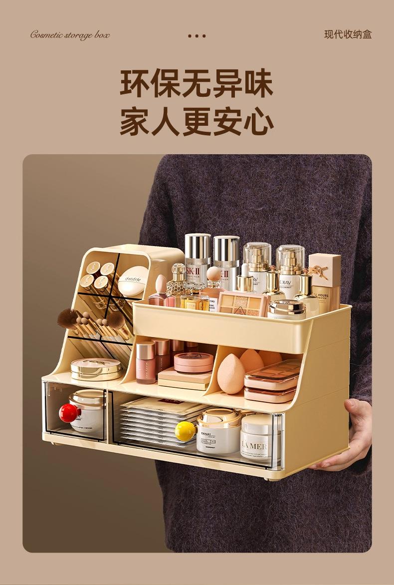 Compre Caixa de Armazenamento de Cosméticos Grande Capacidade Penteadeira Mesa de Trabalho Organizador de Batons Pincéis de Maquiagem à Prova de Poeira Caixa de Armazenamento para Cuidados com a Pele no atacado no Joom.pro