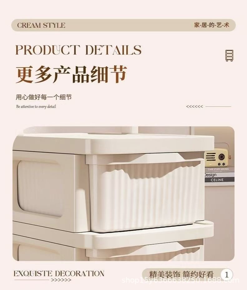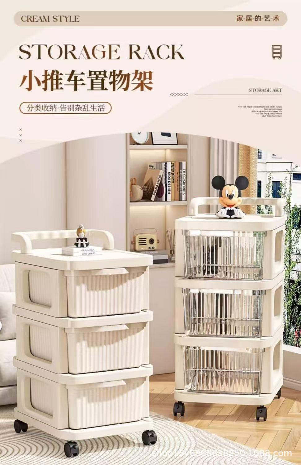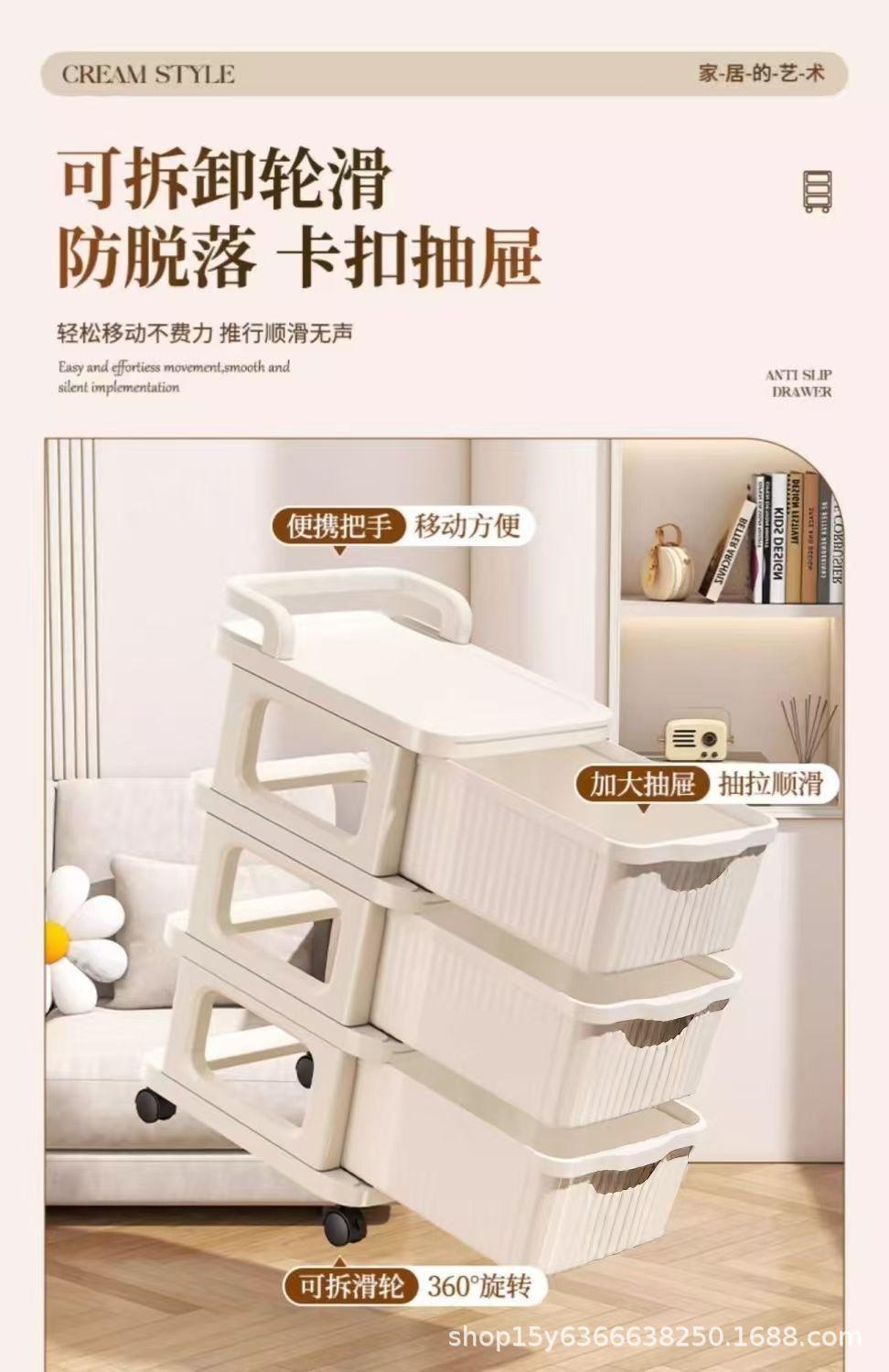 Compre Rack de Armazenamento Trolley Multicamadas Snack Creme Móvel Armazenamento de Brinquedos Sala de Estar Rack de Armazenamento Doméstico Tipo Gaveta de Chão no atacado no Joom.pro