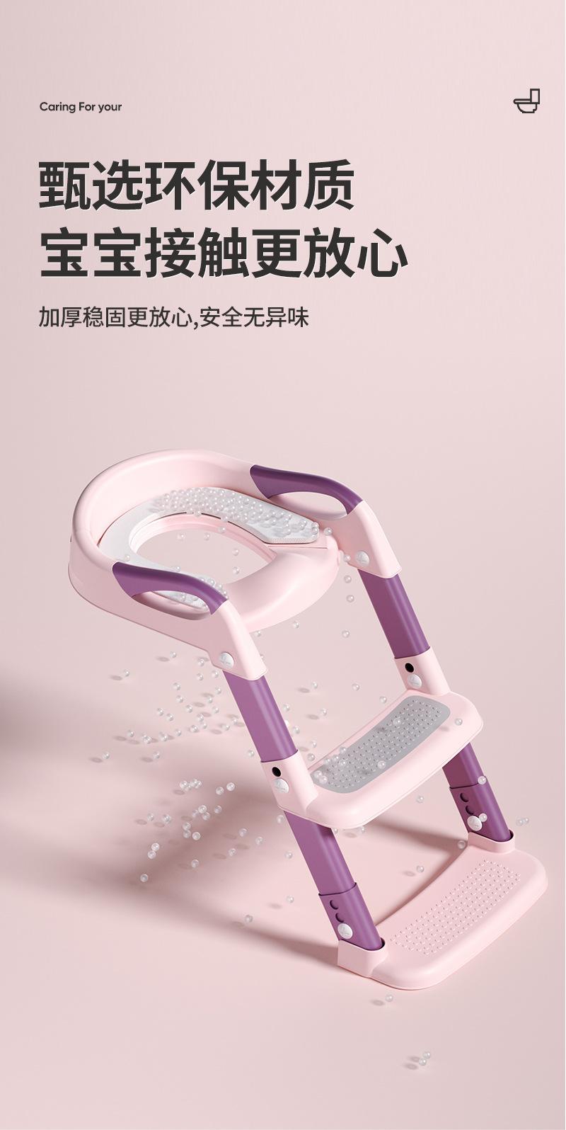 【Cherry Blossom Pink】Toilet Ladder + PU Pad + Double Foot Pedals