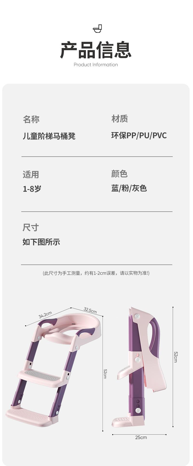 【Sakura Pink】Toilet Ladder + Hard Pad + Double Foot Pedals, 【Cherry Blossom Pink】Toilet Ladder + PVC Pad + Dou...