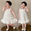 Vestido de Menina Verão 2025 Novo Estilo Vestido Regata Sem Mangas de Menina Vestido de Verão Bebê Crianças Vestido de Princesa