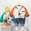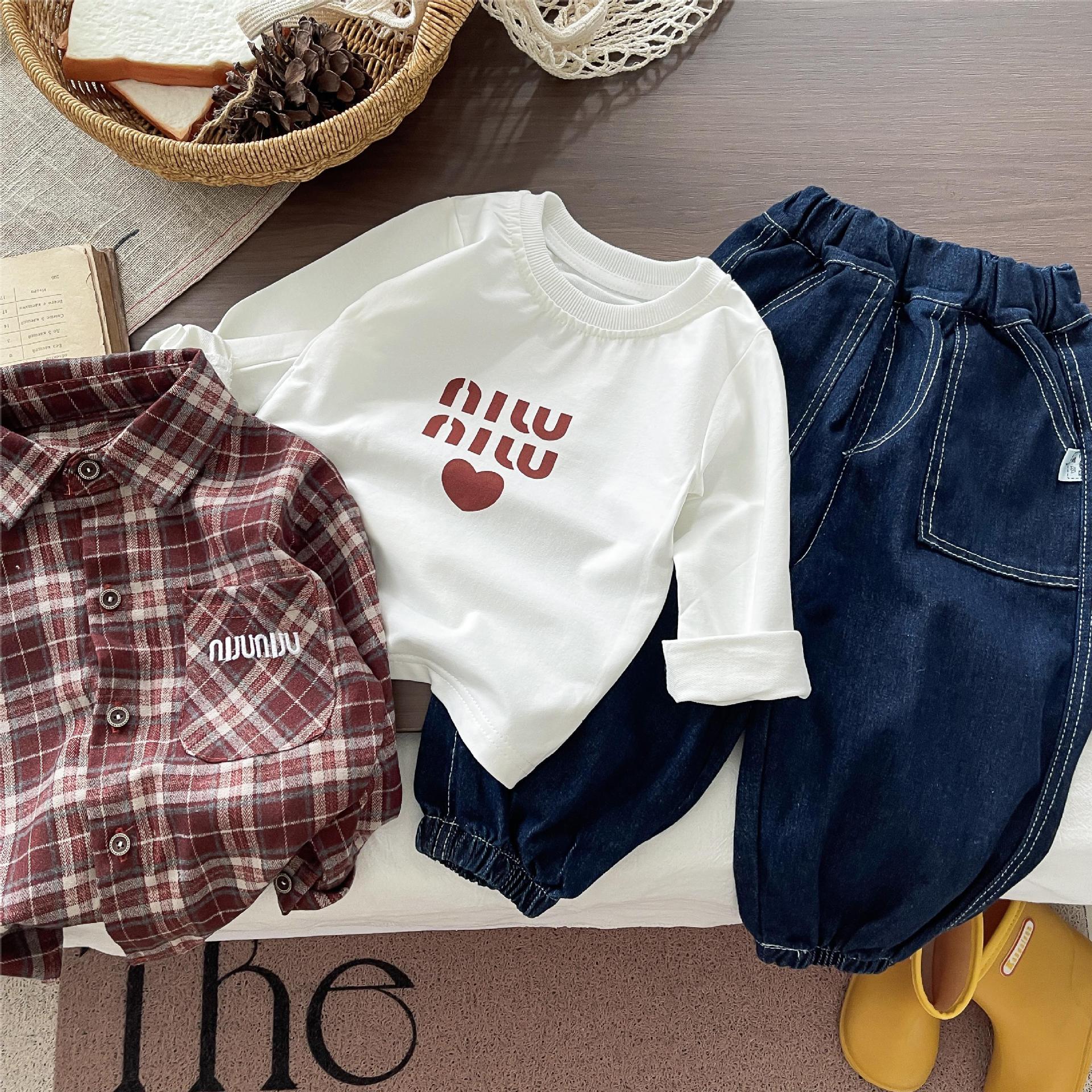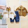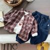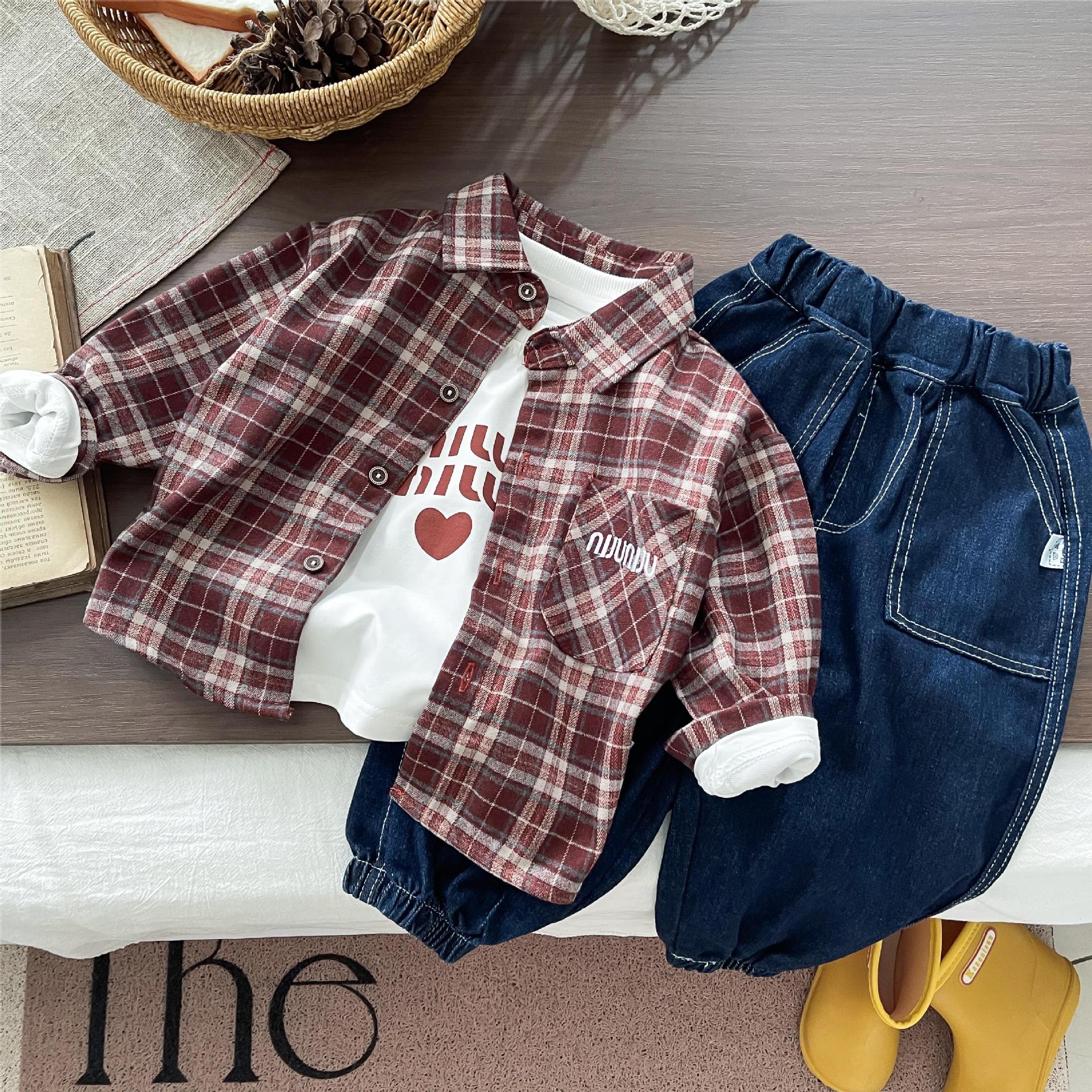 Roupa Infantil Conjunto de Primavera e Outono para Meninos 2025 Novo Bebê de 1-3 Anos Camisa Xadrez Conjunto Infantil Moderno de Três Peças