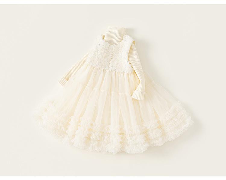 Bangxuan Vestido de Princesa da Moda de Outono Saia Infantil Saia de Malha para Meninas Conjunto de Duas Peças Vestido de Noite Vestido para Meninas