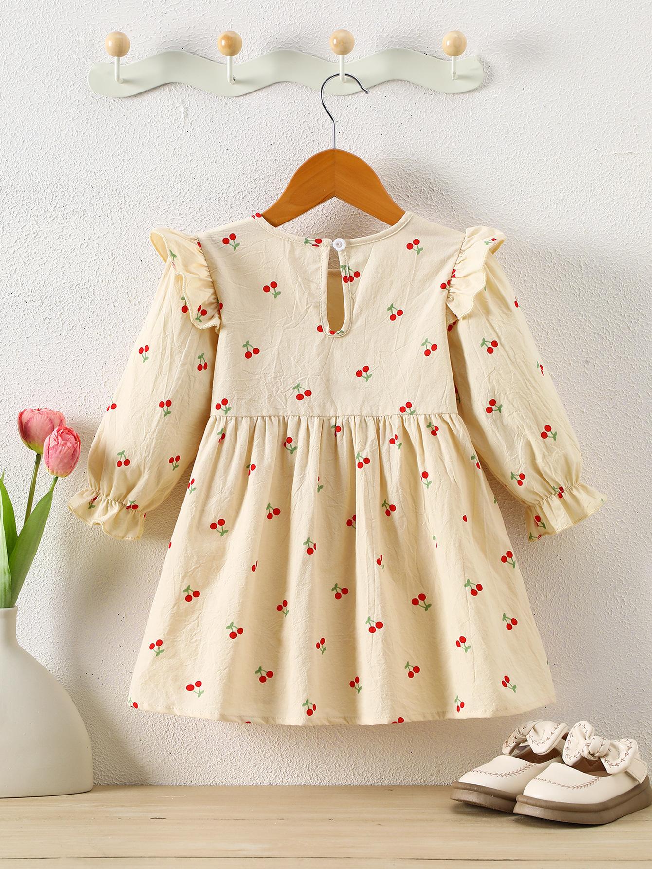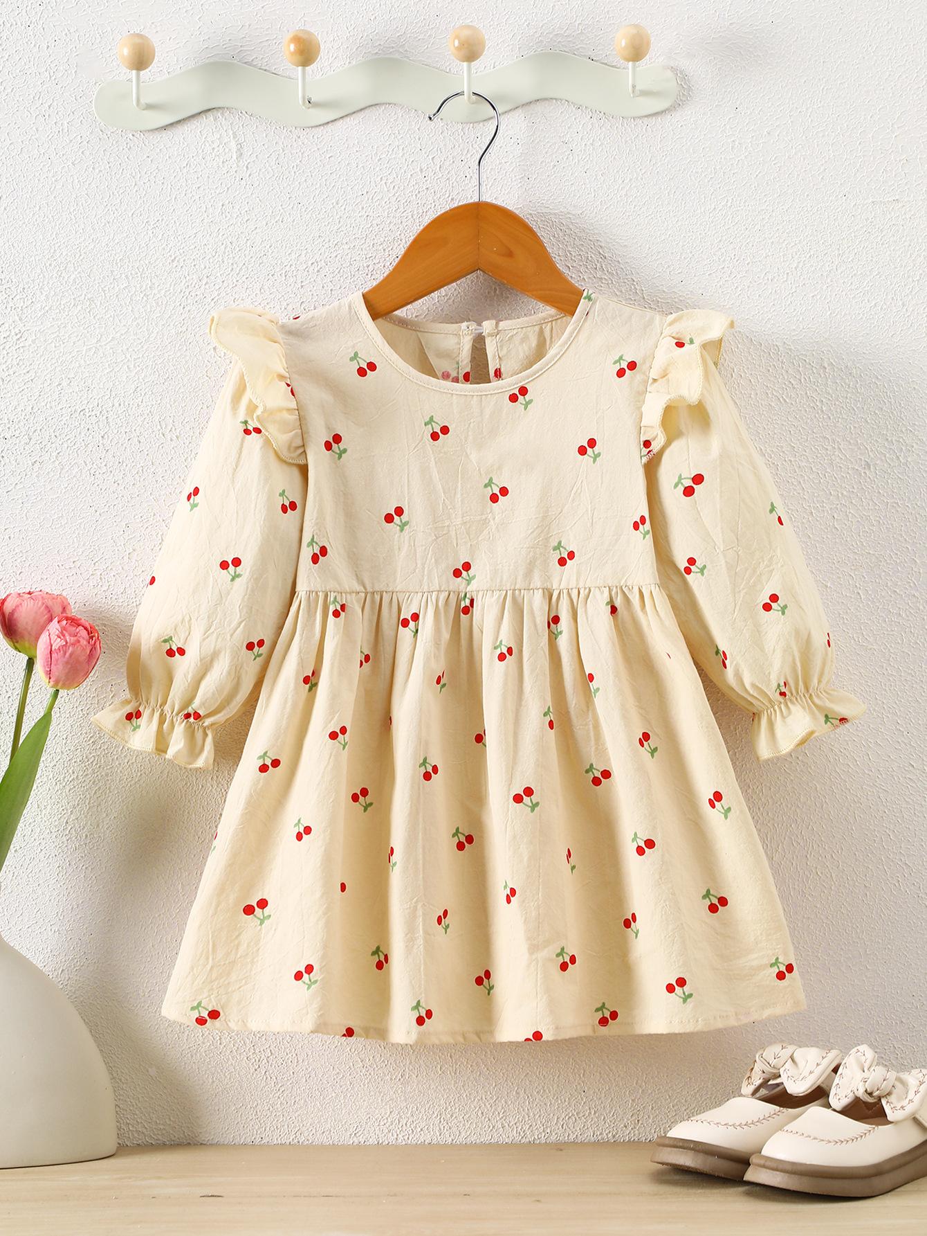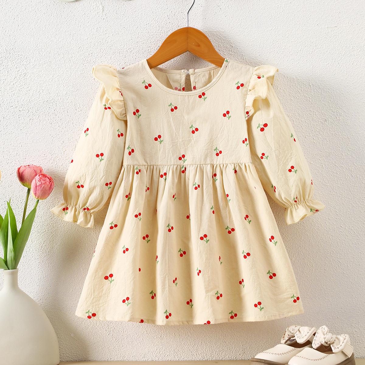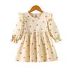 Vestido de Primavera e Outono para Meninas Pequenas e Médias Moda Infantil Fresco Estilo Pastoral Vestido de Manga Comprida Vestido de Bebê Comércio Exterior Transfronteiriço