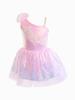 Vestido de Balé Infantil Vestido de Princesa de Um Ombro para Meninas Saia Tutu de Alças Finas Fantasia Infantil para Apresentação de Balé Saia de Dança para Apresentação