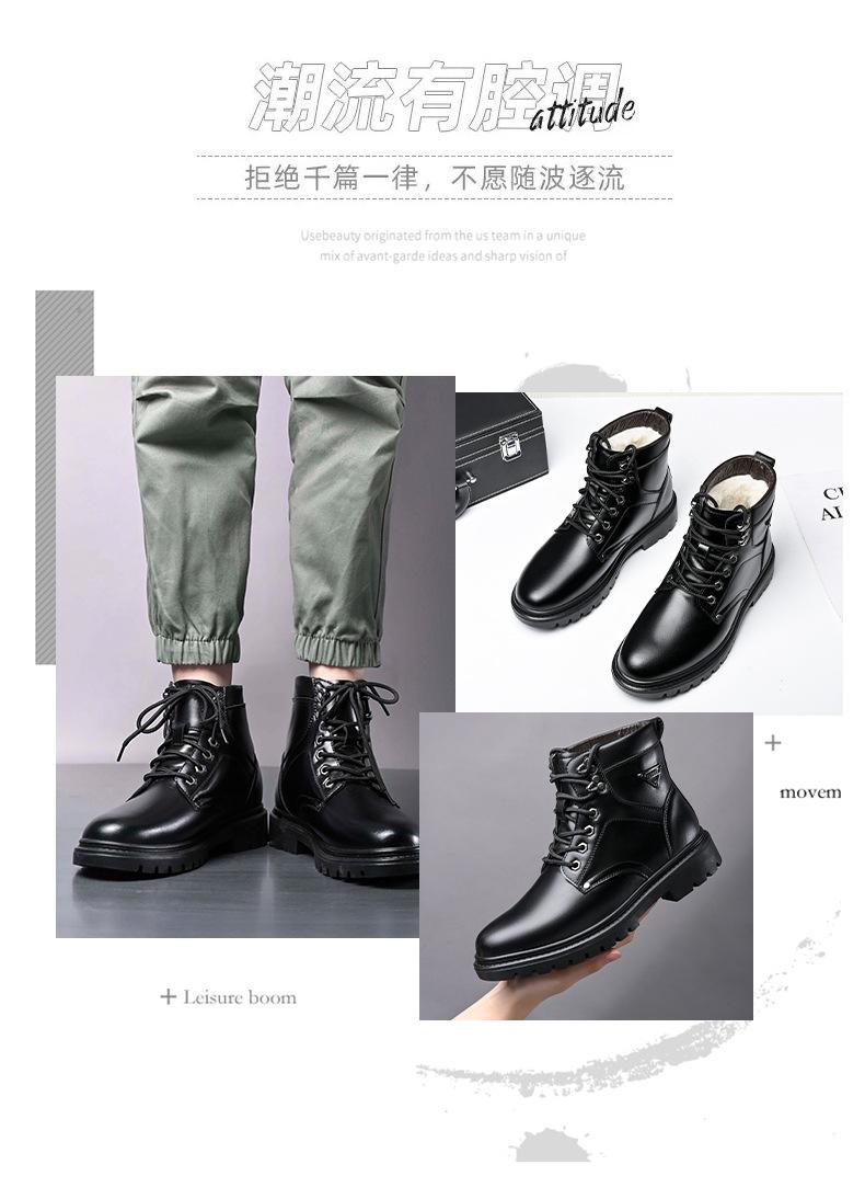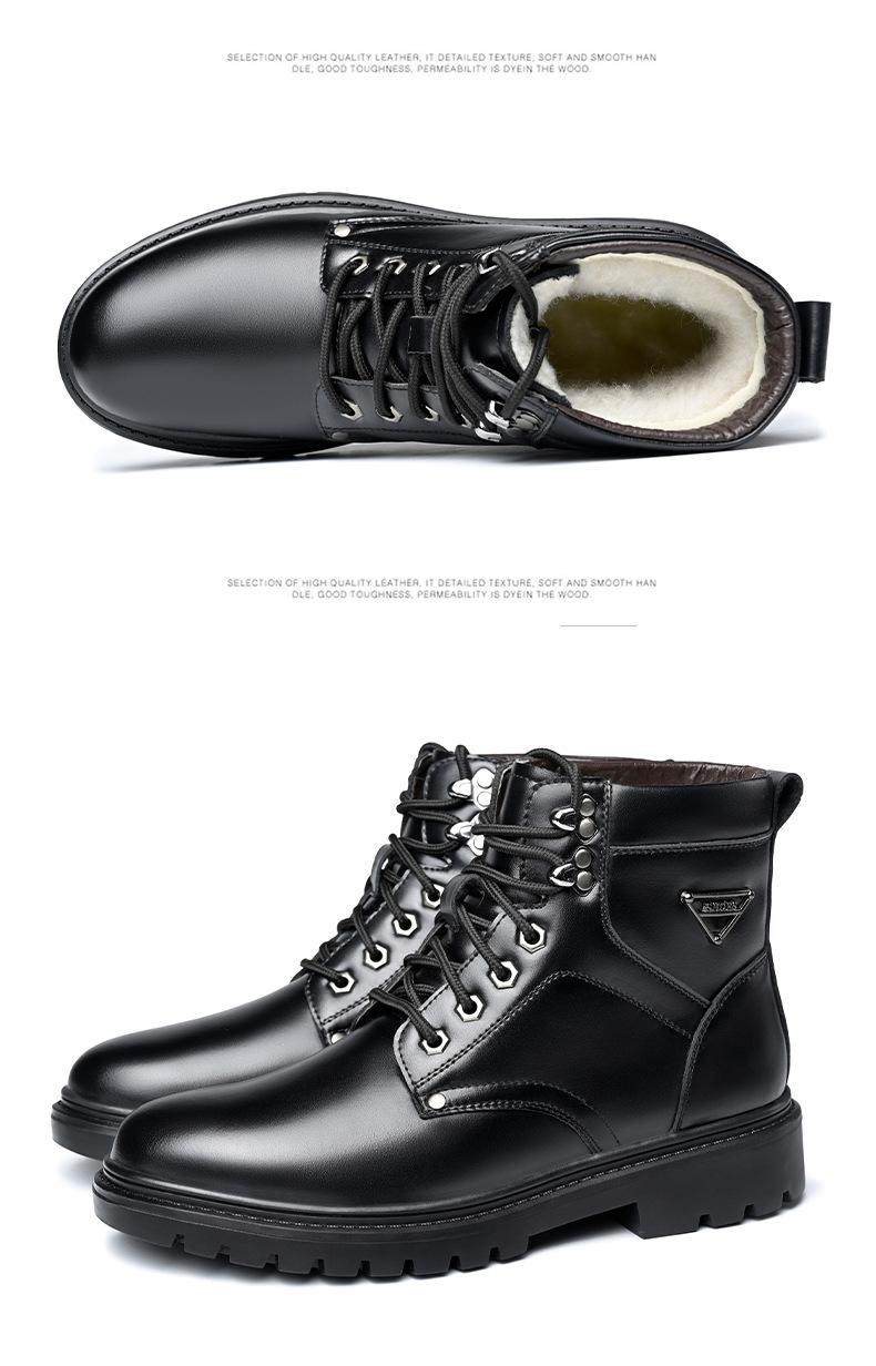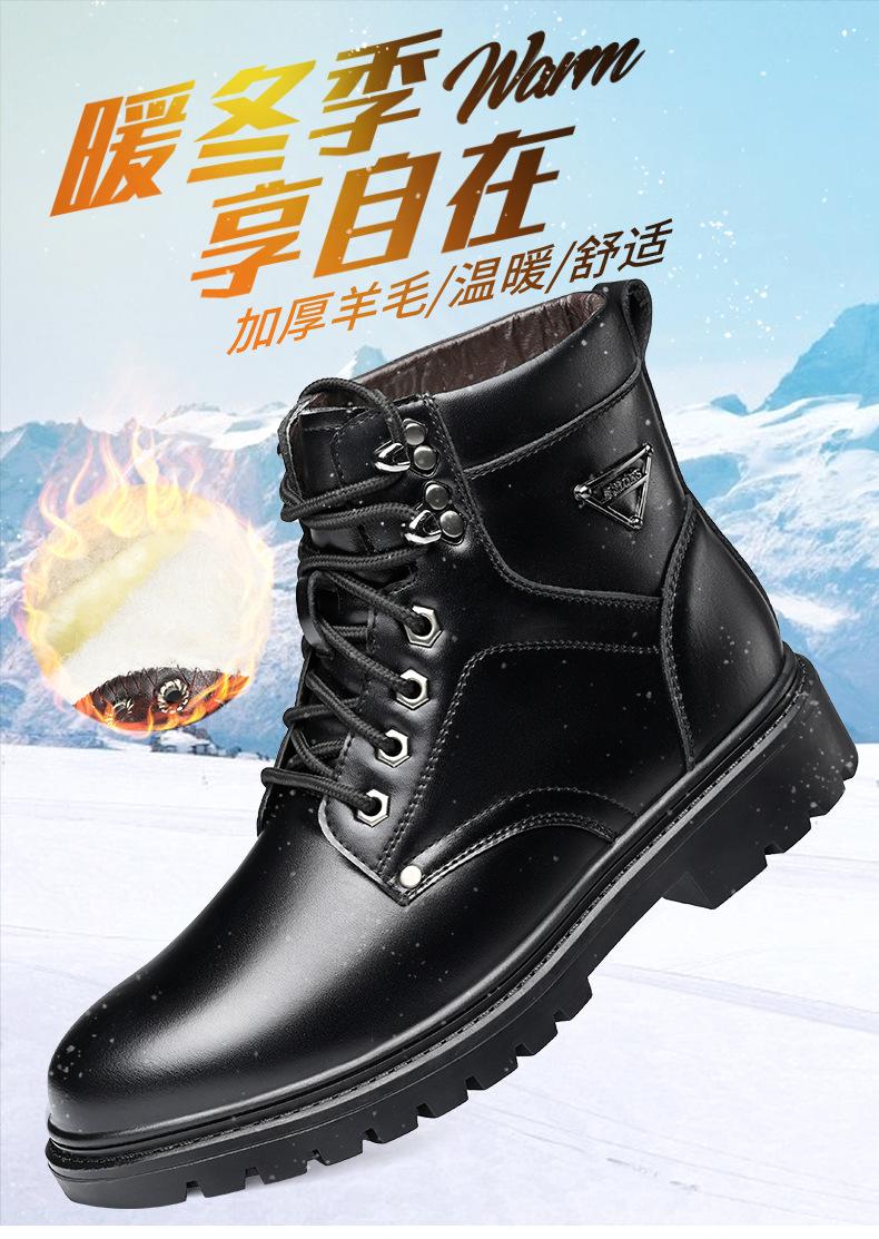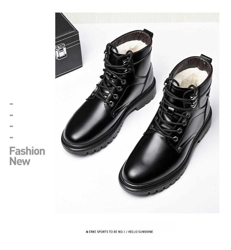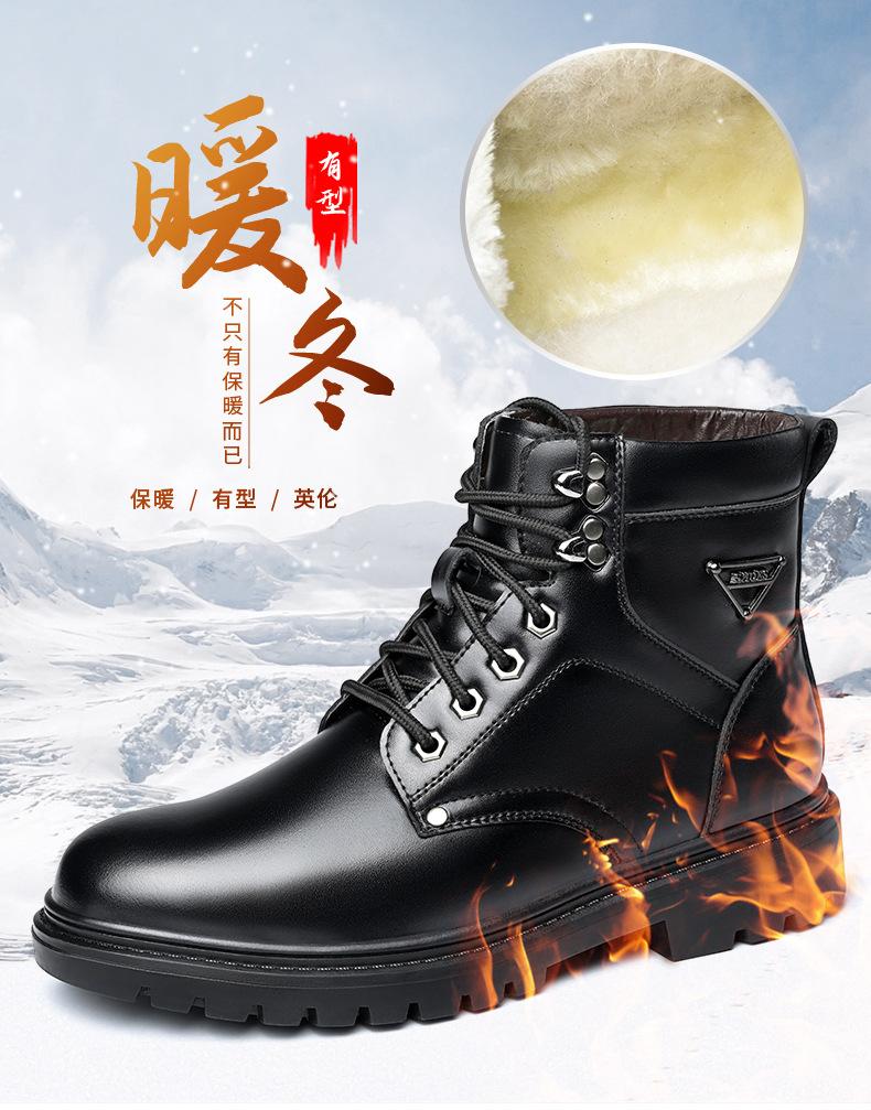 Compre Botas Martin masculinas couro genuíno inverno quente mais veludo sapatos de algodão cano alto botas de couro botas de trabalho ao ar livre botas casuais antiderrapantes no atacado no Joom.pro