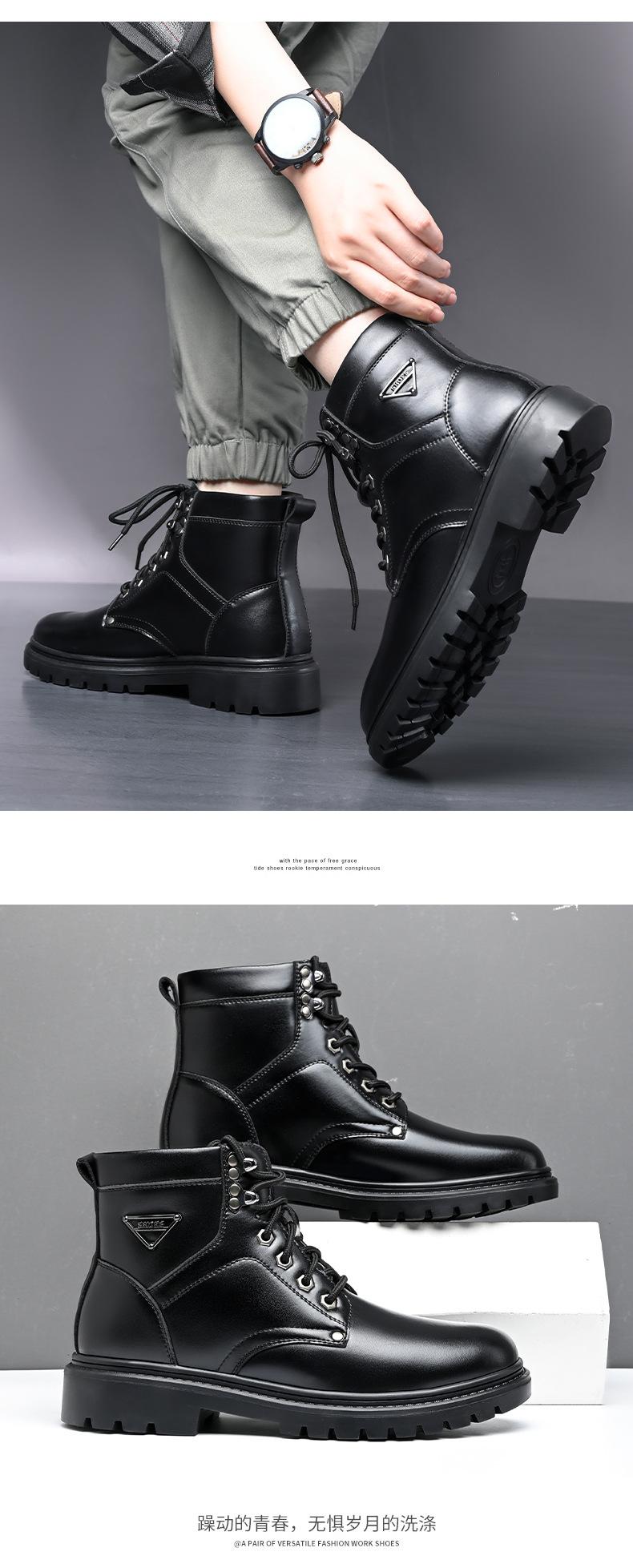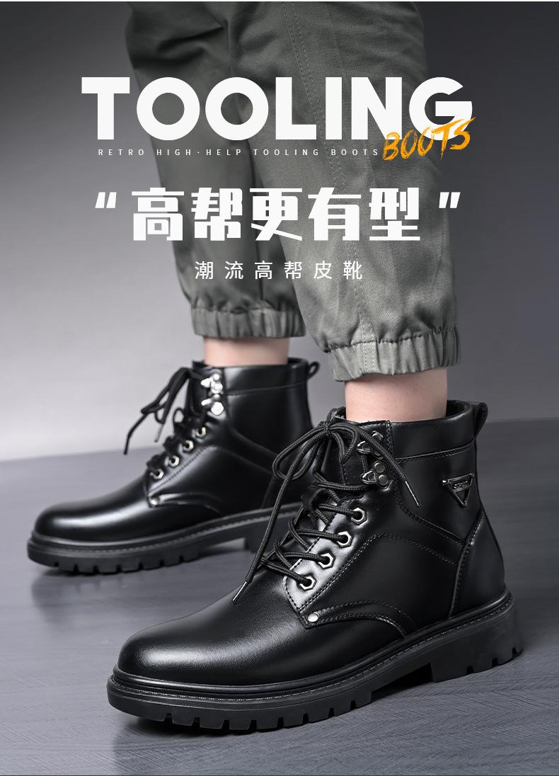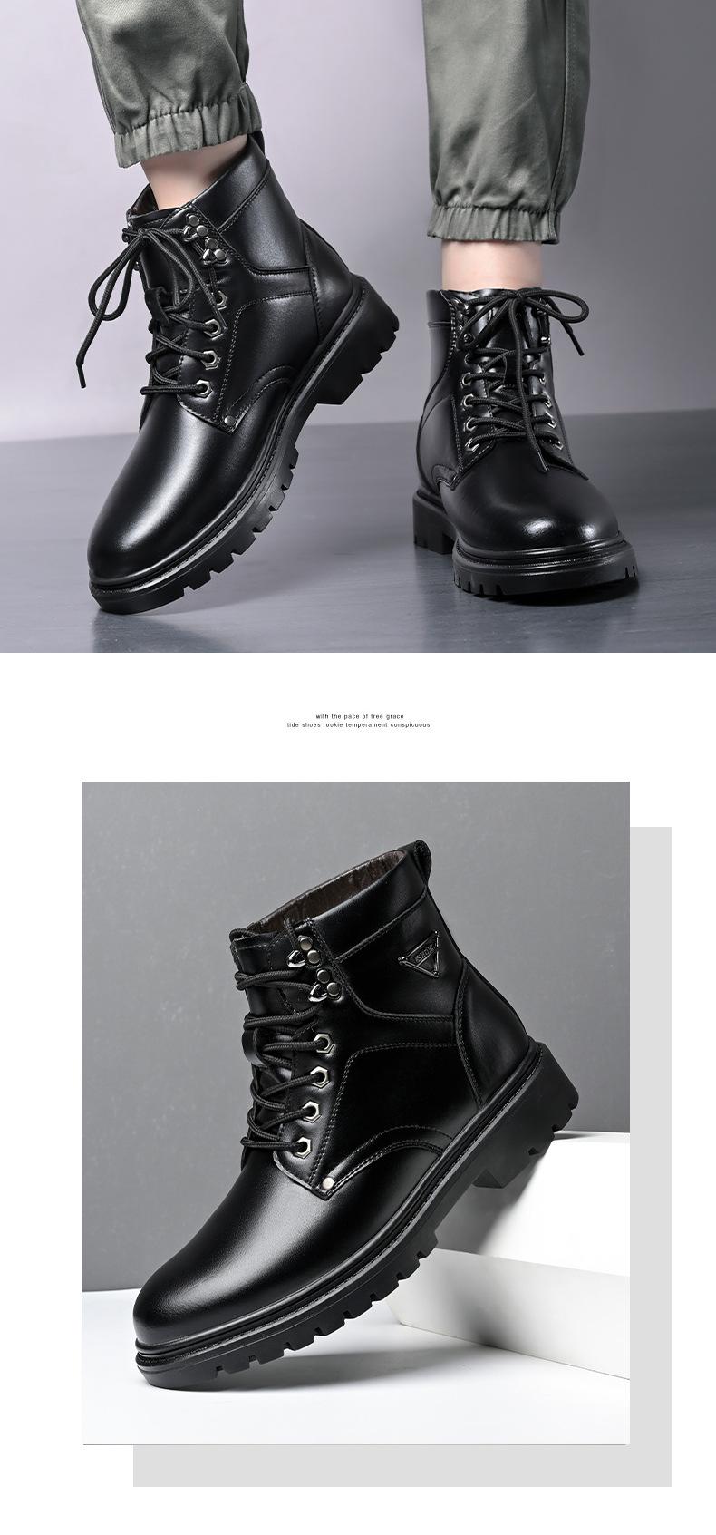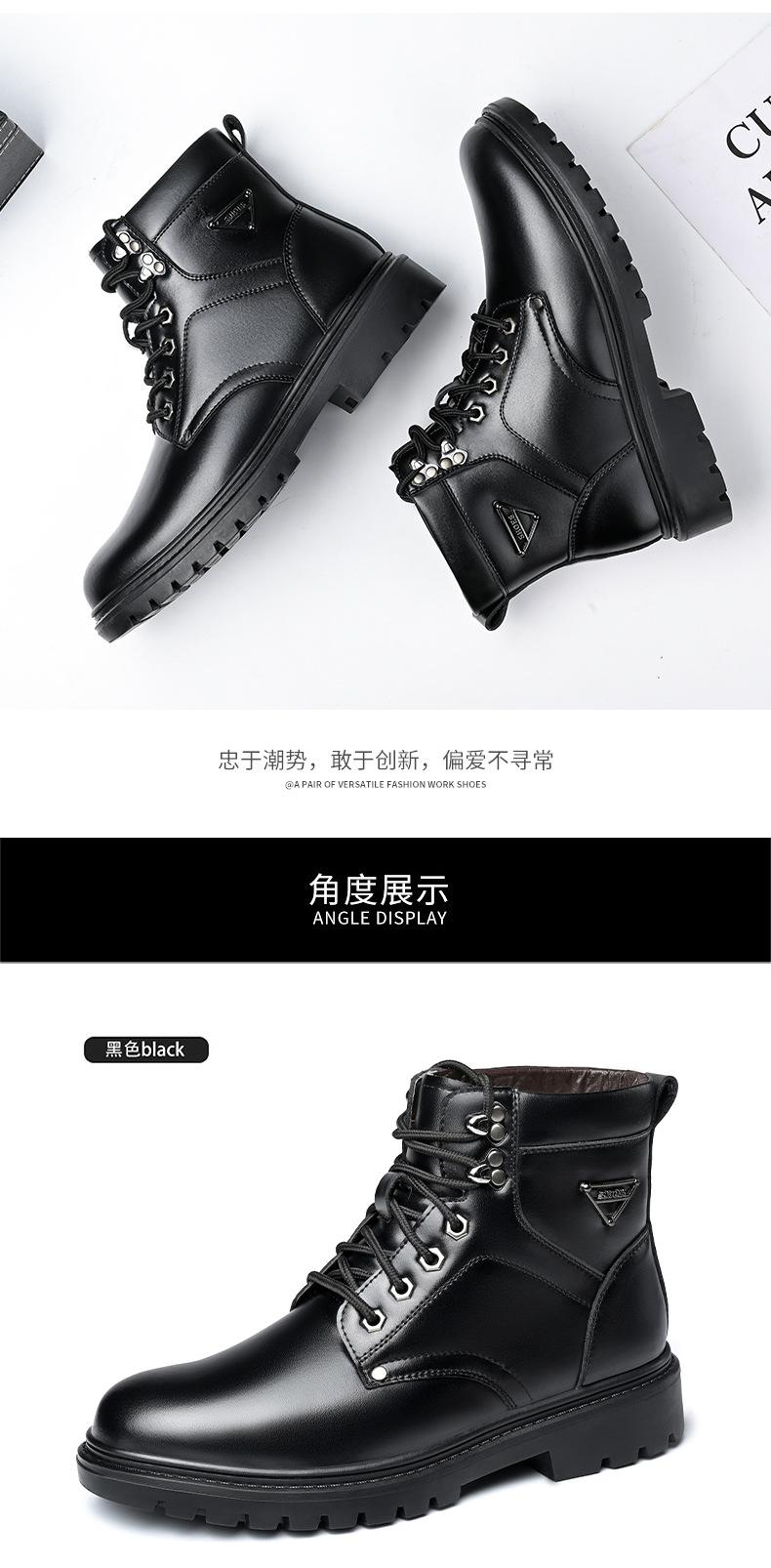 Compre Botas Martin masculinas couro genuíno inverno quente mais veludo sapatos de algodão cano alto botas de couro botas de trabalho ao ar livre botas casuais antiderrapantes no atacado no Joom.pro