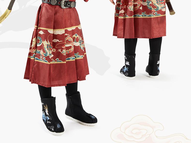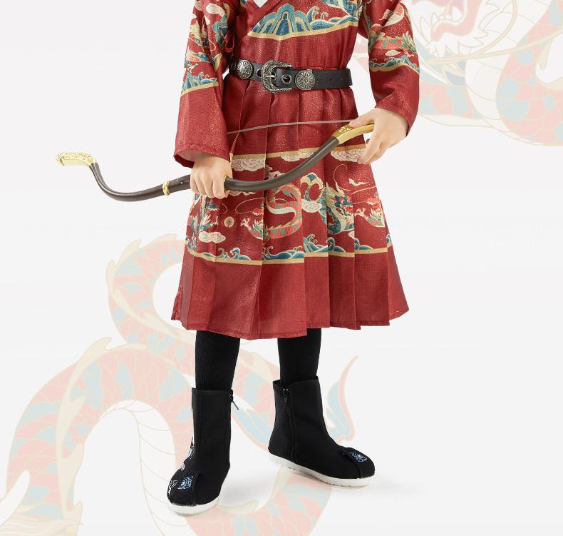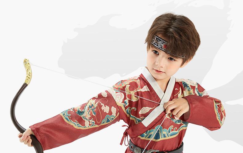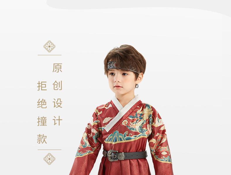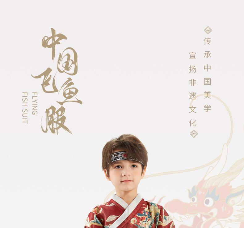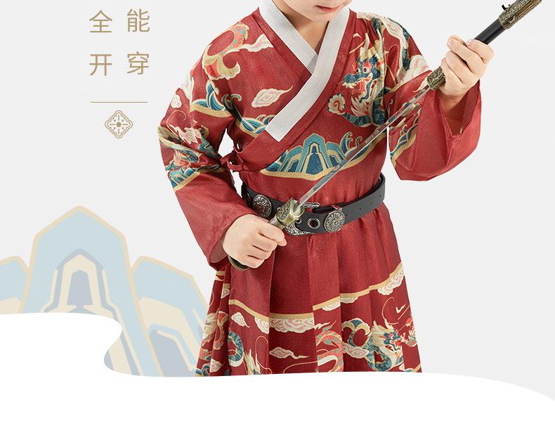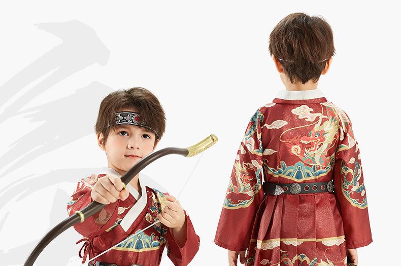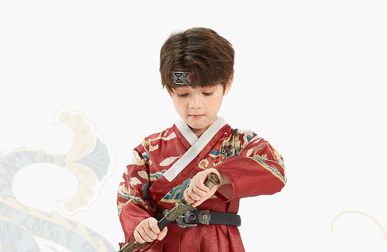 Hanfu para Meninos Estilo Primavera e Outono Crianças Grandes Vermelho Fantasia Festiva de Apresentação Roupas de Outono Traje Tang para Bebê Estilo Chinês Peixe Voador