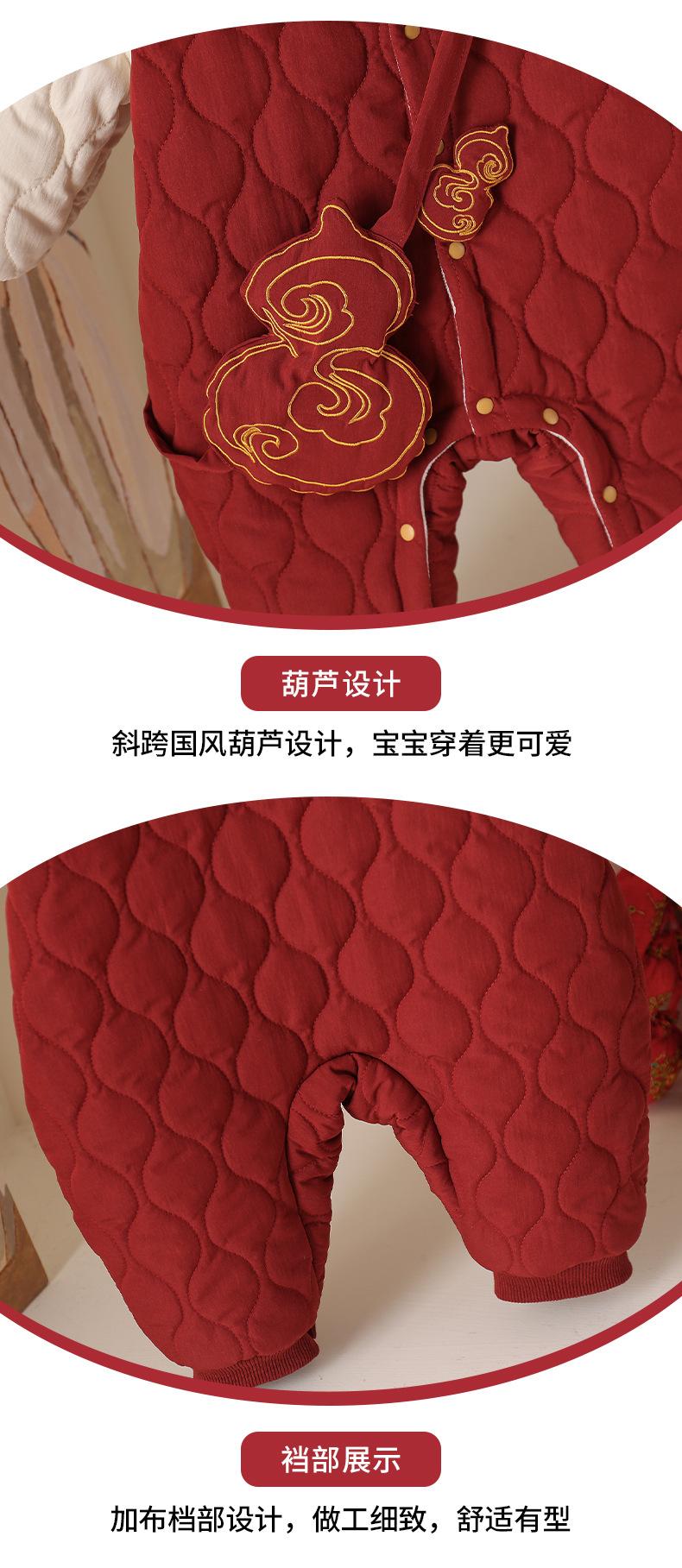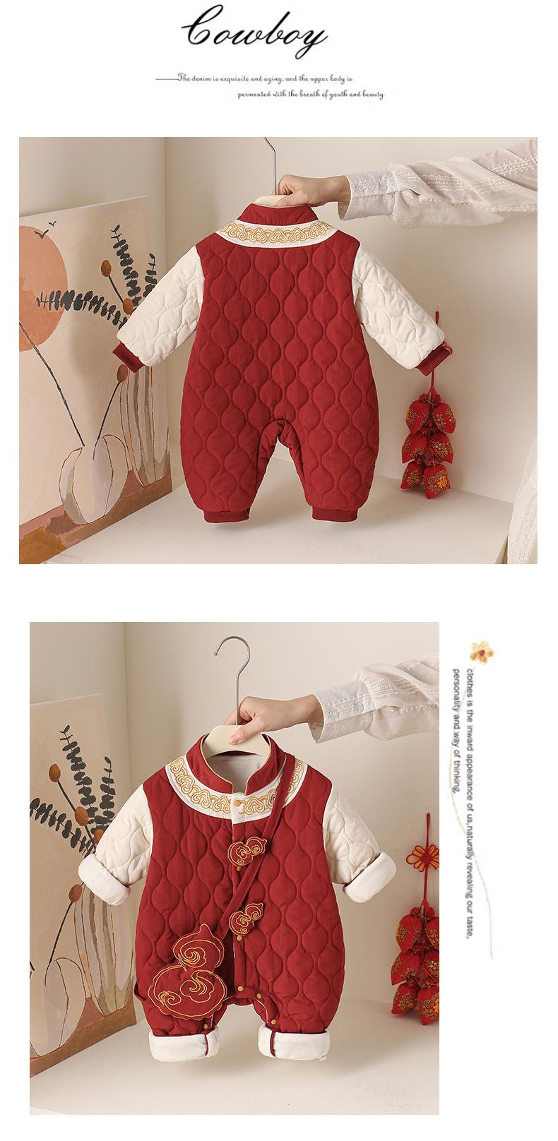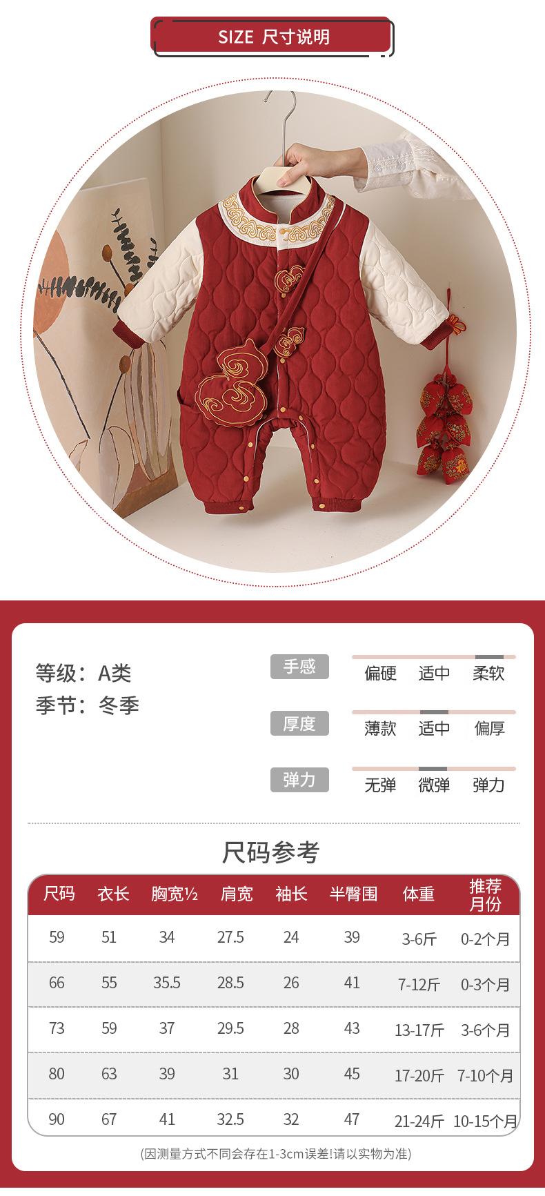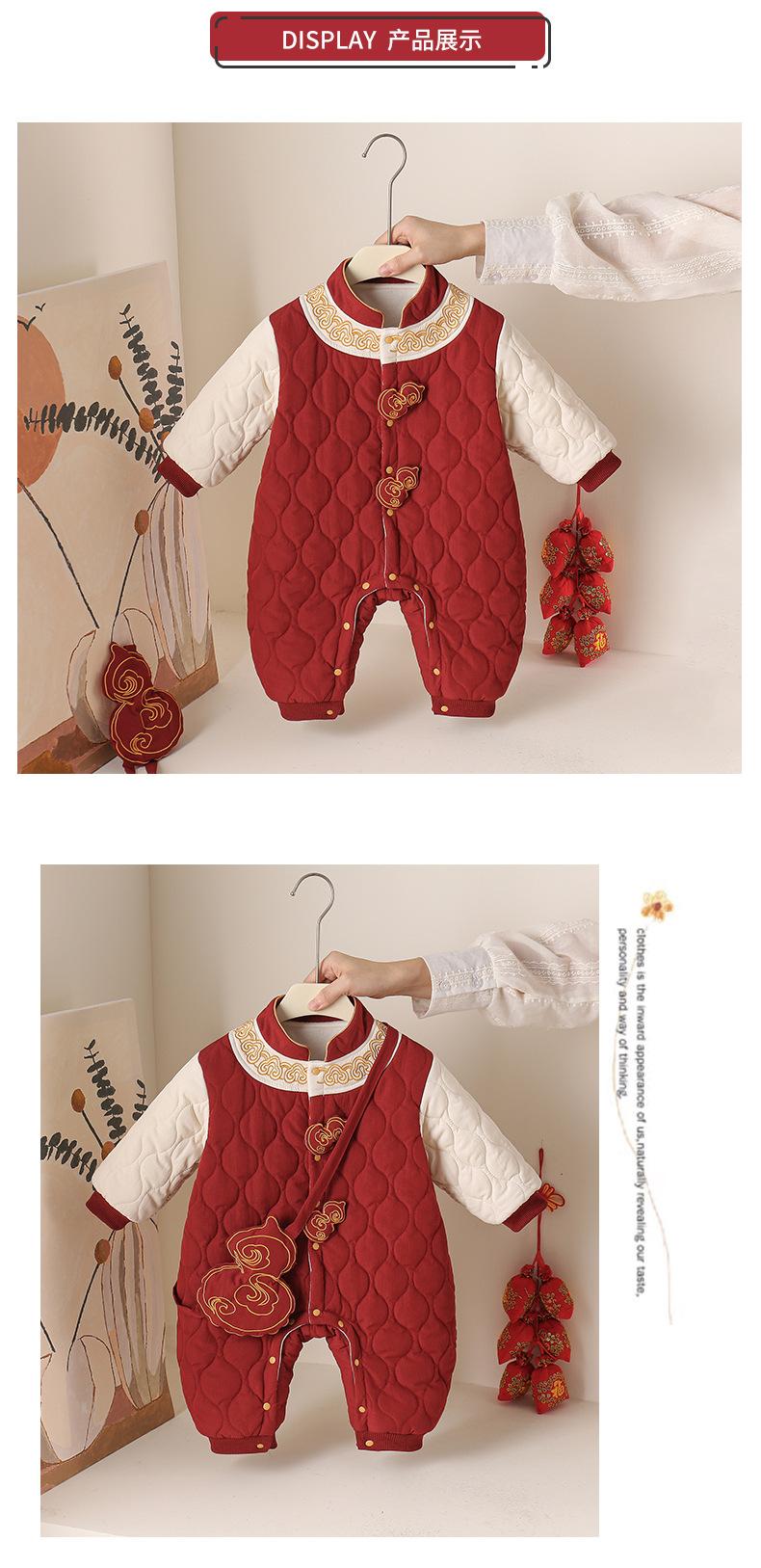 Macacão Acolchoado de Outono e Inverno para Recém-Nascido Roupa de Ano Novo em Lã de Estilo Chinês Novo para Cem Dias/Lua Cheia do Bebê (com saco)