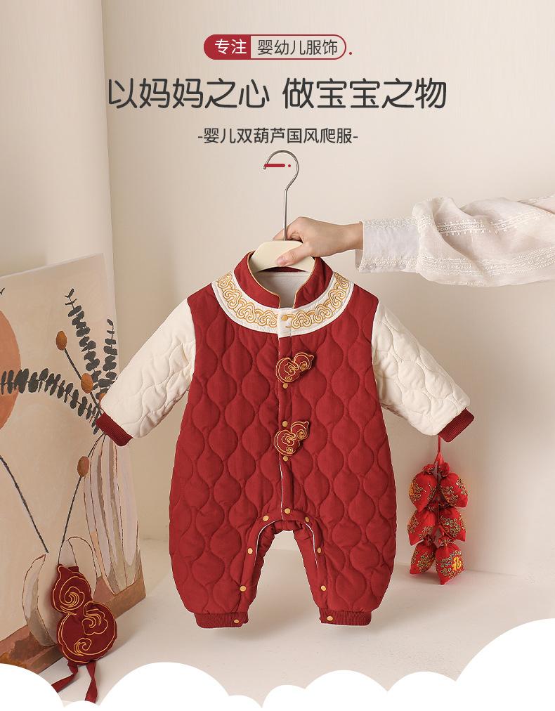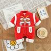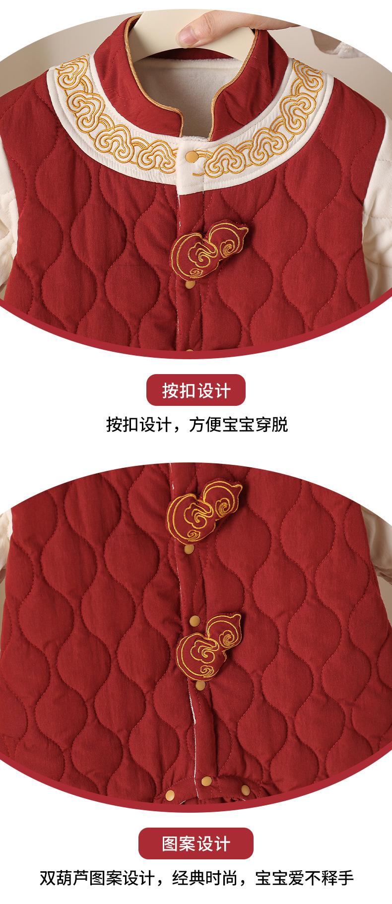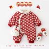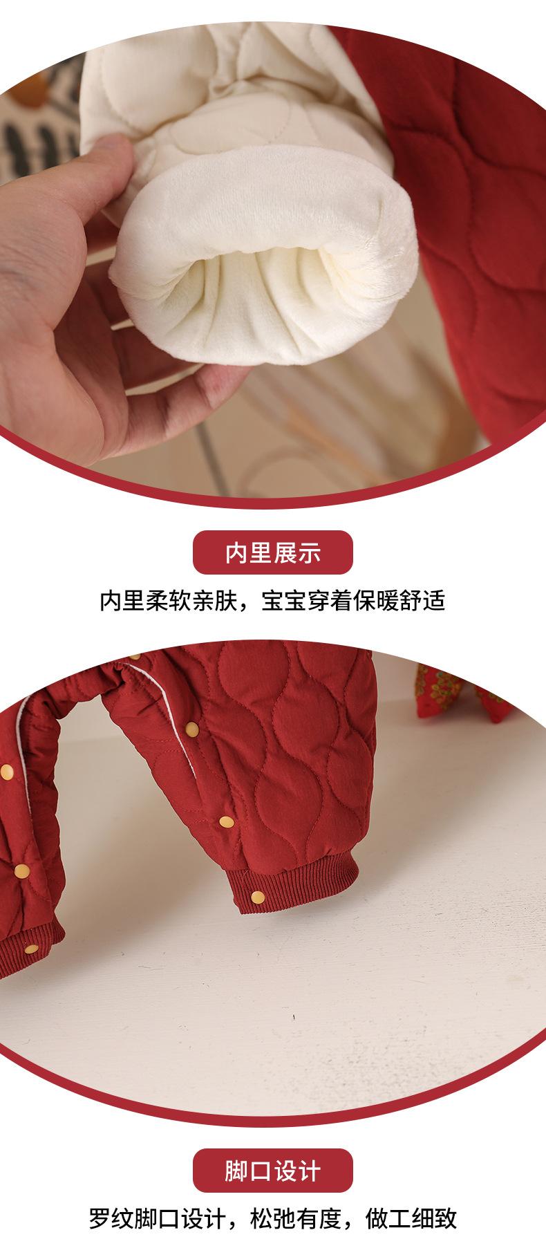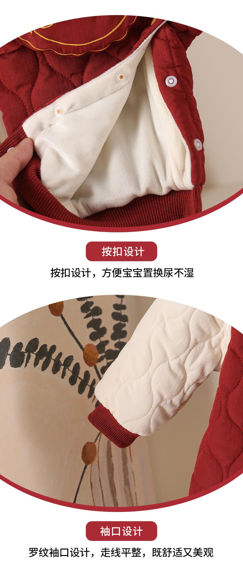 Macacão Acolchoado de Outono e Inverno para Recém-Nascido Roupa de Ano Novo em Lã de Estilo Chinês Novo para Cem Dias/Lua Cheia do Bebê (com saco)