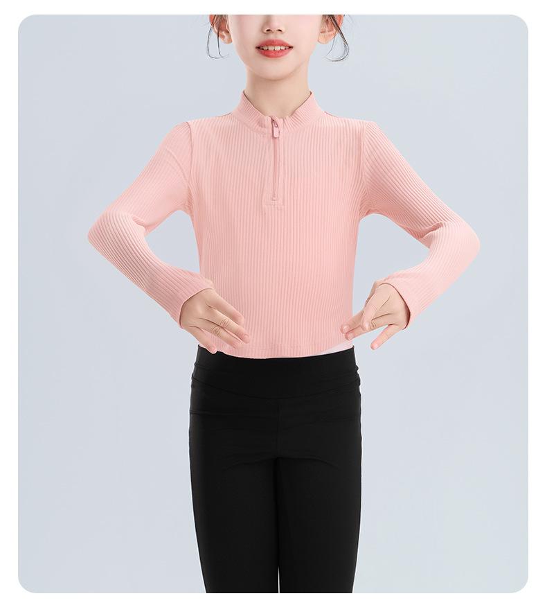 Roupa de Dança Infantil Outono Top Gola Alta Meninas Roupa de Prática de Dança Dança Chinesa Manga Longa Treino de Balé