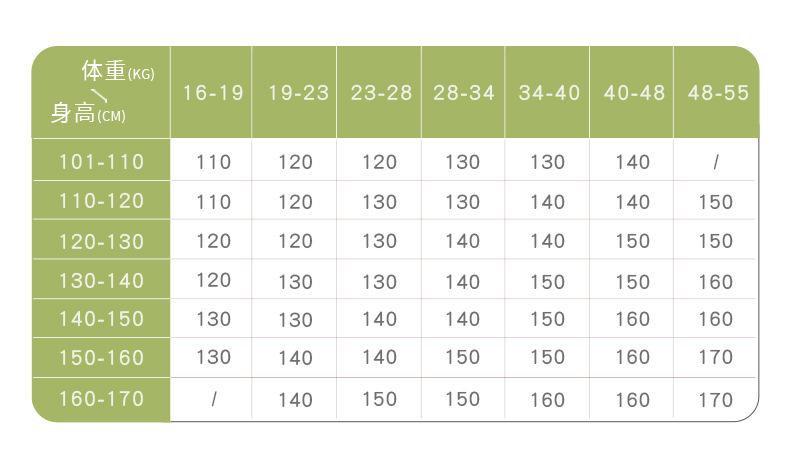 110 size (101-110cm), 120 yards (110-120cm), 130 yards (120-130cm), 140 yards (130-140cm), 150 yards (140-150c...