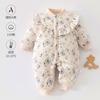 Roupinhas de Bebê Início de Outono Quentes Macacão de Renda para Bebê Menina Classe A Macacão para Recém-Nascido Roupa de Rastejar Inverno Espessado