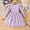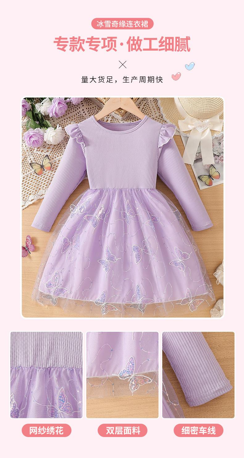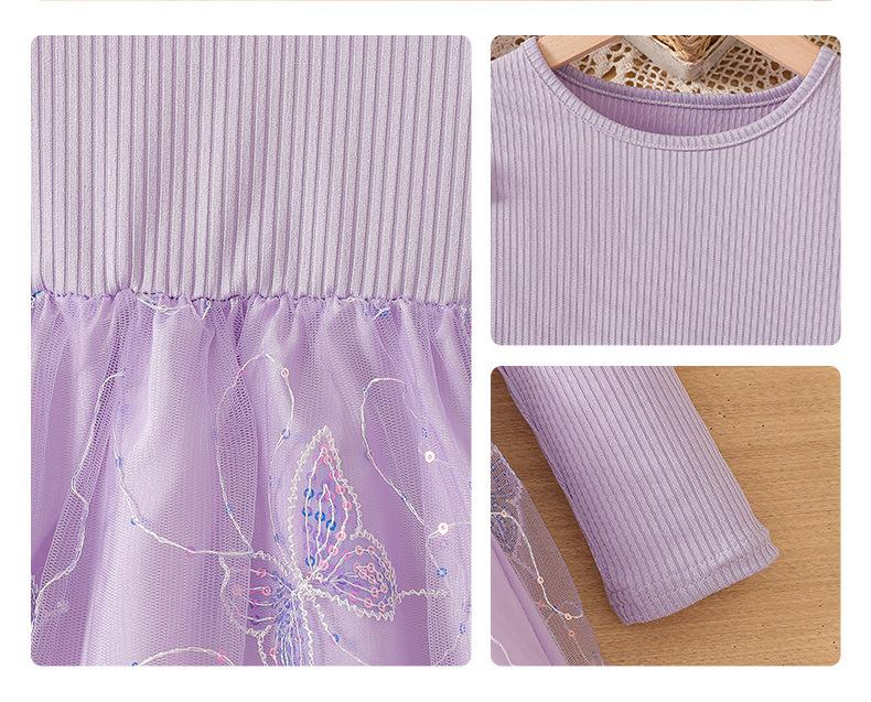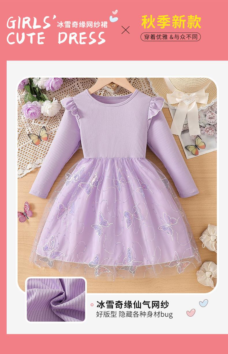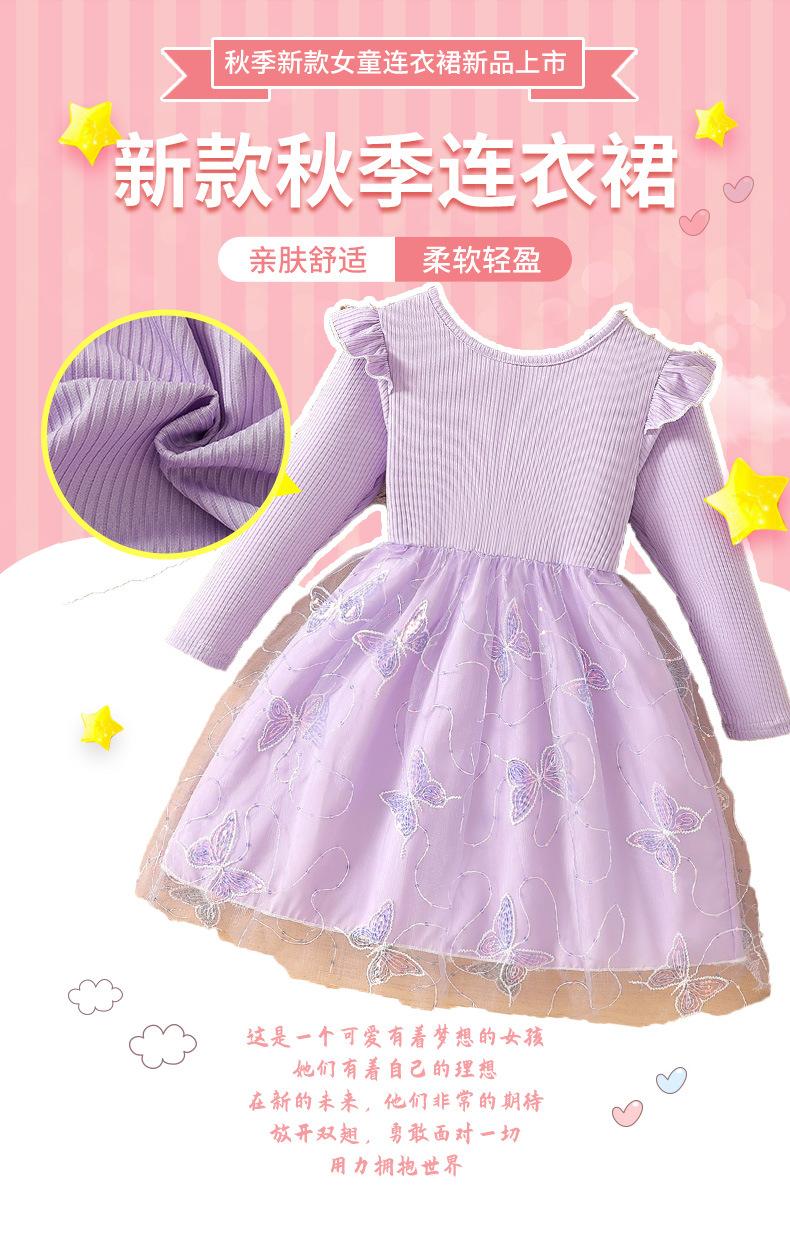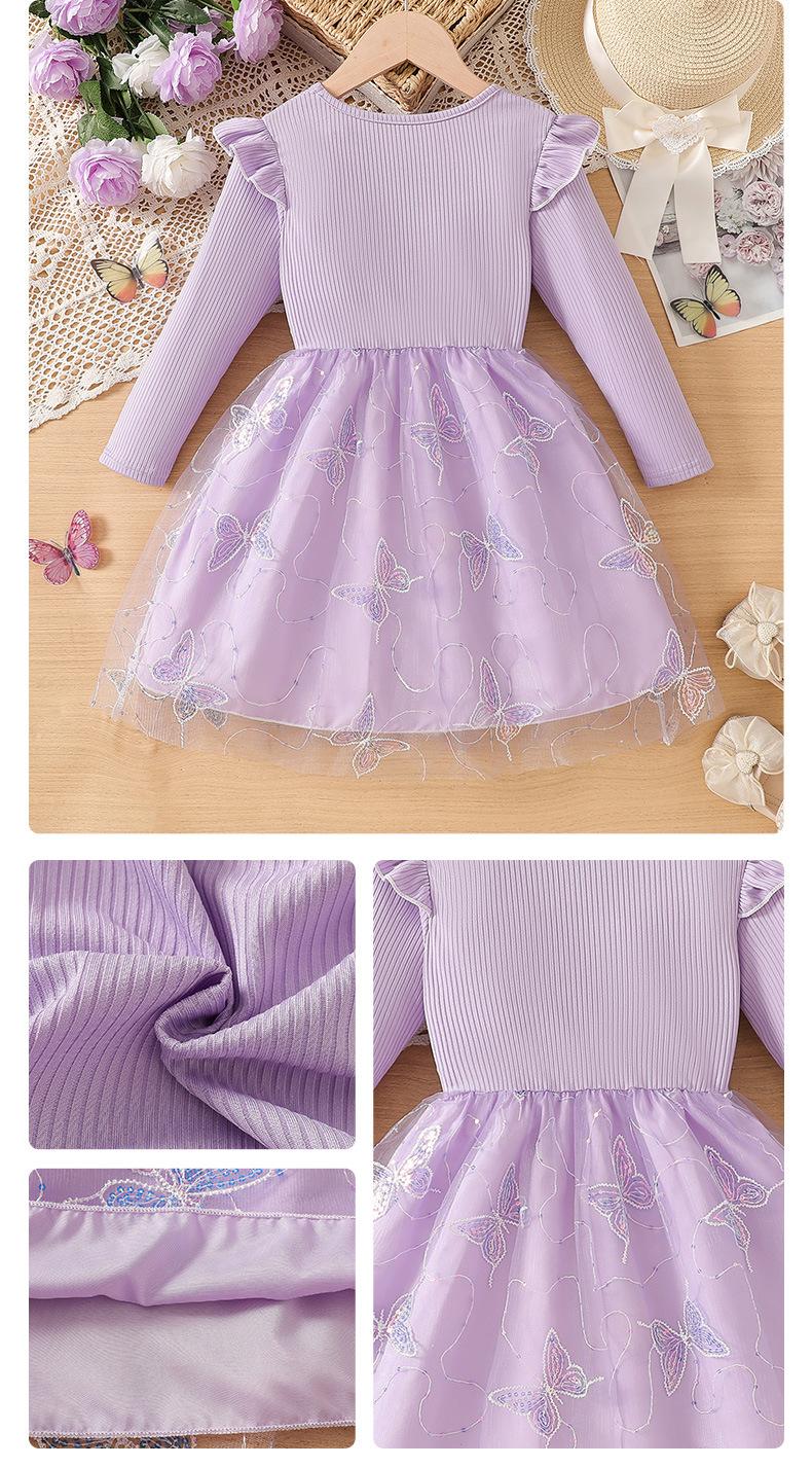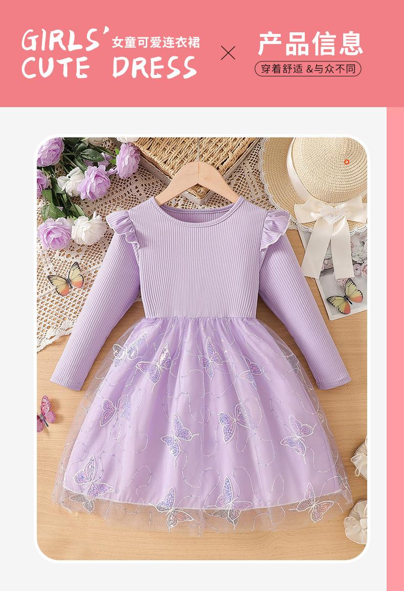 Comércio Exterior Transfronteiriço INS Vestido de Princesa de Primavera e Outono para Meninas Babados Infantil Manga Longa Patchwork Vestido de Malha Borboleta