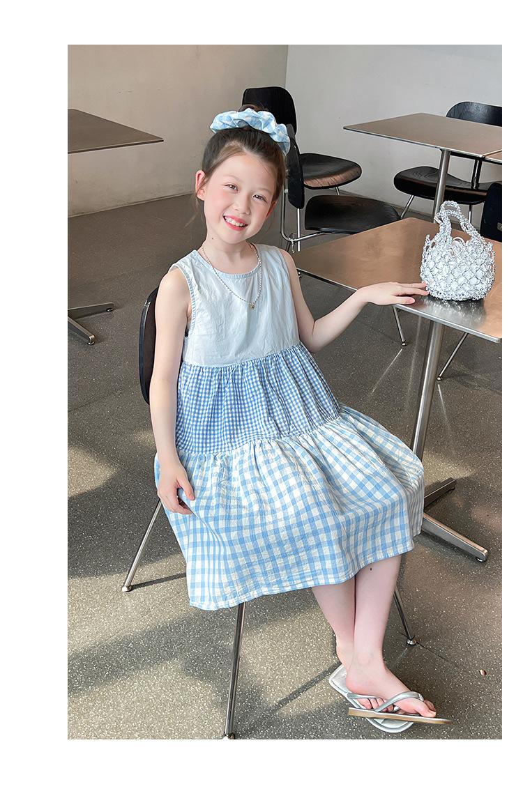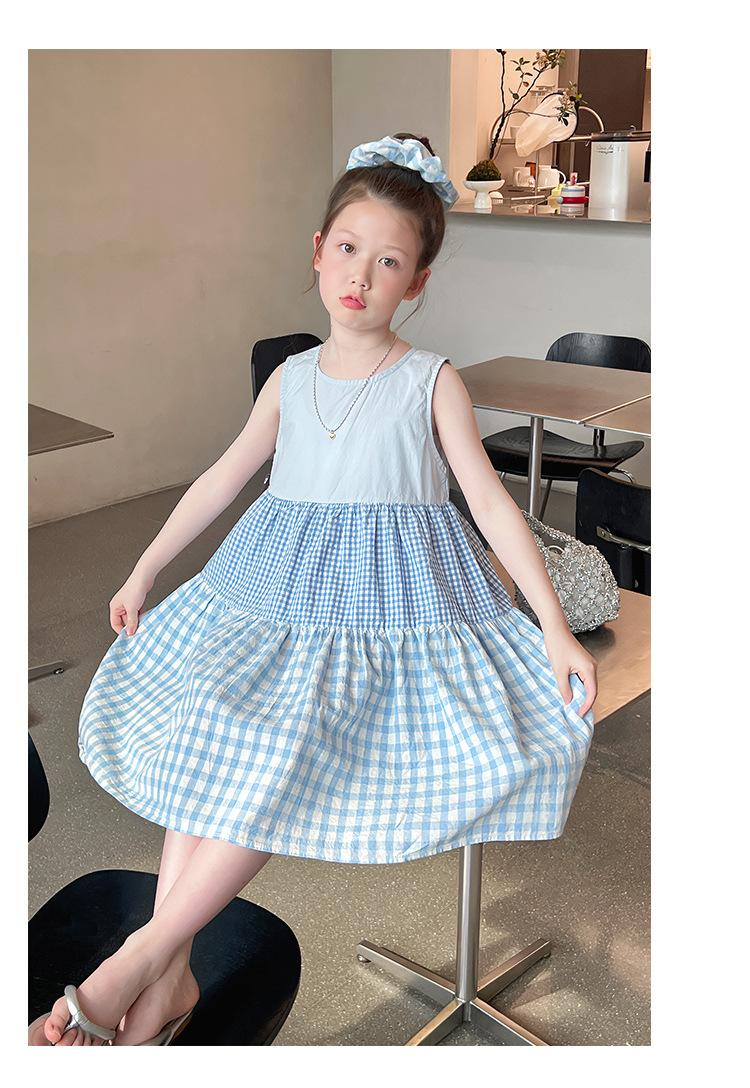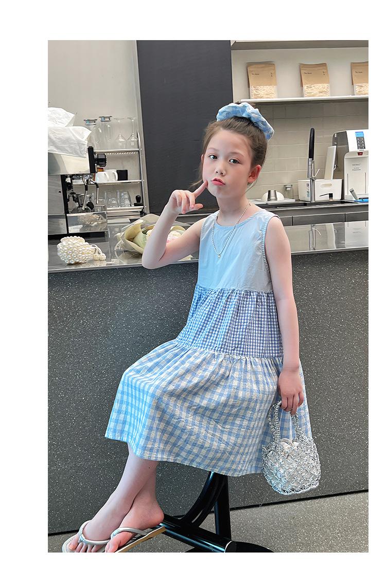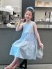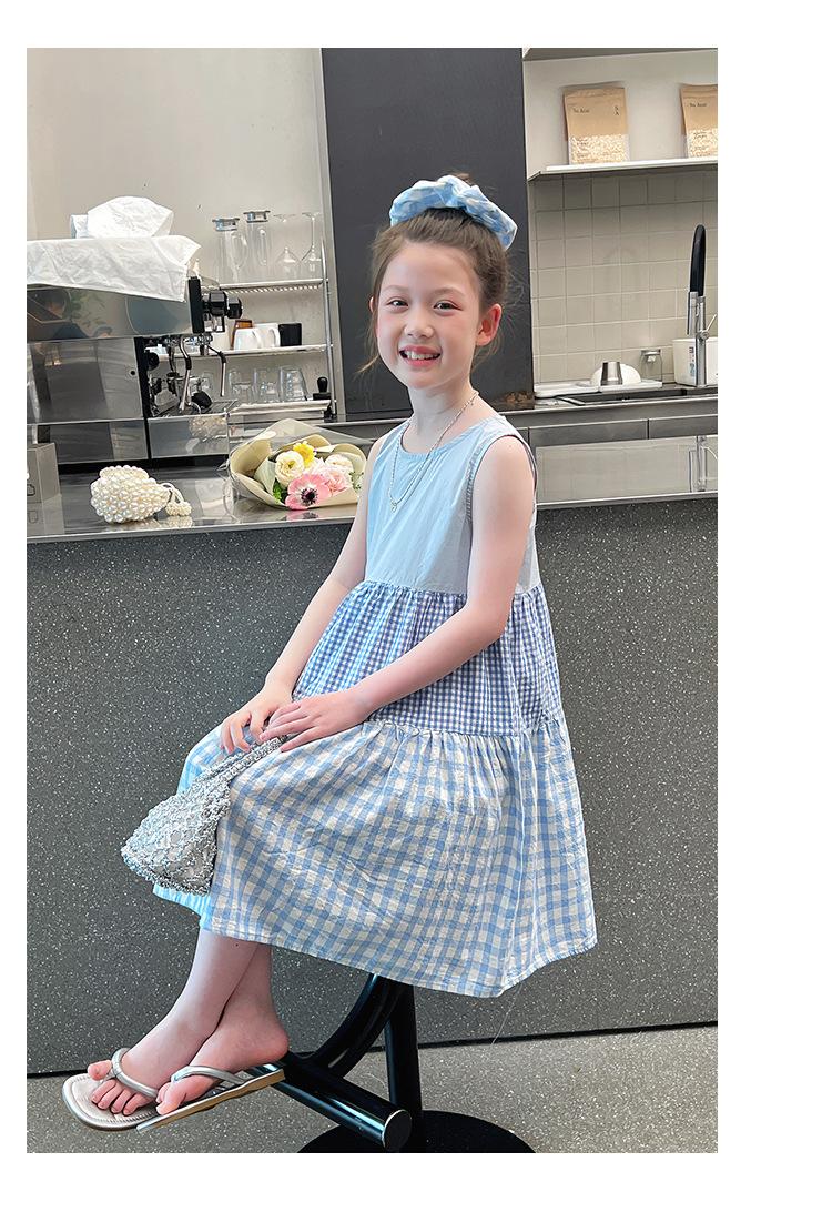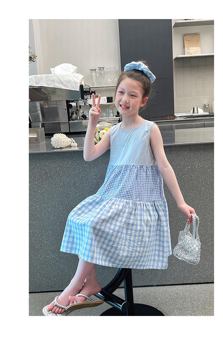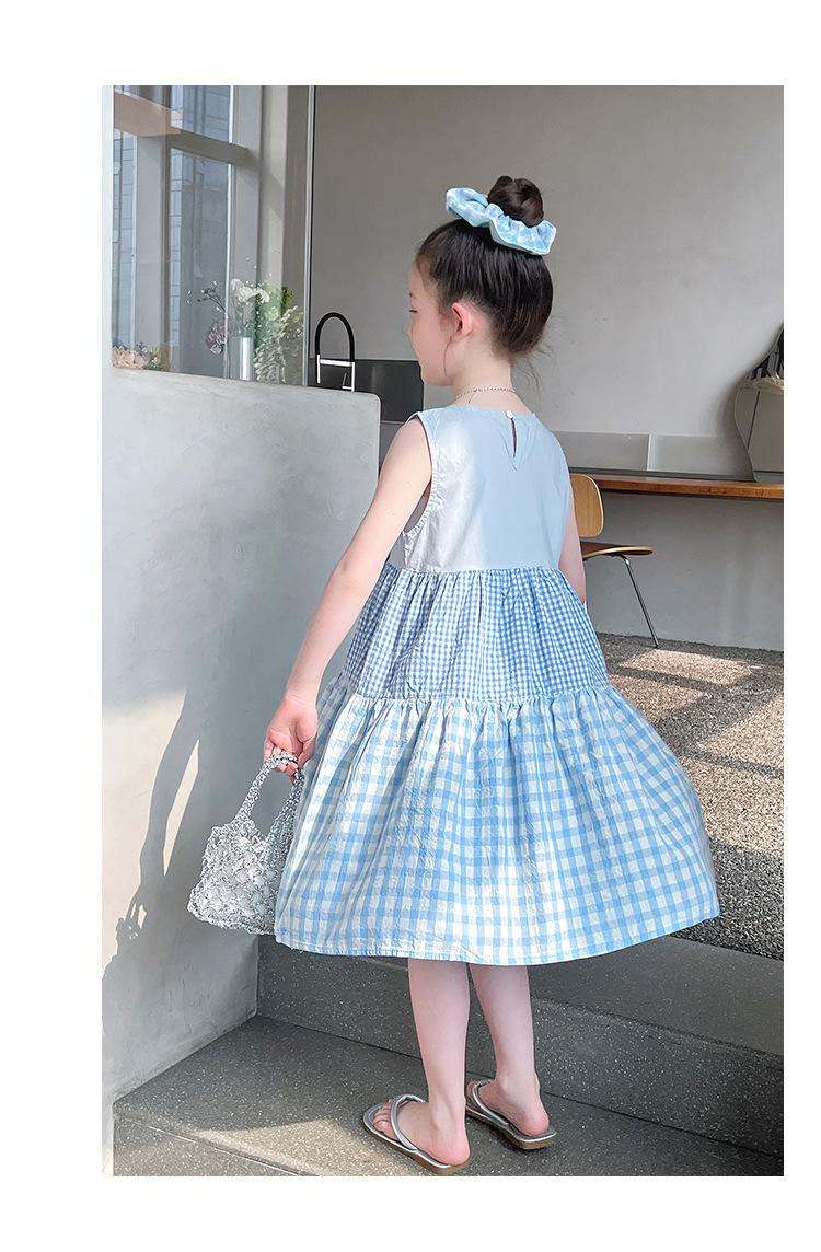 Vestido Longo Xadrez com Recortes para Meninas Estilo Infantil Vestido de Princesa Vestido Infantil para Crianças Grandes Verão 2025 Novo Estilo