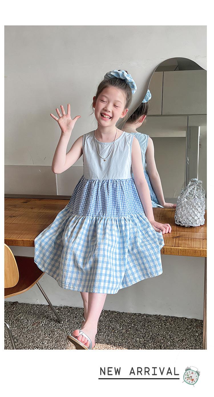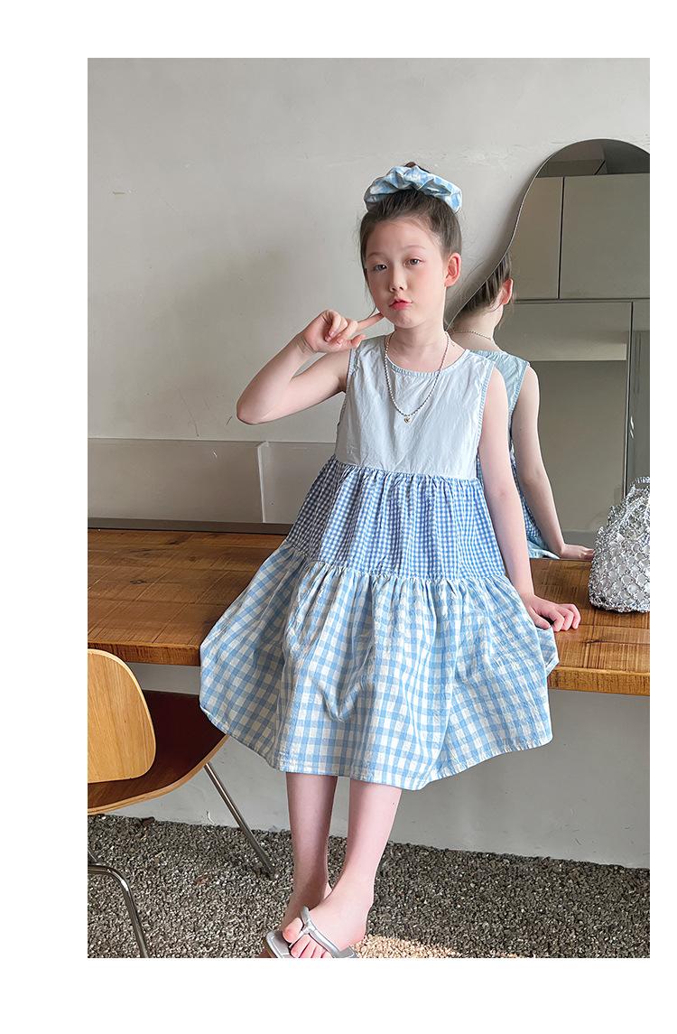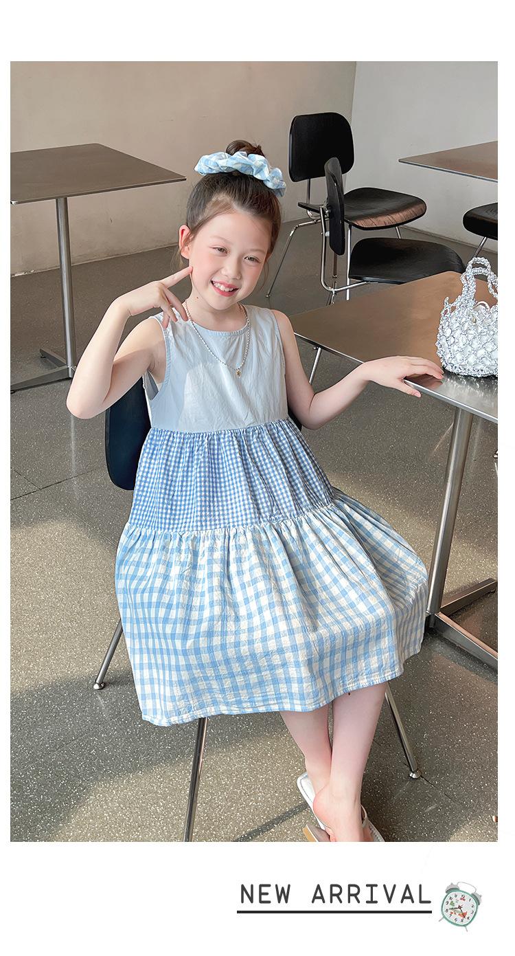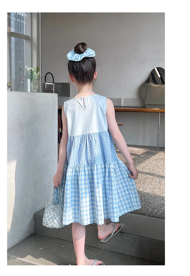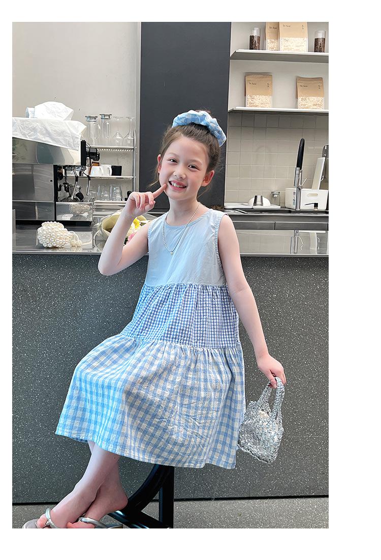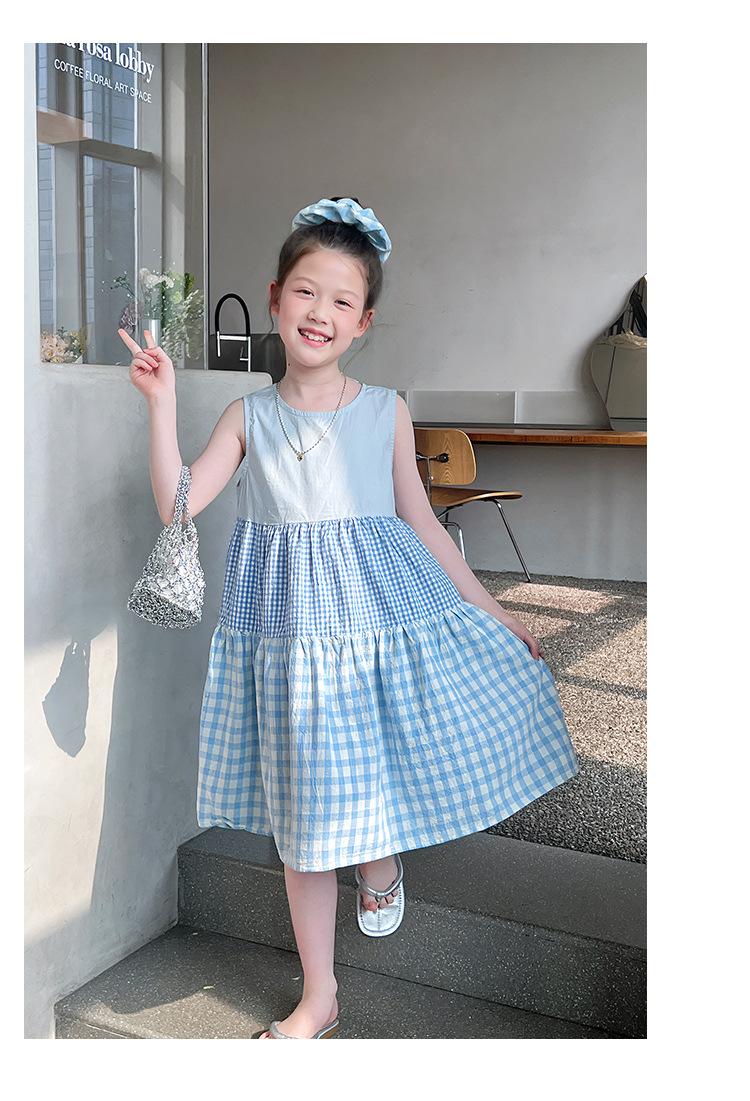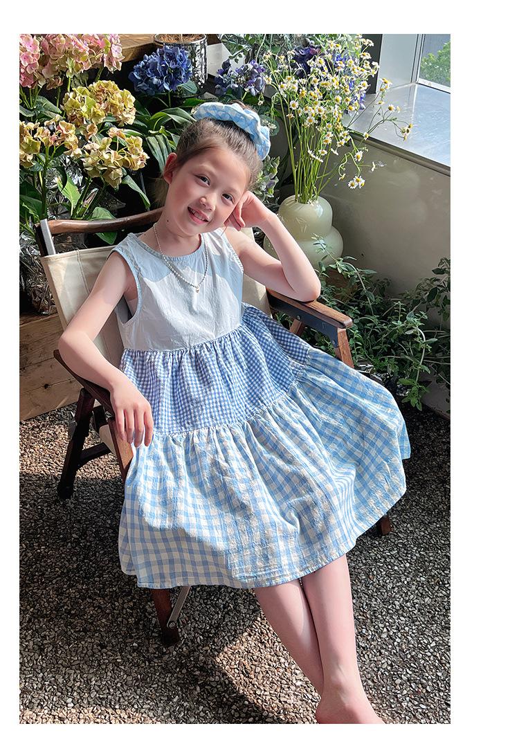 Vestido Longo Xadrez com Recortes para Meninas Estilo Infantil Vestido de Princesa Vestido Infantil para Crianças Grandes Verão 2025 Novo Estilo