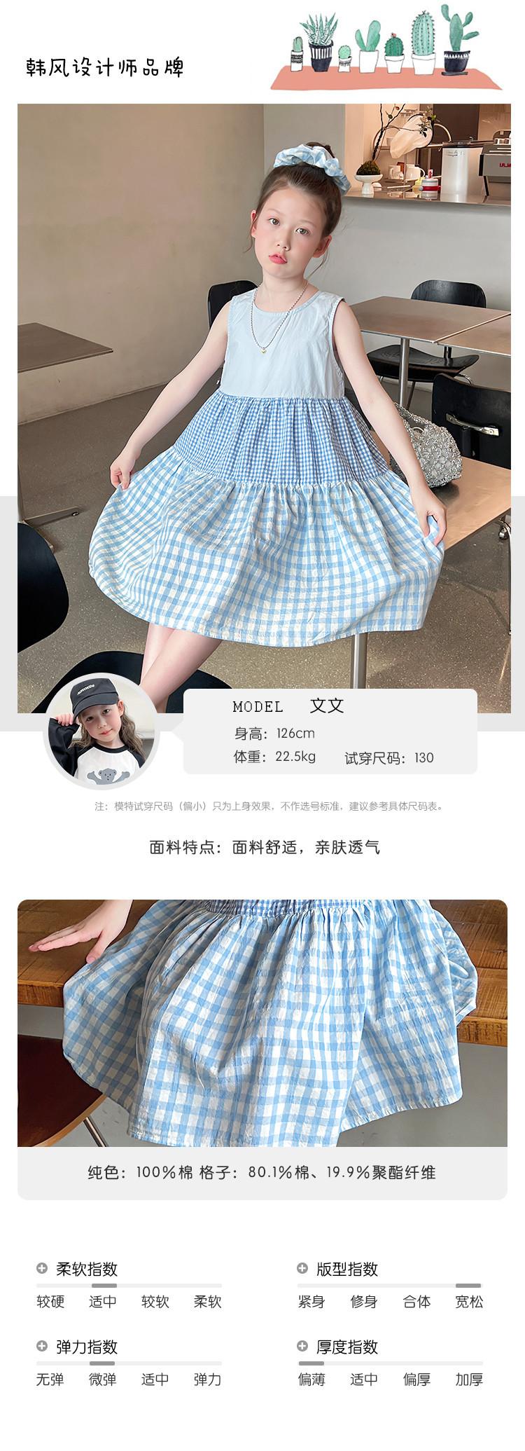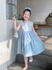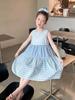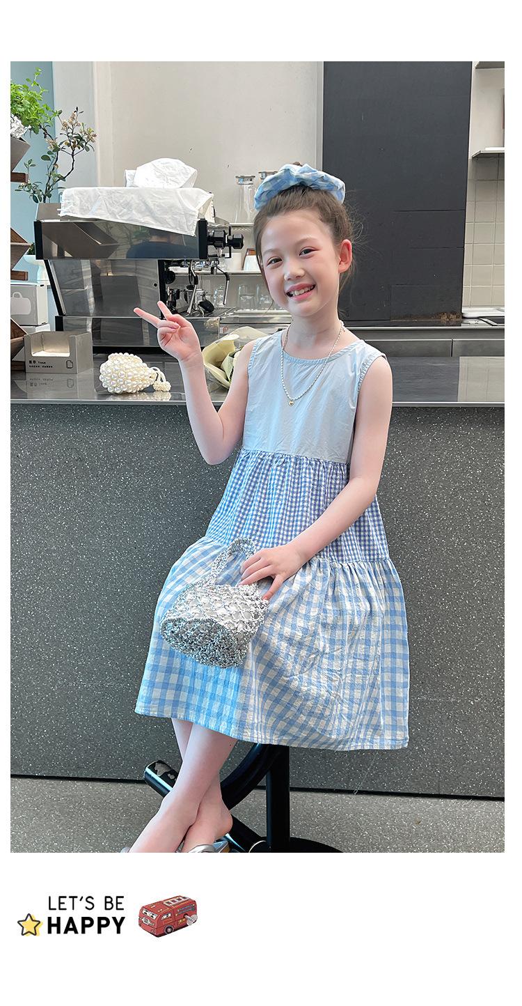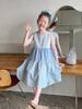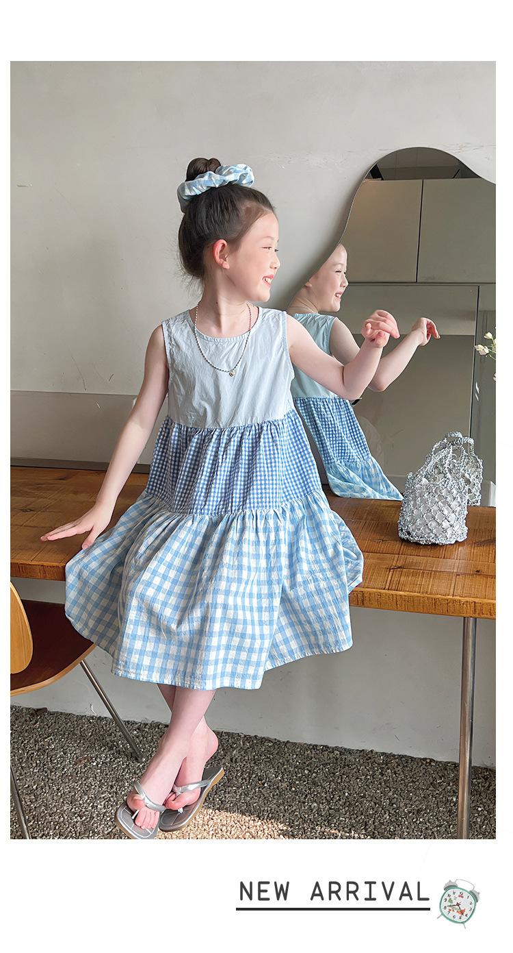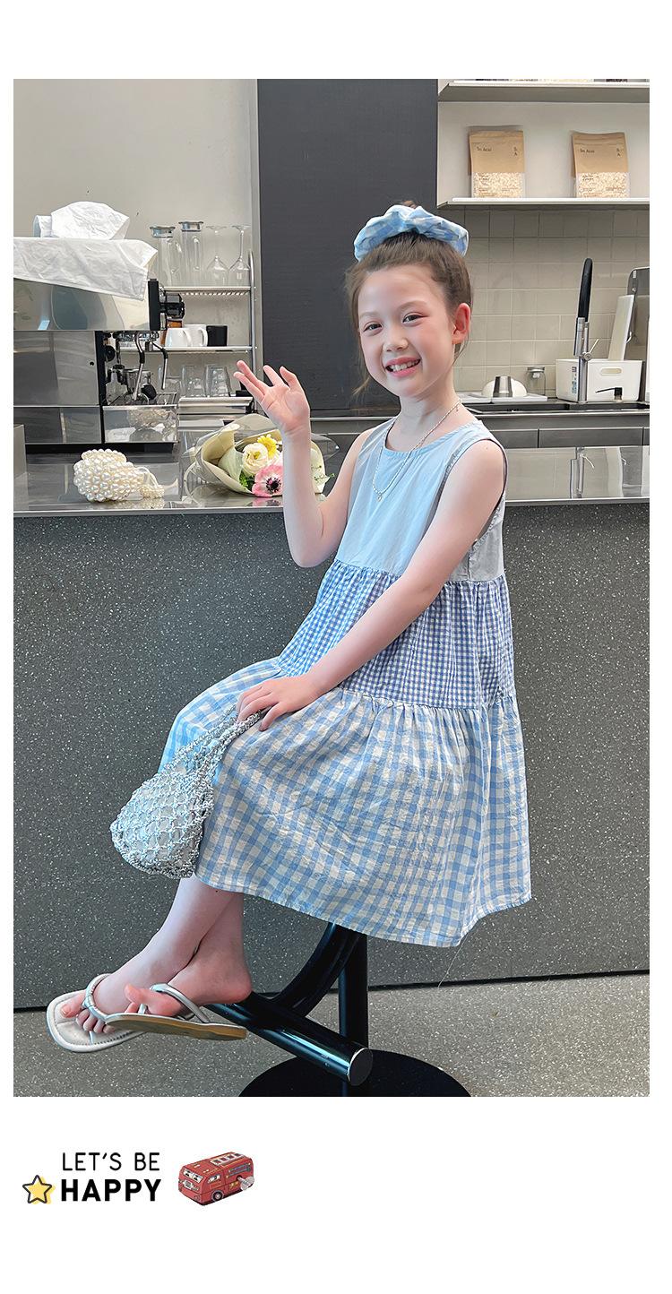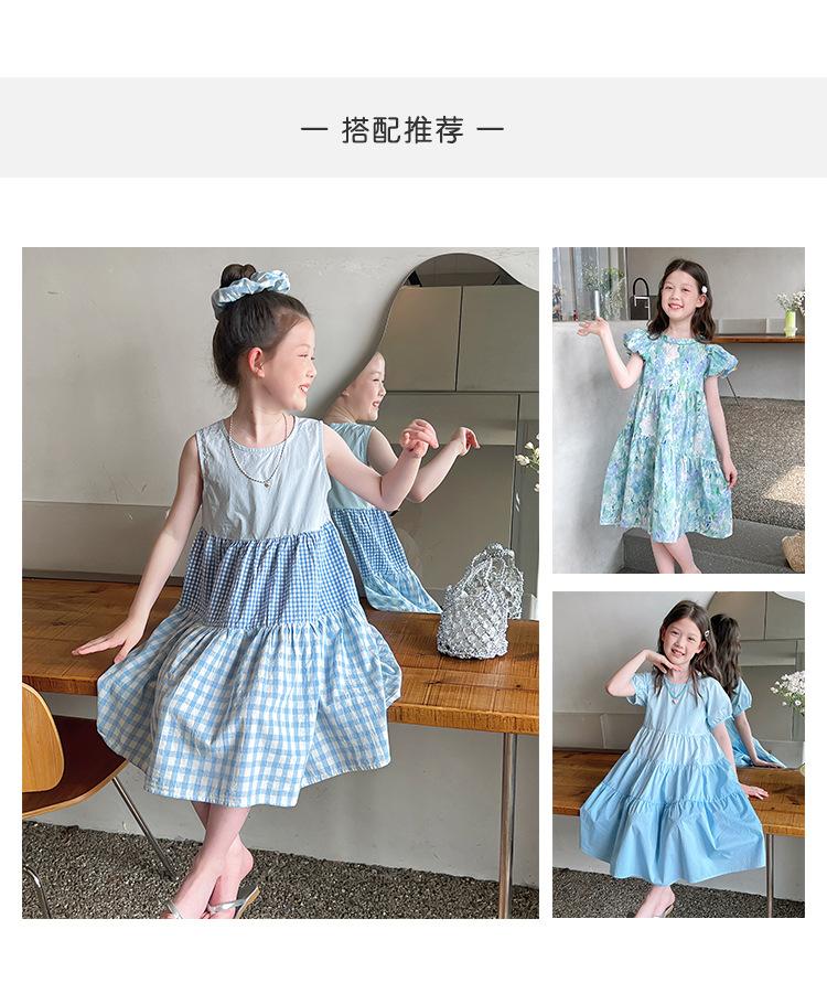 Vestido Longo Xadrez com Recortes para Meninas Estilo Infantil Vestido de Princesa Vestido Infantil para Crianças Grandes Verão 2025 Novo Estilo