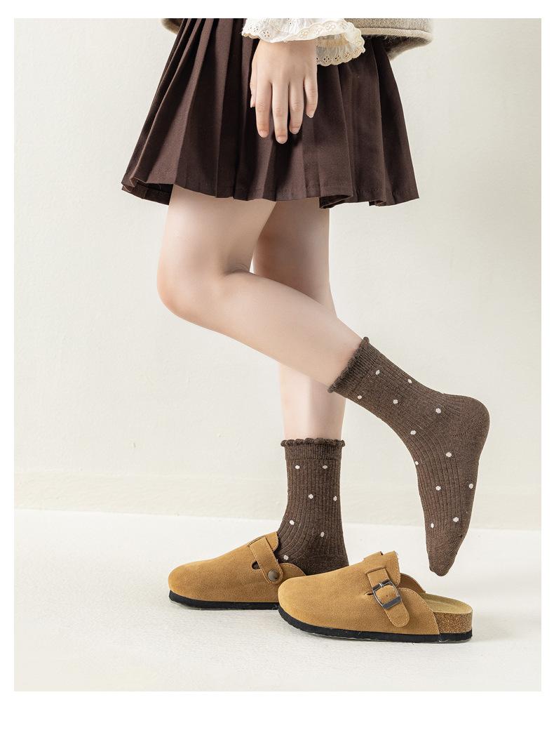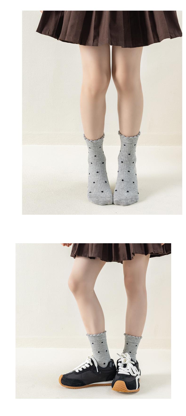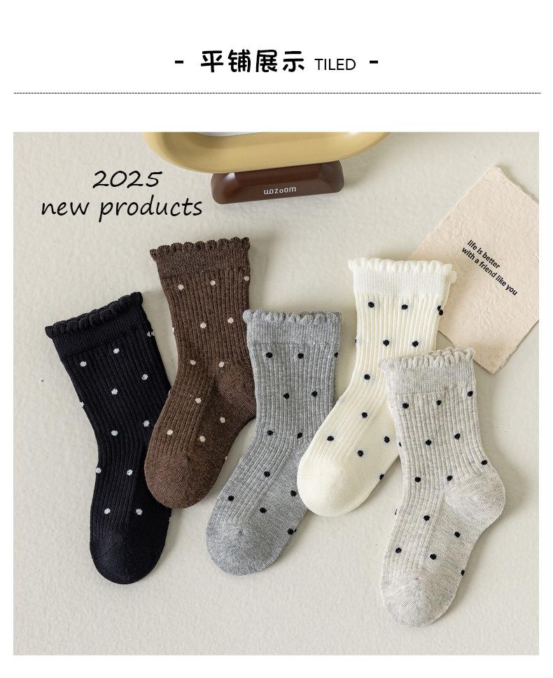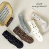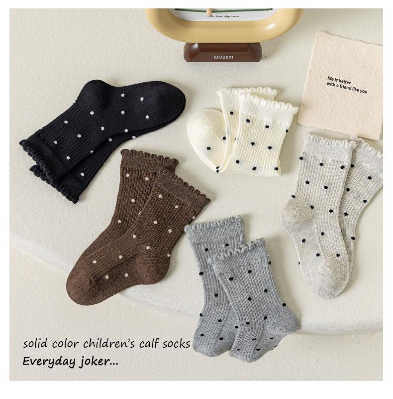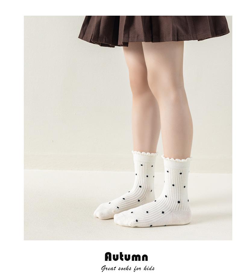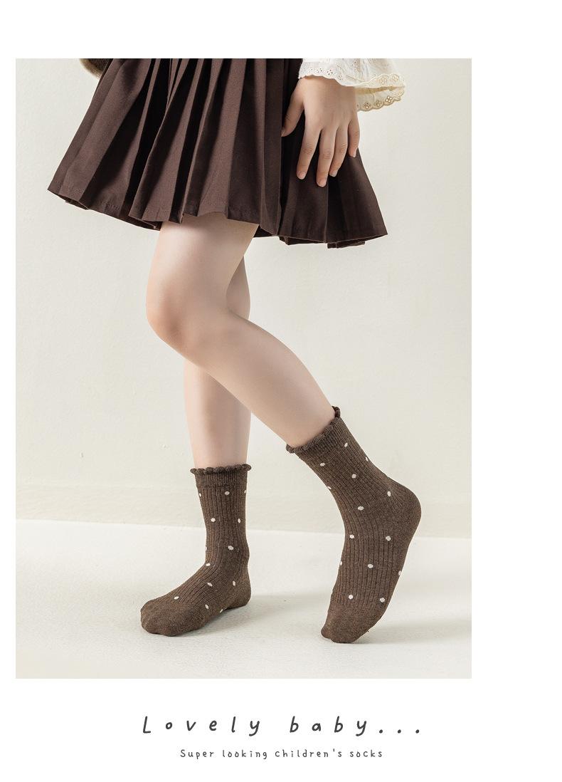 Meias infantis primavera e outono meias de cano médio meias fofas japonesas de bolinhas borda enrolada meninas crianças médias e grandes estudantes meias felpudas ins