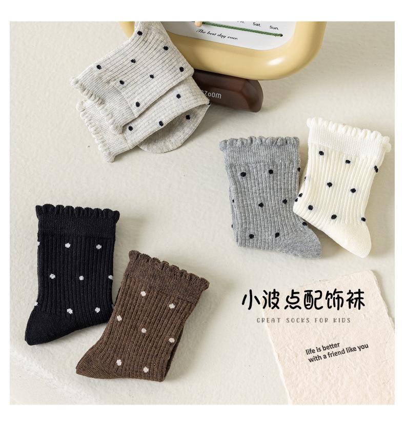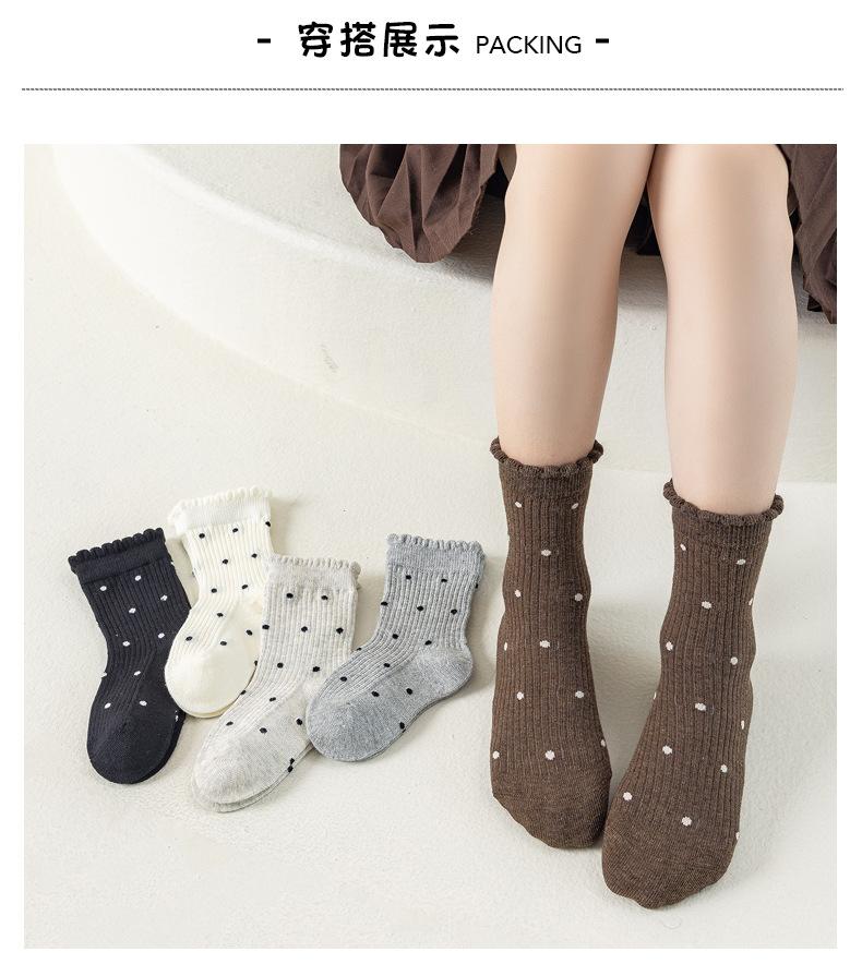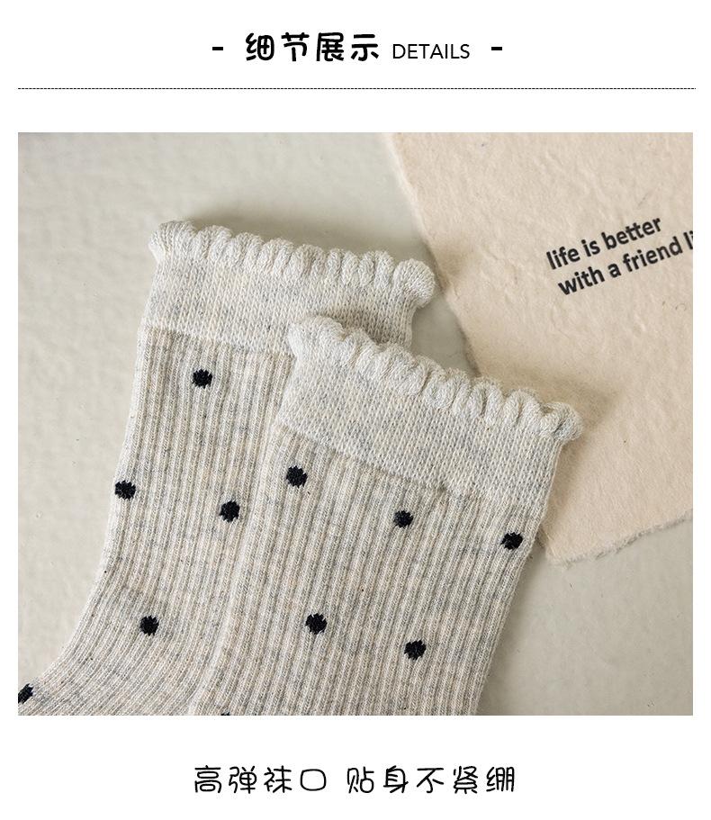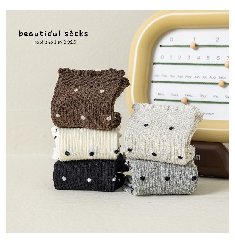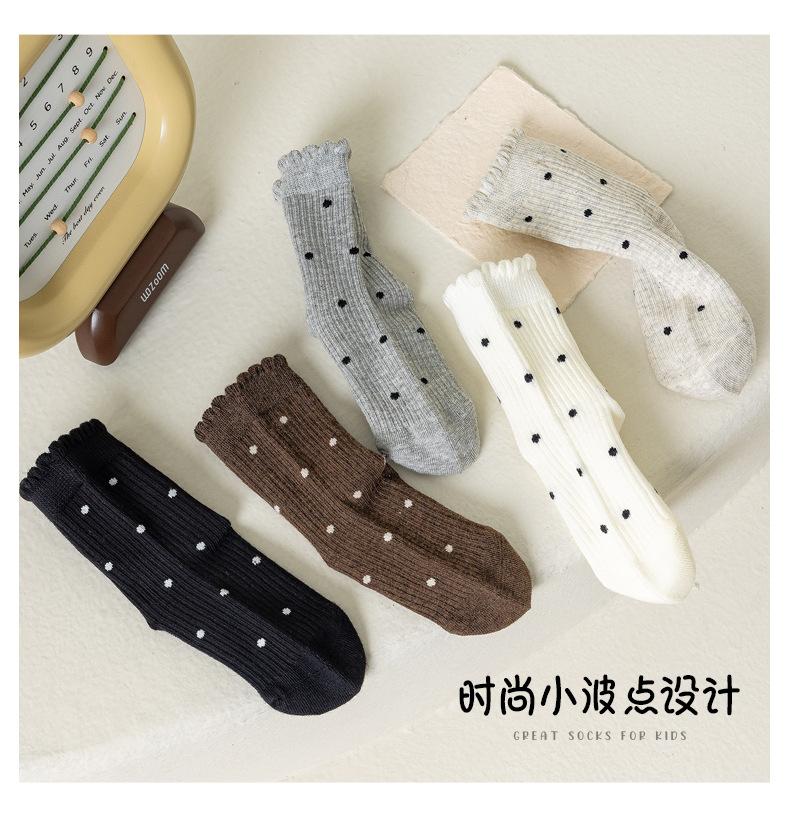 Compre Meias infantis primavera e outono meias de cano médio meias fofas japonesas de bolinhas borda enrolada meninas crianças médias e grandes estudantes meias felpudas ins no atacado no Joom.pro