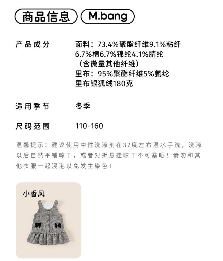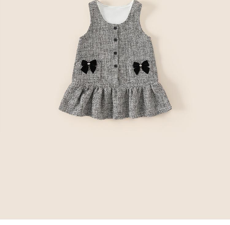 Roupa Infantil Bangxuan Estilo Inverno Vestido de Menina Laço Estilo Pequeno Perfumado Roupas Vestido Colete Infantil Vestido de Menina