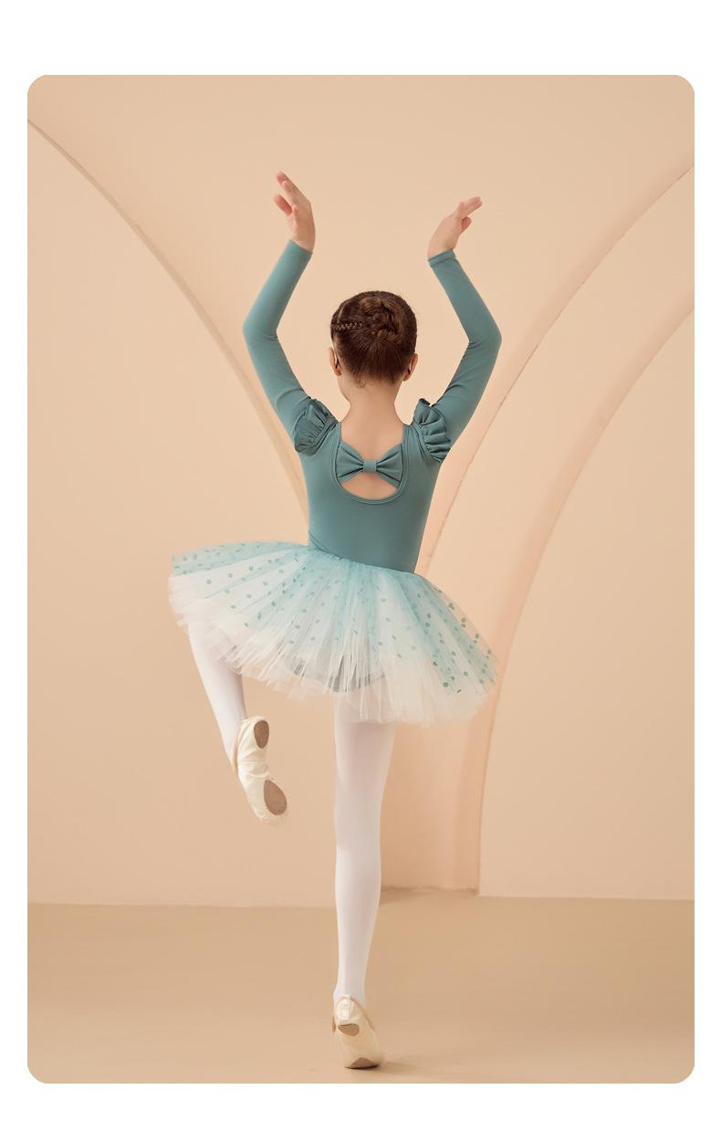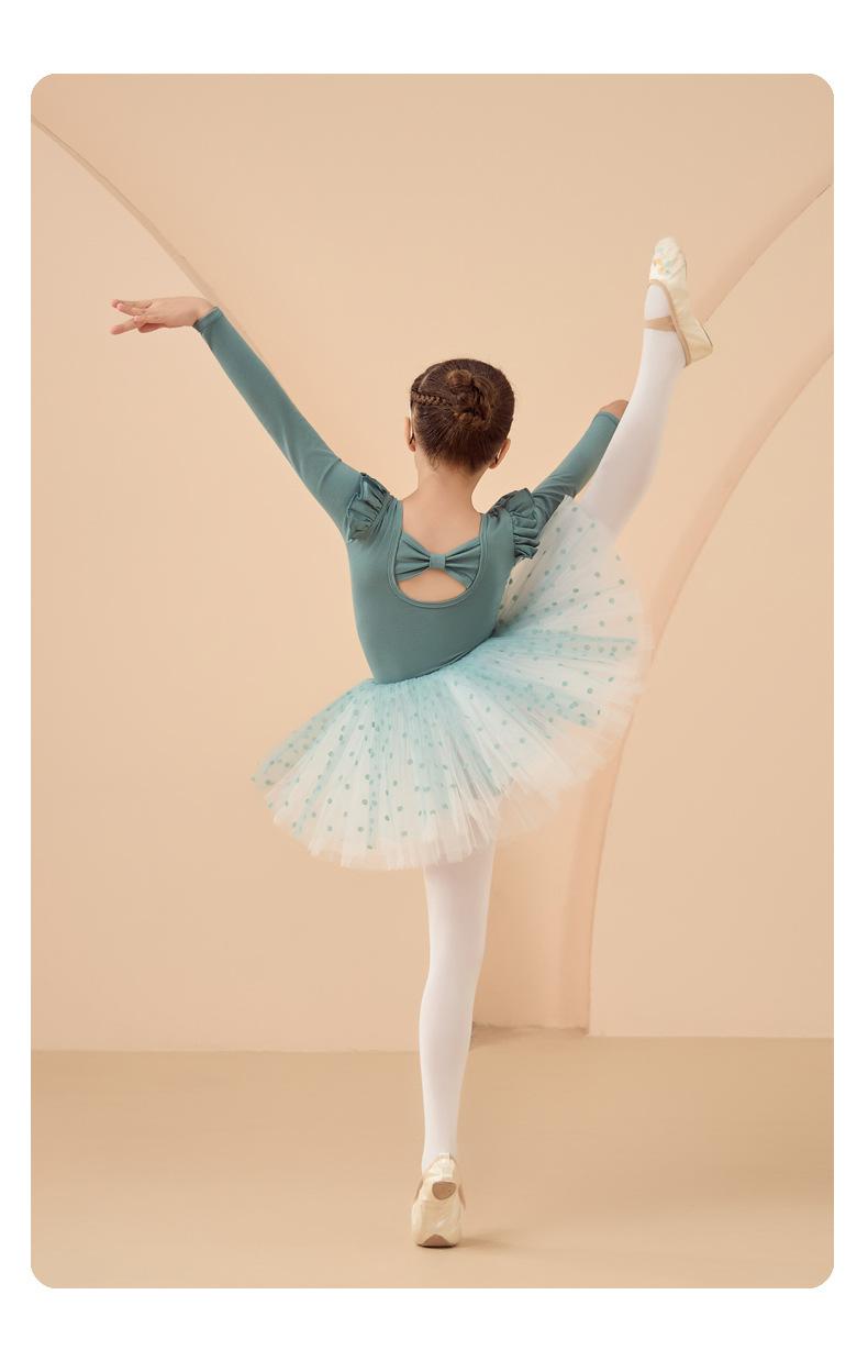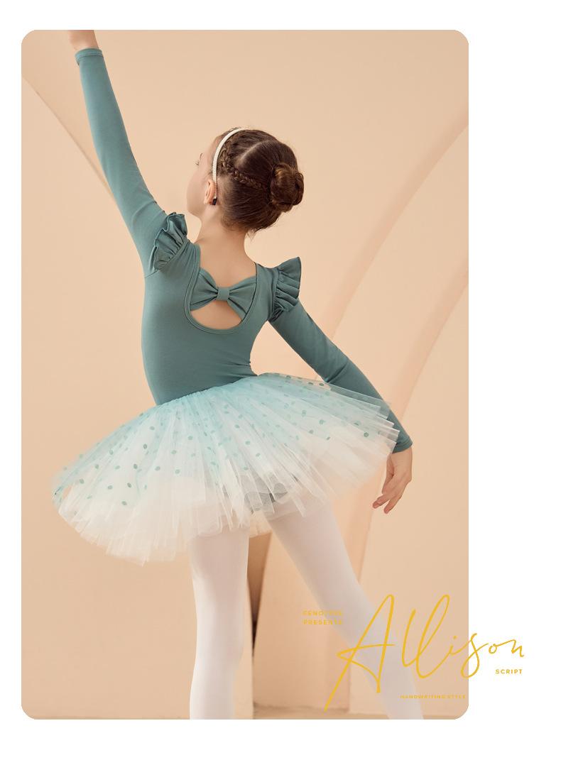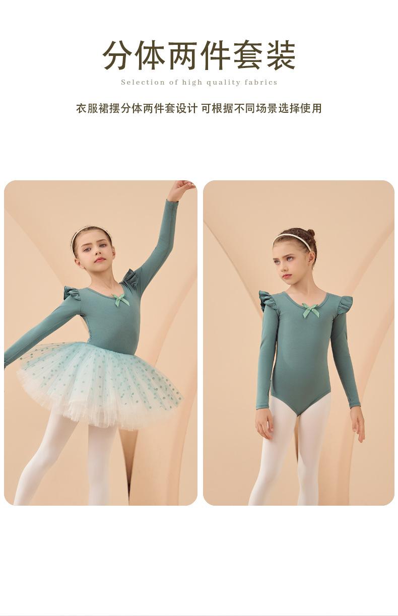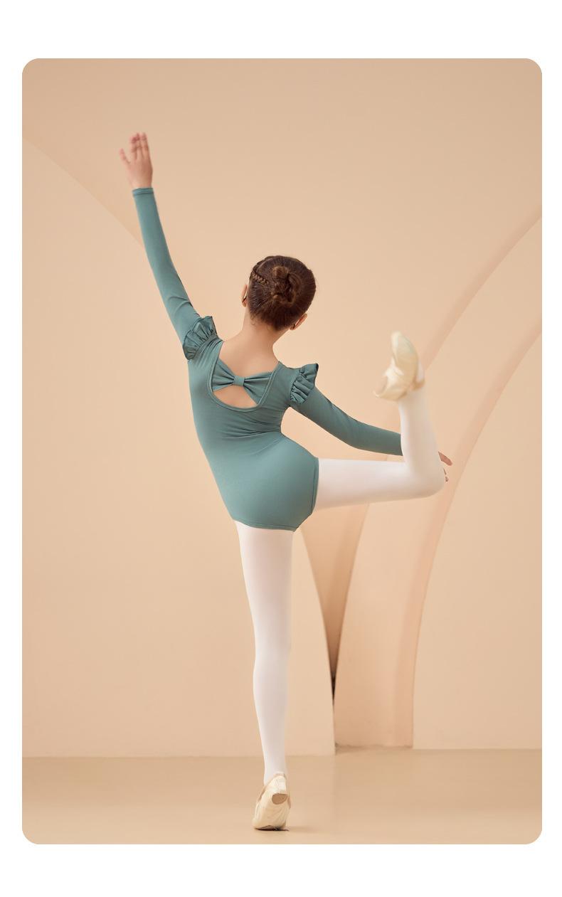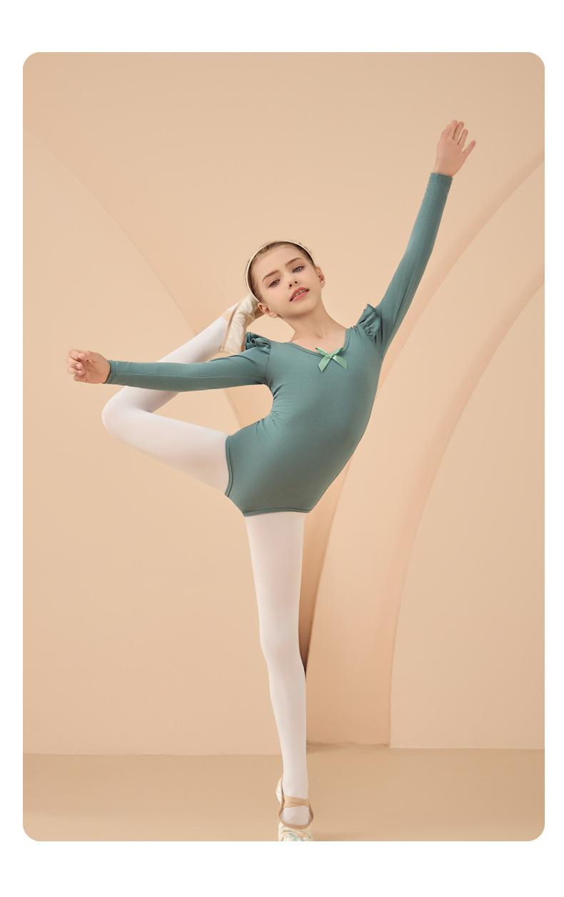 Roupa de Dança Infantil Outono e Inverno Manga Longa Verde Roupas de Prática para Meninas Exame Collant de Dança Chinesa Vestido de Ballet Roupas de Prática