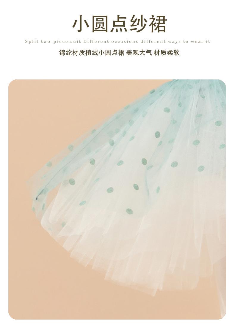 Bean green long-sleeved top + tulle skirt, Bean green long sleeve clothes, Pink long-sleeved top + tulle skirt...