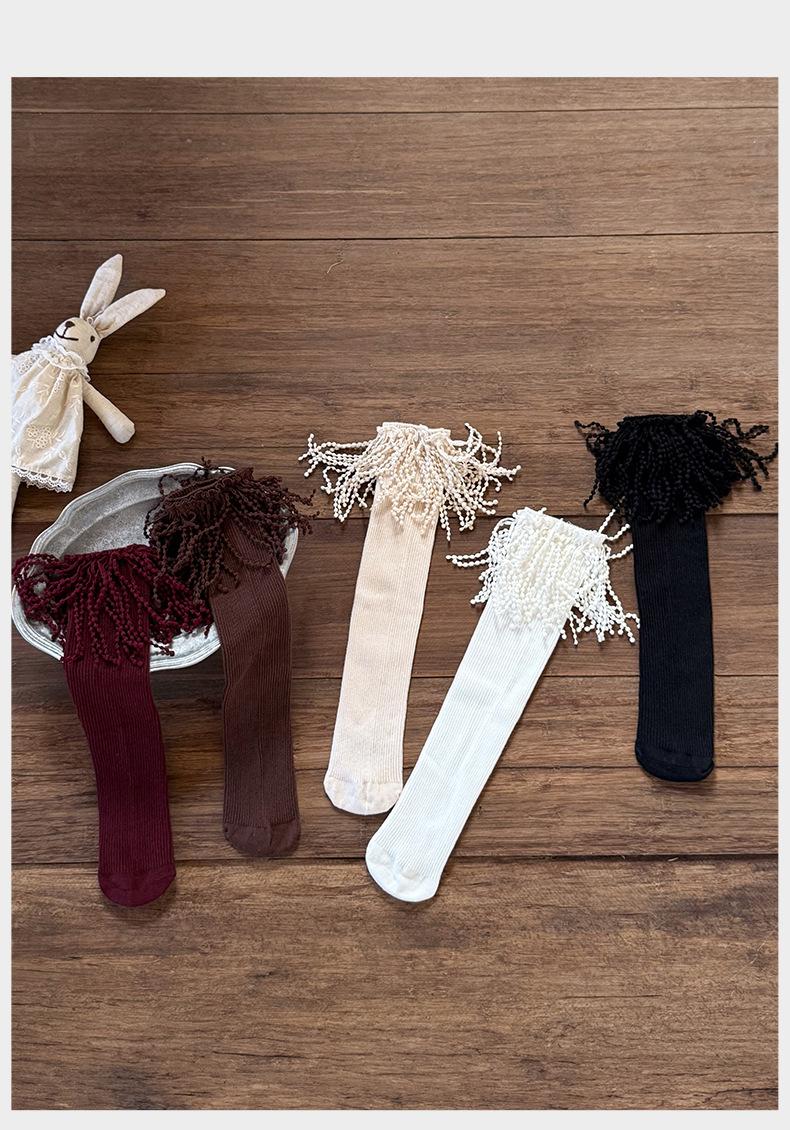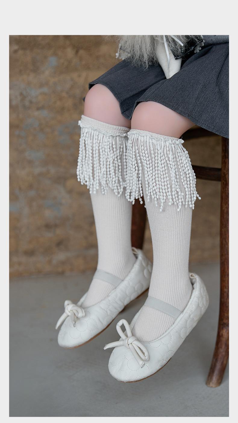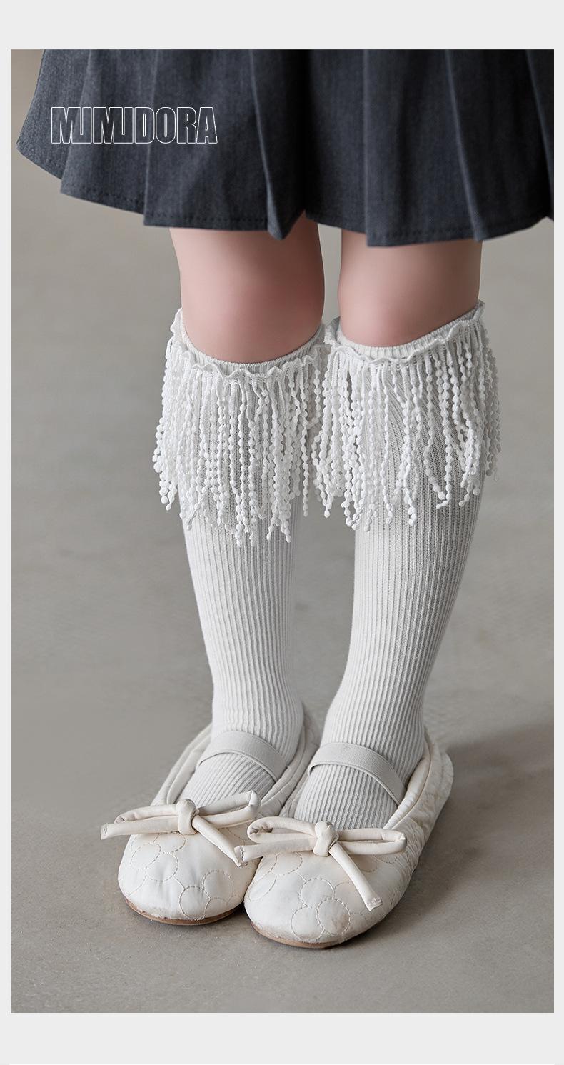 Meias infantis outono novo estilo meninas meias de cano médio de renda da moda meias de princesa para bebê acima do joelho meias longas meias de algodão