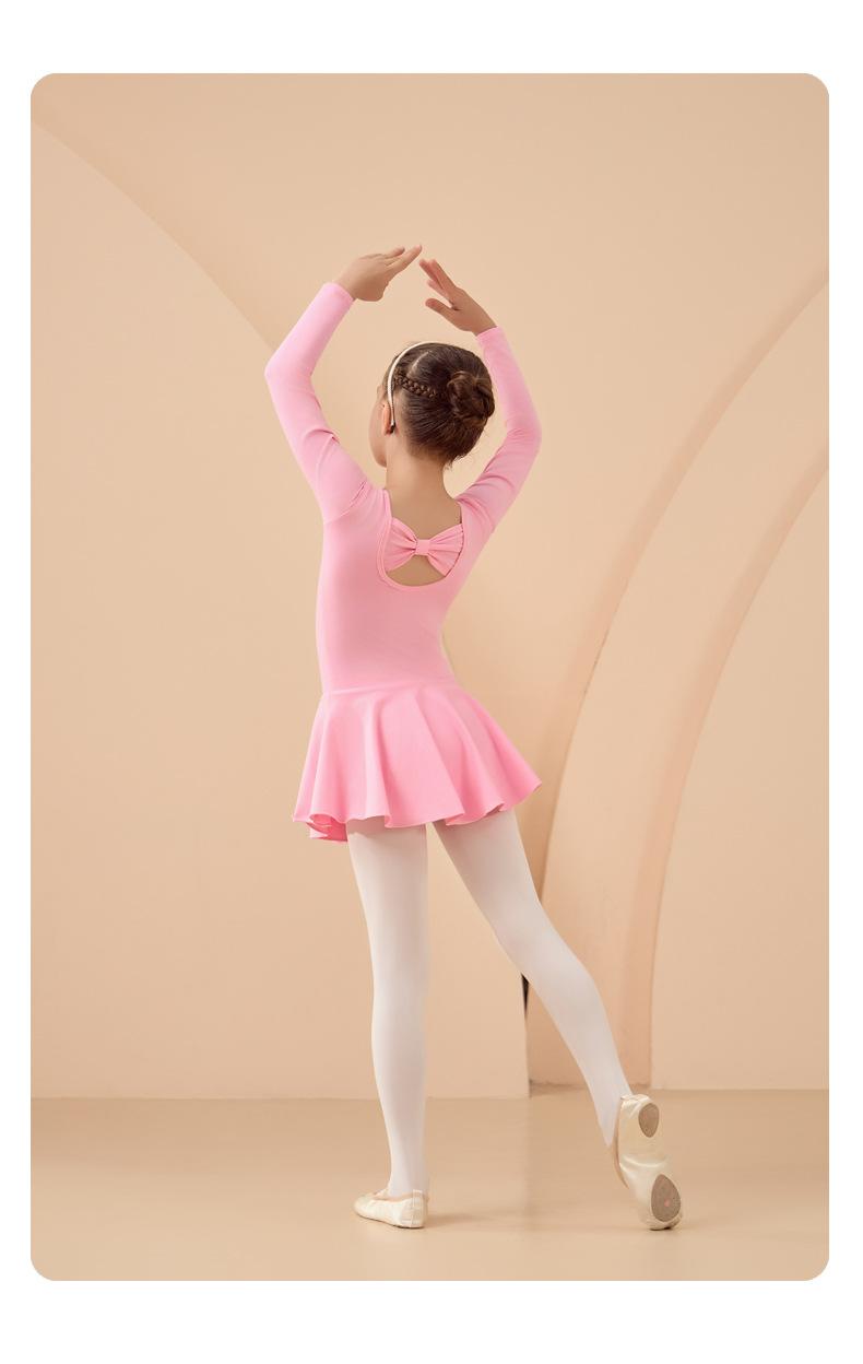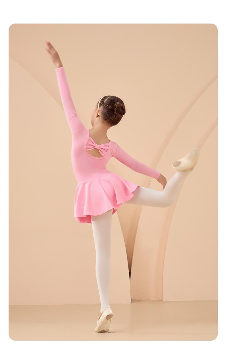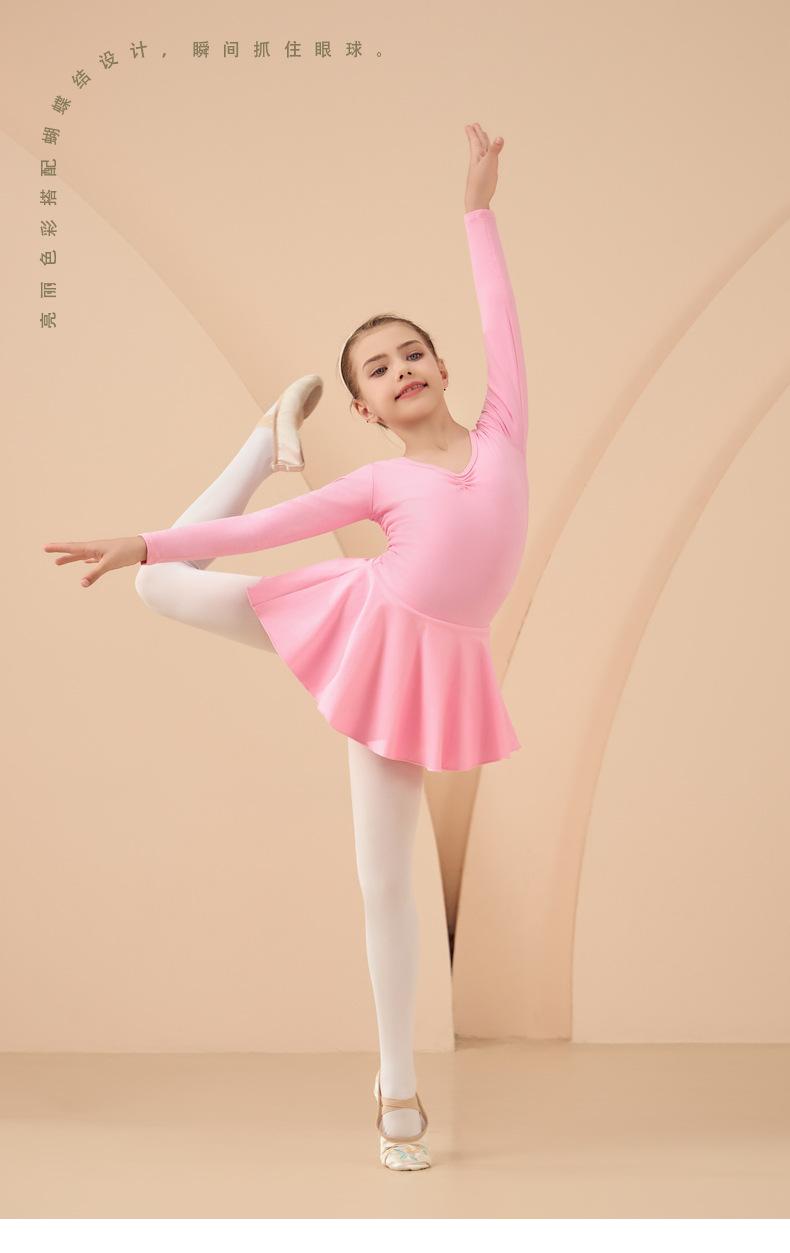 Roupa de Dança Infantil Outono Manga Longa Rosa Algodão Puro Meninas Roupa de Prática Vestido de Balé Exame Dança Chinesa Roupa de Dança