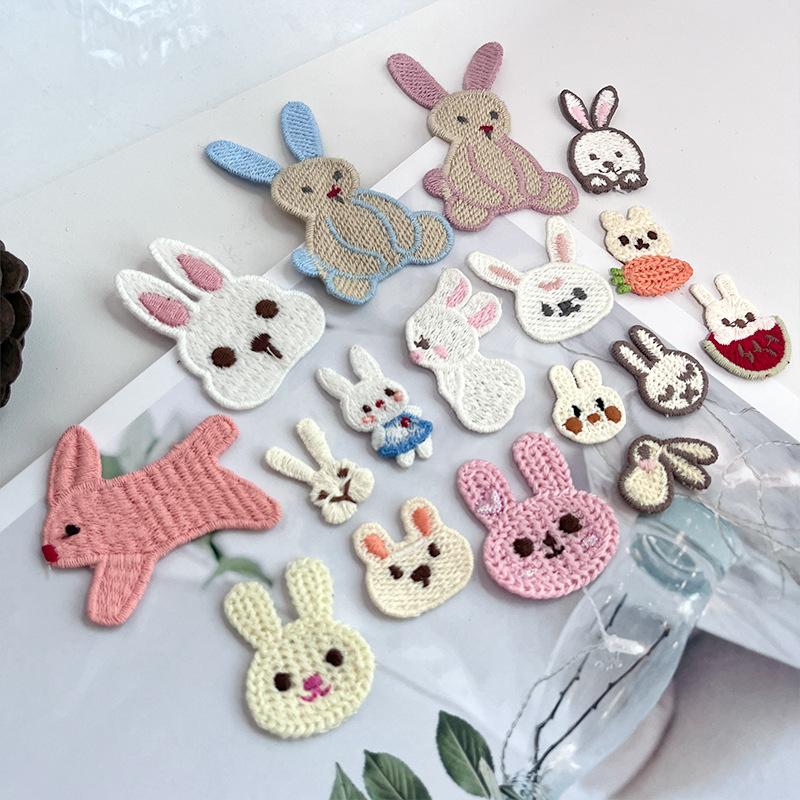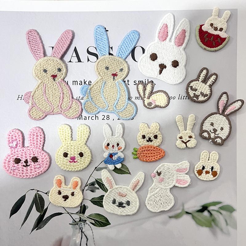 Novos acessórios de vestuário faça você mesmo acessórios de coelho fofos desenho animado animal bordado de tecido apliques decorações acessórios