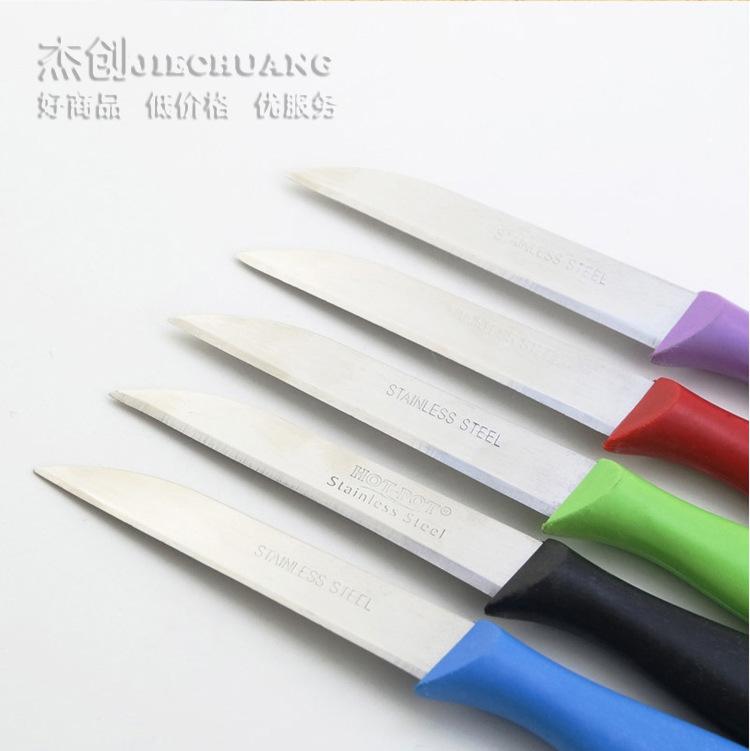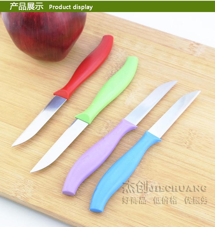 Esta faca de frutas é usada para cortar frutas, descascar frutas, é leve e flexível, e a lâmina é afiada.