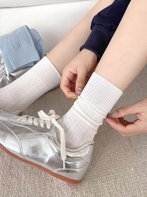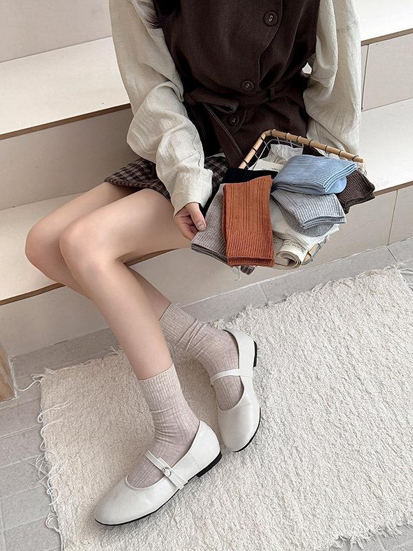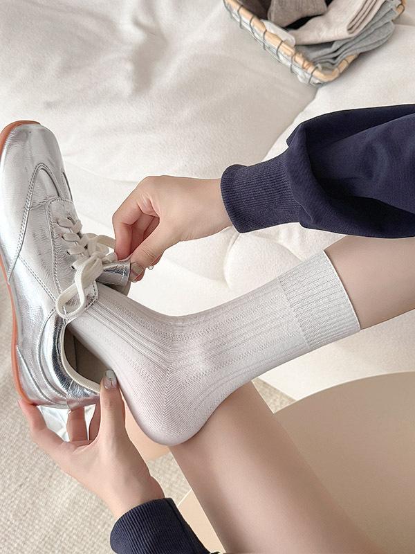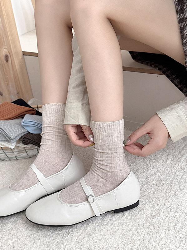 Meias Simples de Cor Sólida Versátil de Outono e Inverno Meias de Cano Médio Estilo Universitário Ins Meias Folgadas Respiráveis Absorventes de Suor Meias Folgadas Artísticas Atacado
